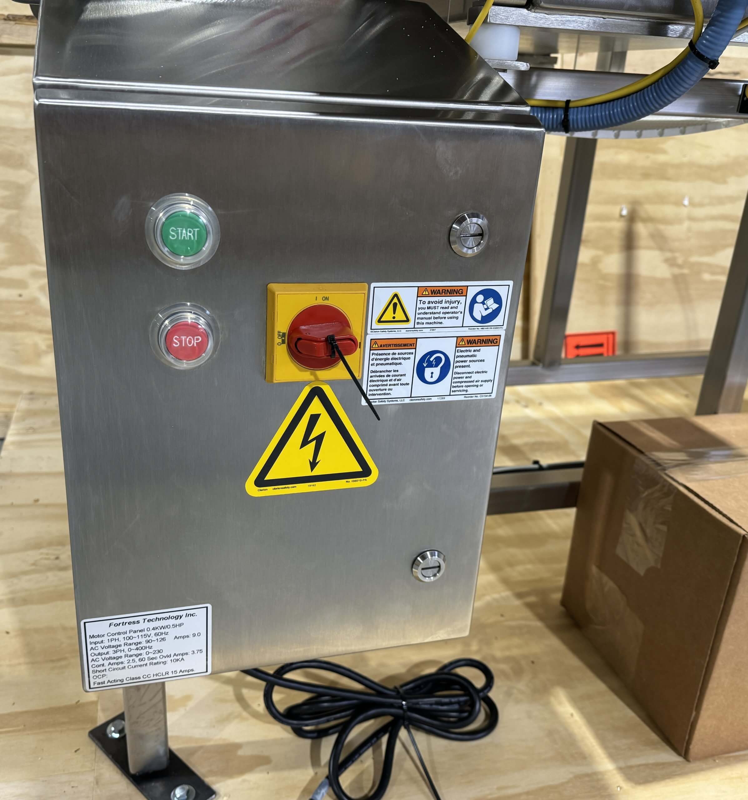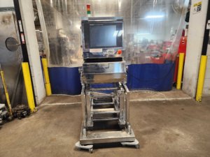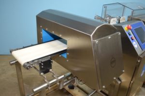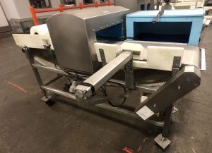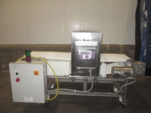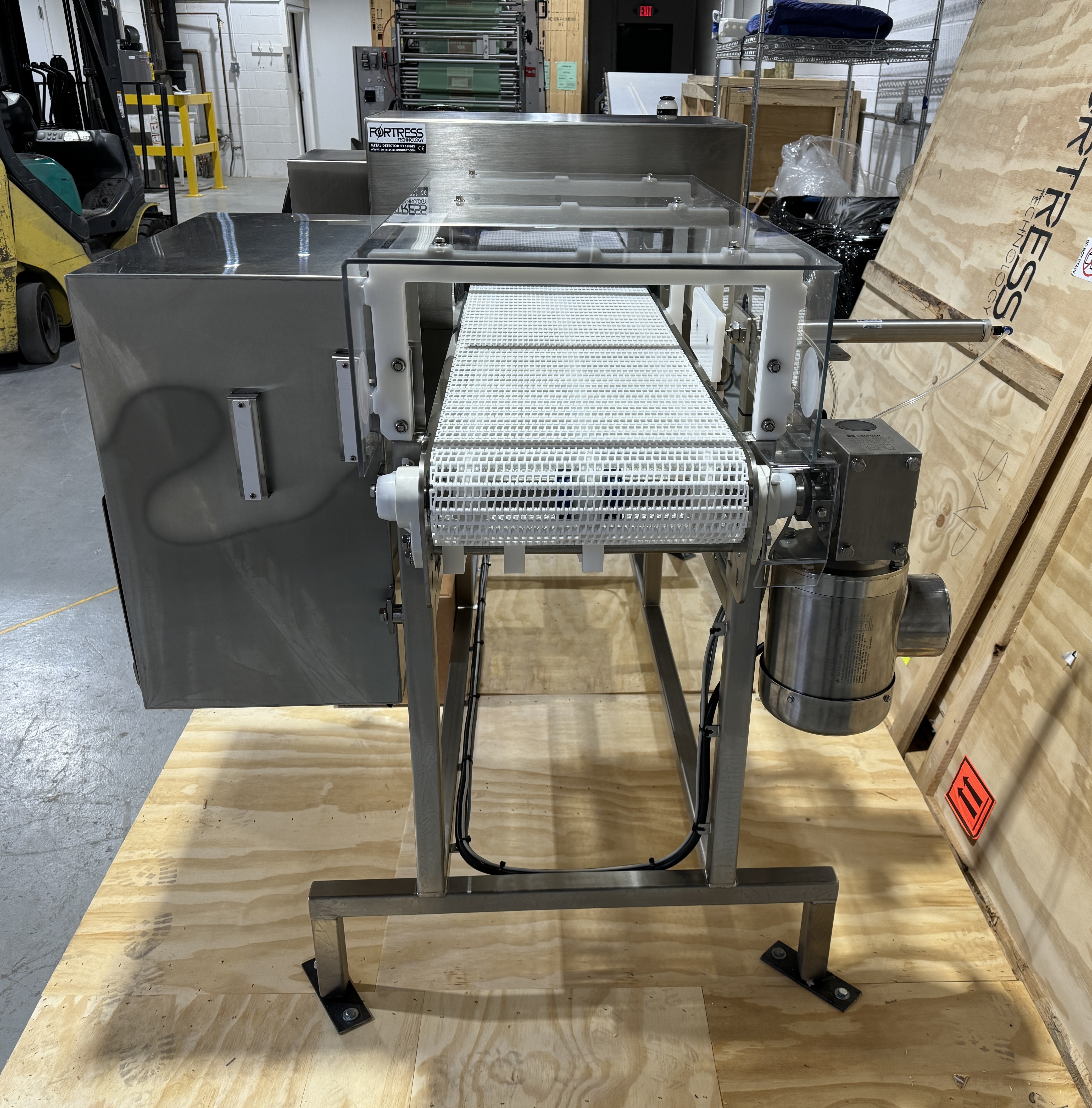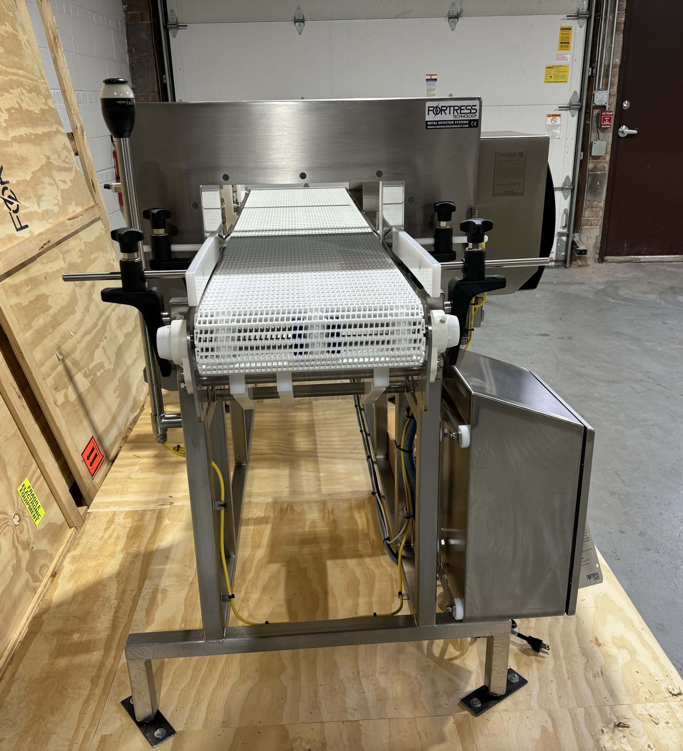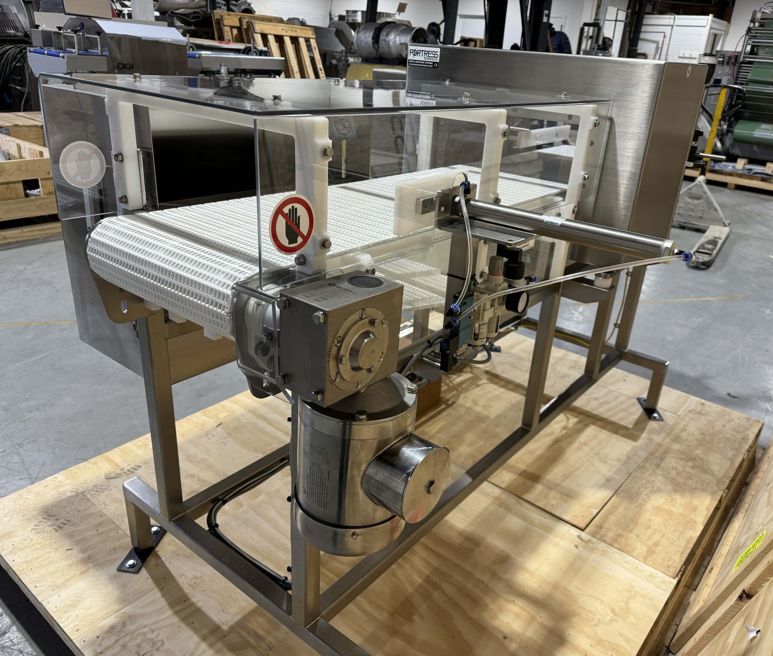 Fortress Stealth WD Metal Detector. 14″ wide x 6″ tall aperture, all stainless steel integrated vector conveyor, Mdl. C-V72x14Ki with 14″ wide x 72″ long plastic conveyor belt, pneumatic operated reject system with collection cabinet, stainless steel motor gearbox, complete with controls, 110/220/1PH/60Hz, 1 Amp.