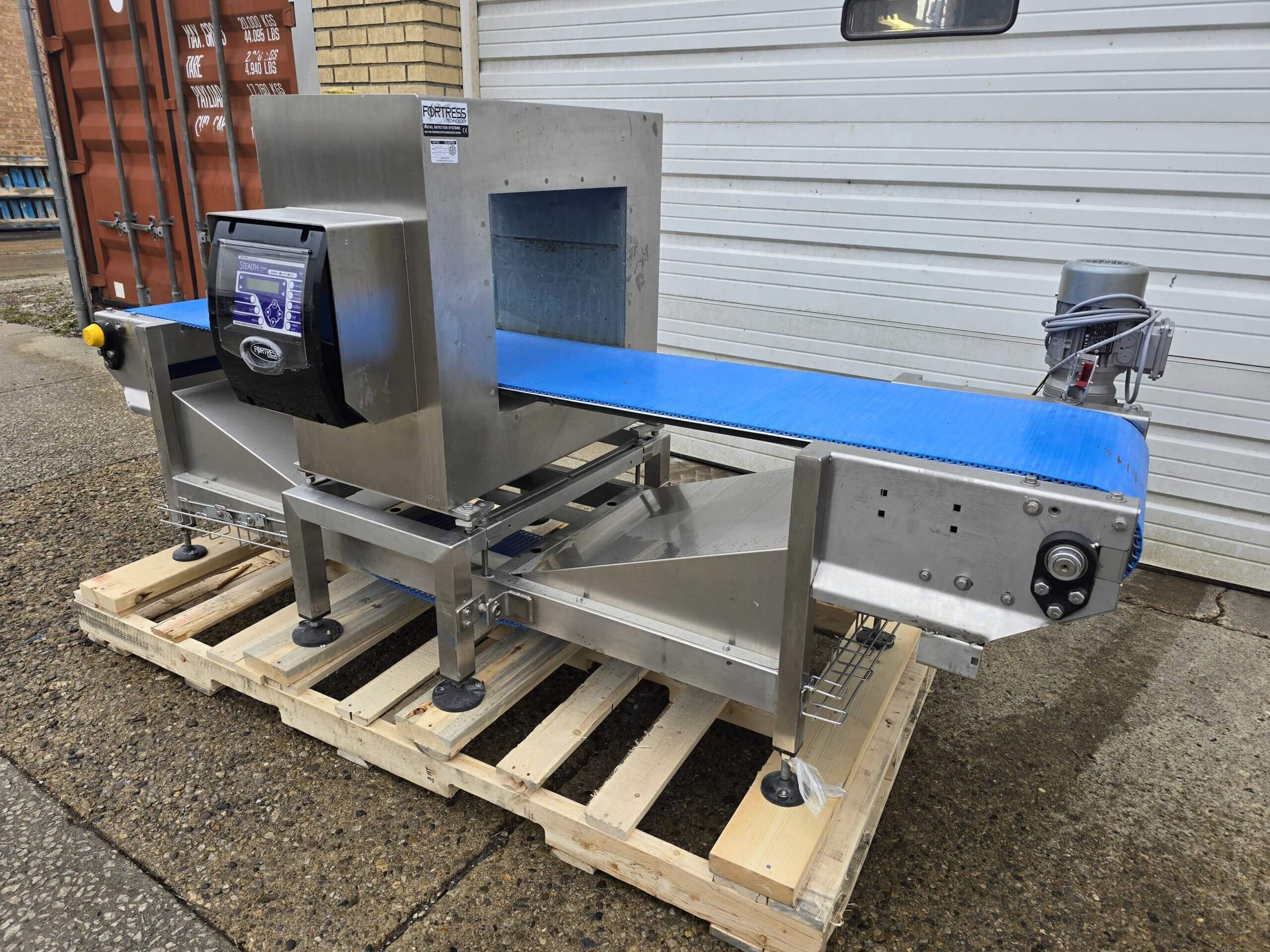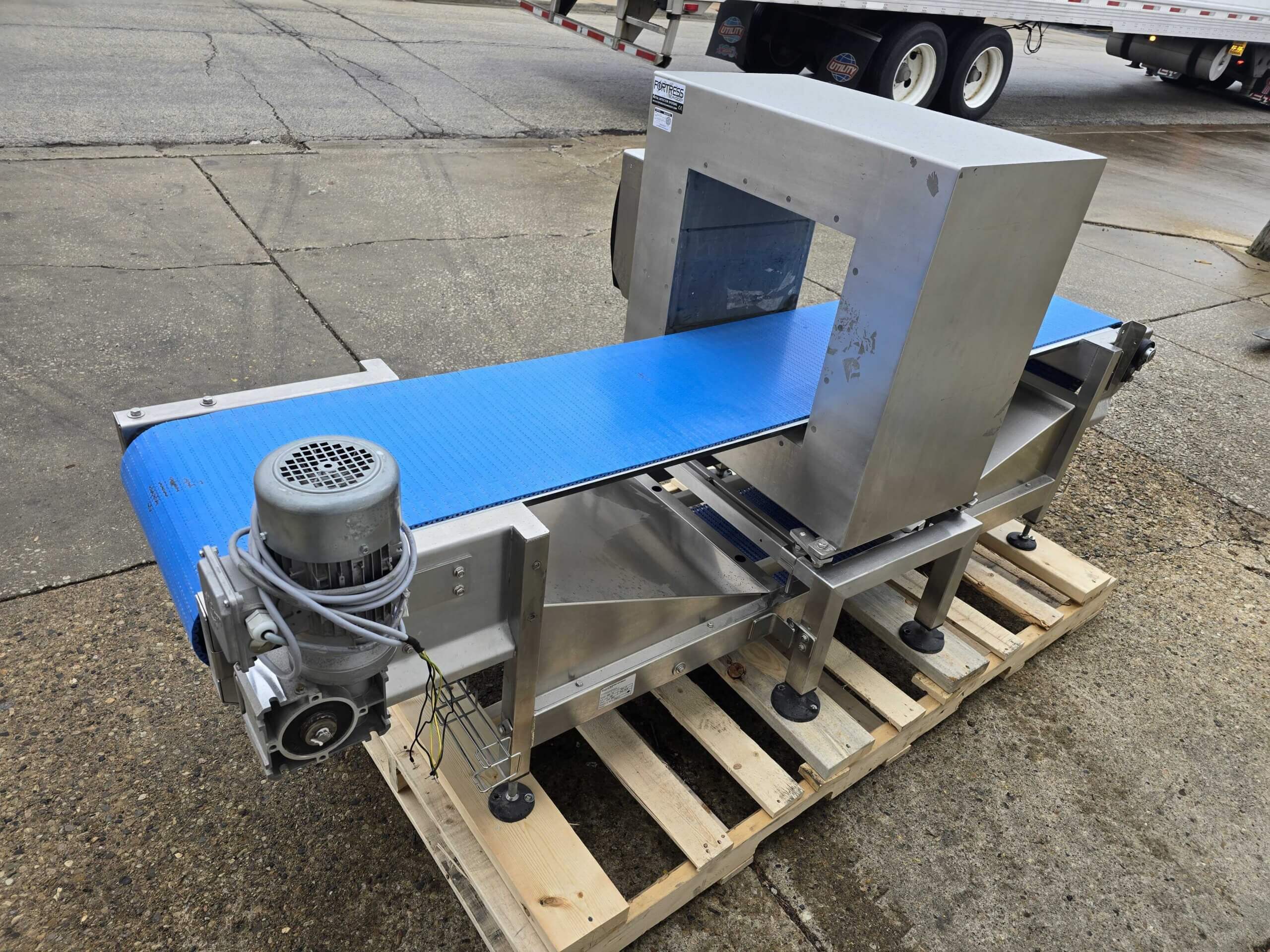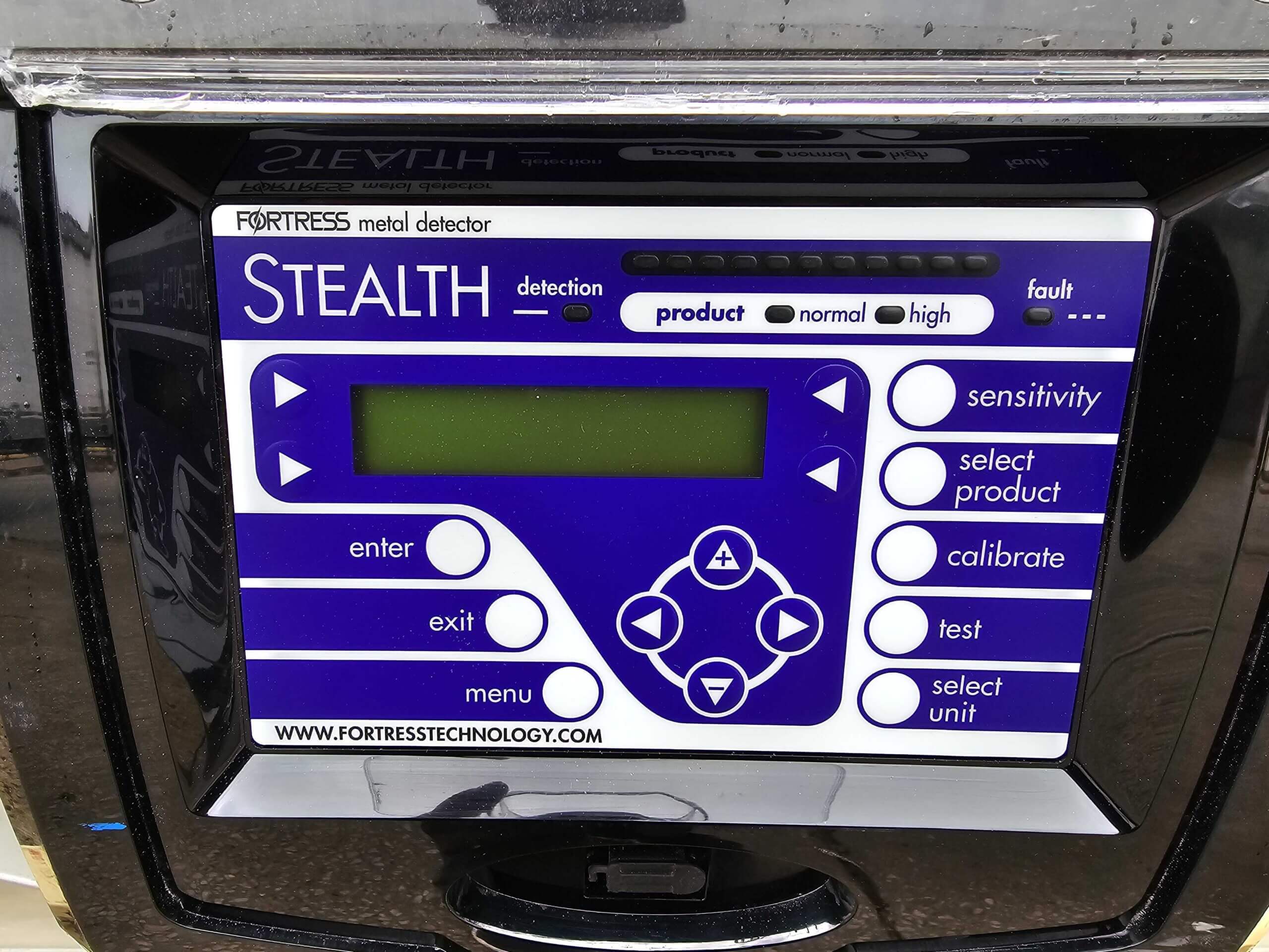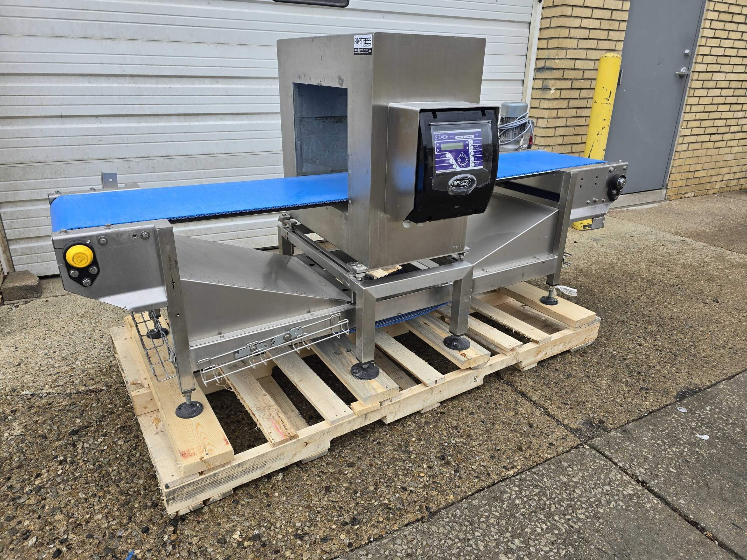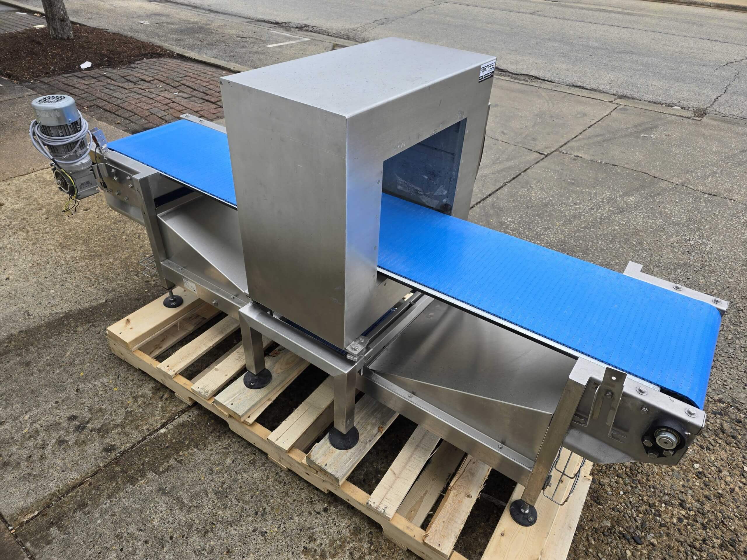 Fortress Stealth WD Metal Detector. 18″ wide x 6″ tall aperture, all stainless steel construction. 16″ wide x 91″ long conveyor belt, complete with controls, 110/220/1PH/60Hz, 1 Amp.