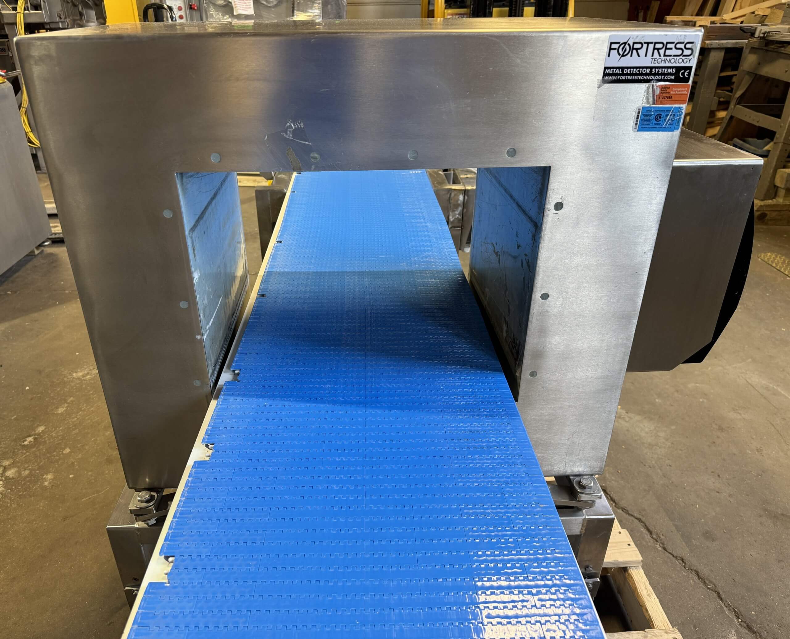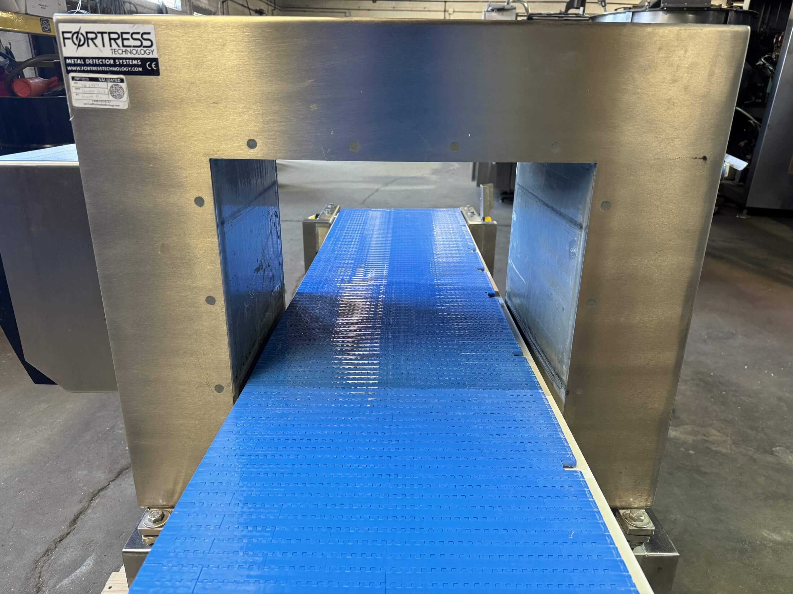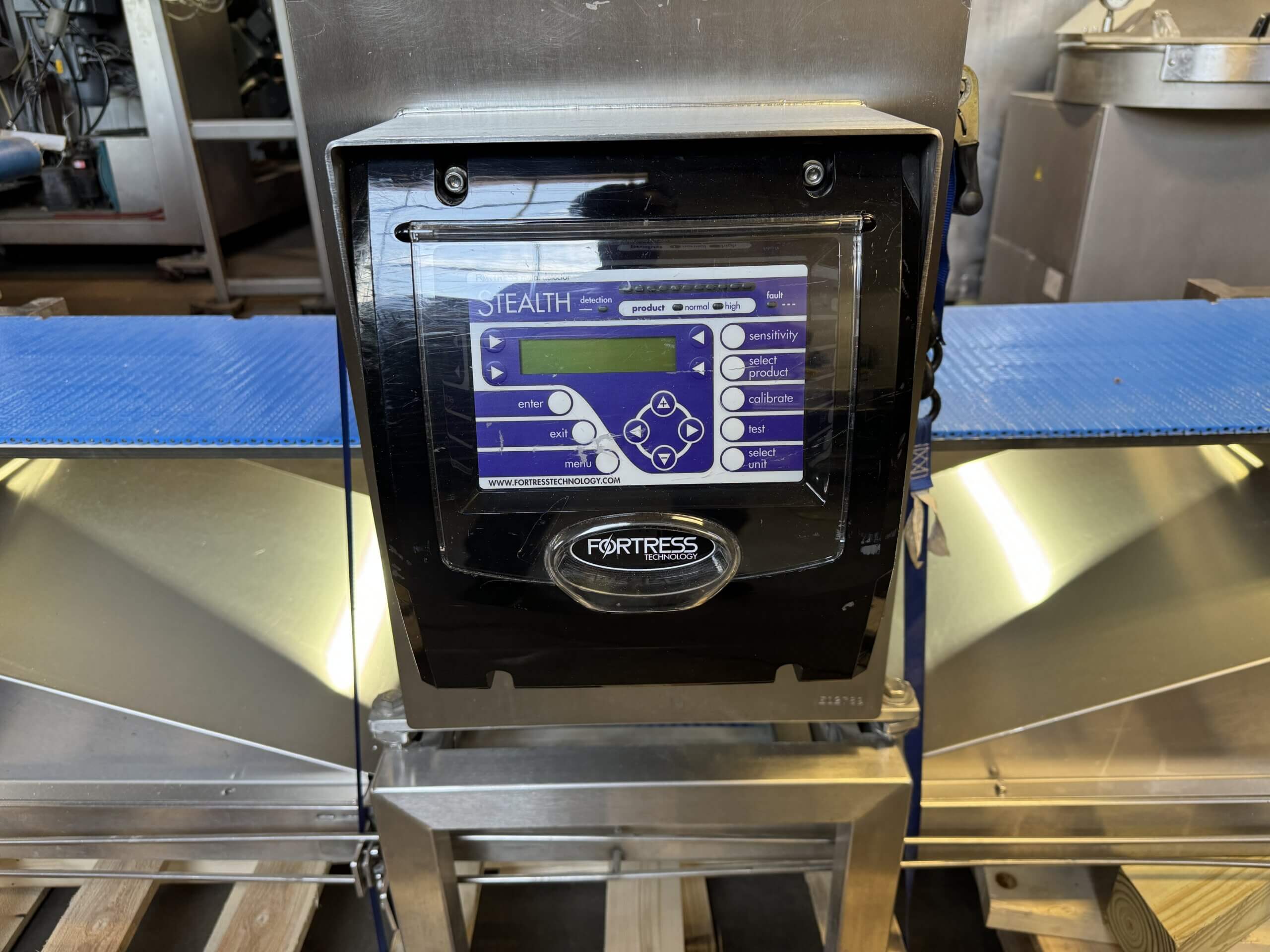 Fortress Stealth WD Metal Detector. 18″ wide x 12″ tall aperture, all stainless steel construction. 16″ wide x 91″ long conveyor belt, complete with controls, 110V/1PH/60Hz, 1 Amp.