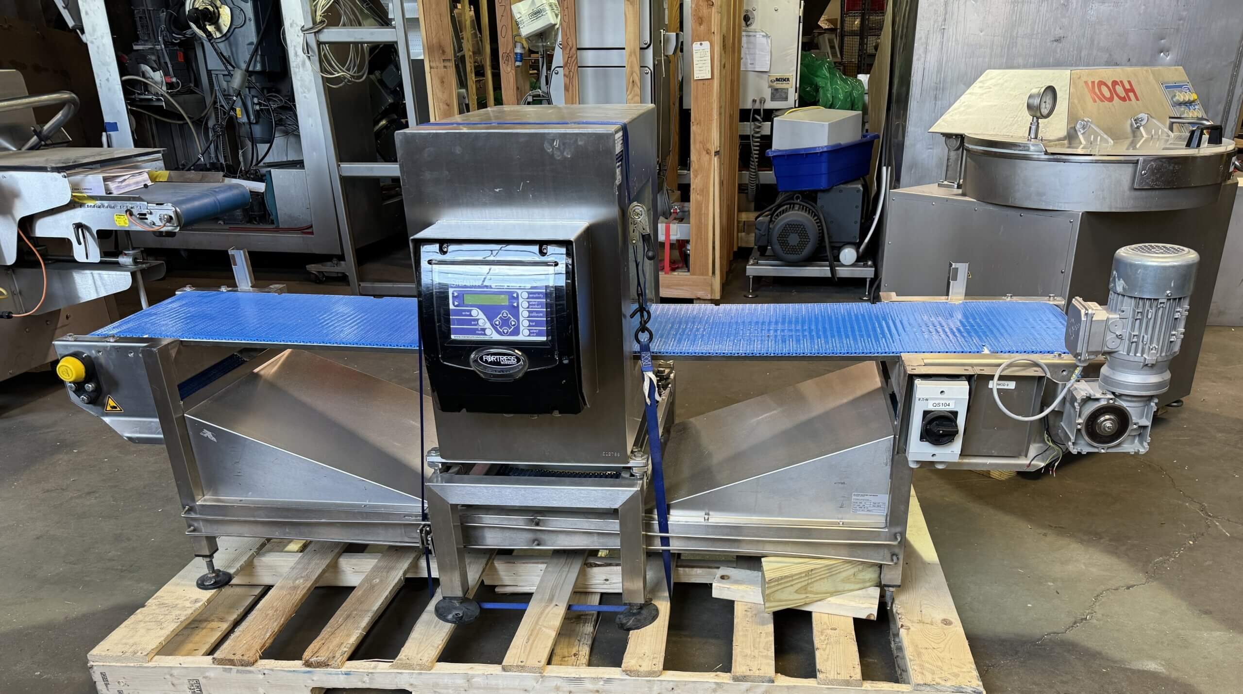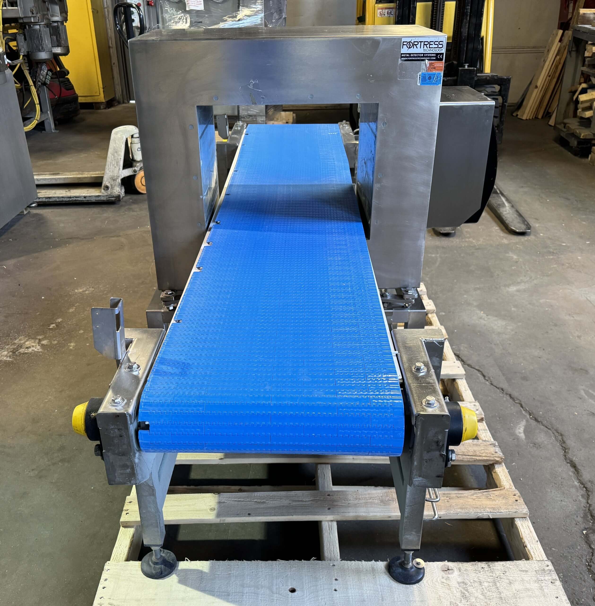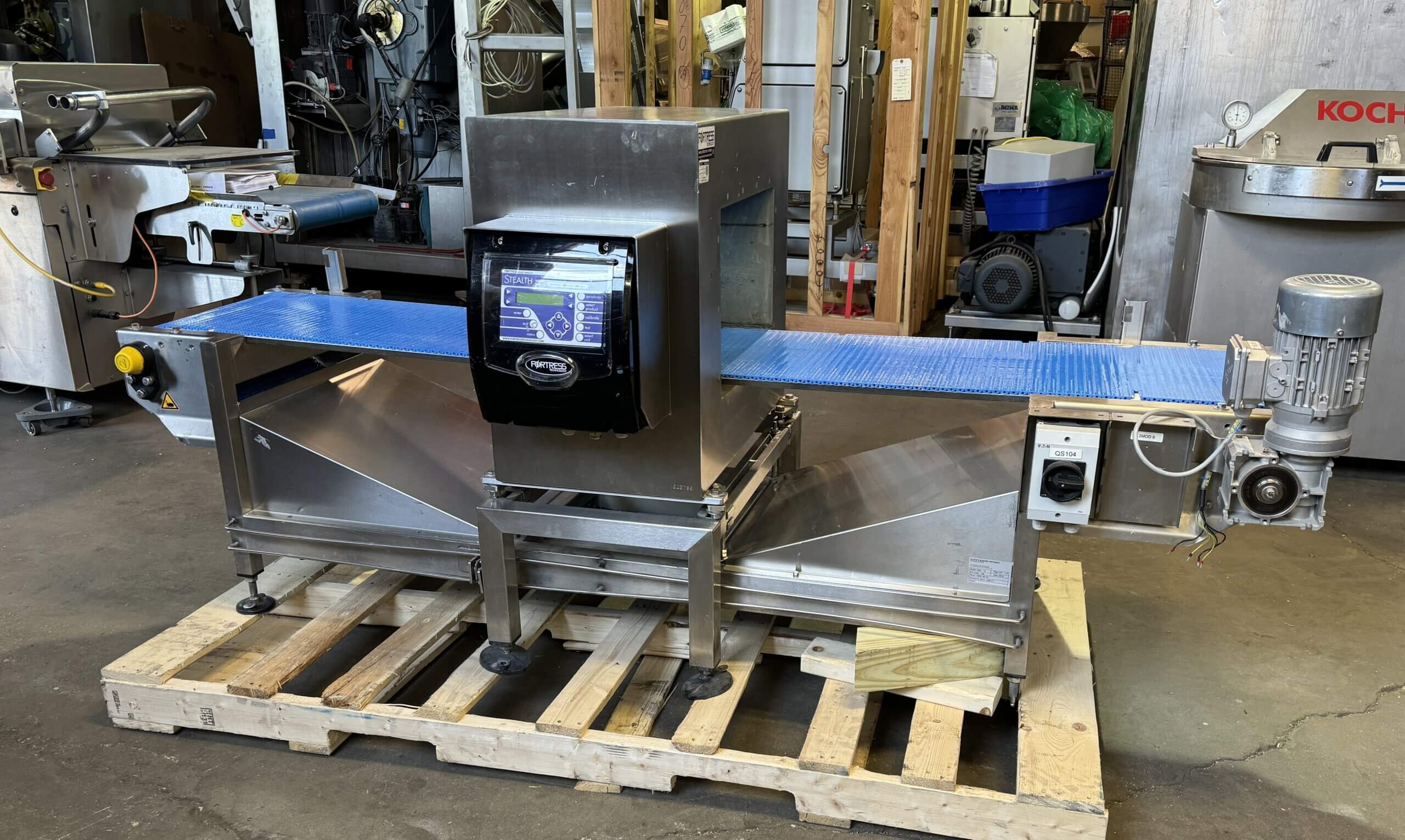 Fortress Stealth WD Metal Detector. 18″ wide x 12″ tall aperture, all stainless steel construction. 16″ wide x 91″ long conveyor belt, complete with controls, 110V/1PH/60Hz, 1 Amp.