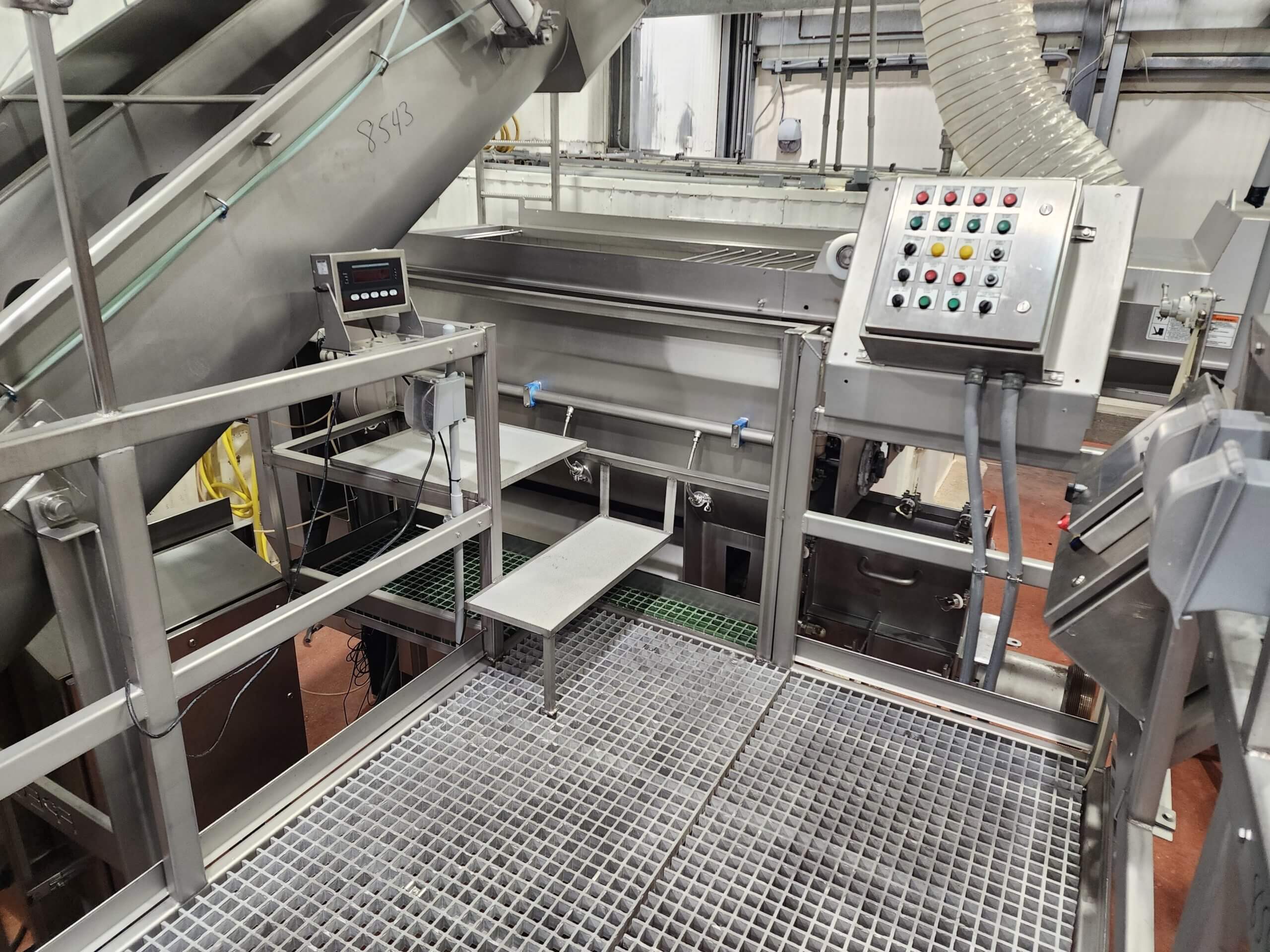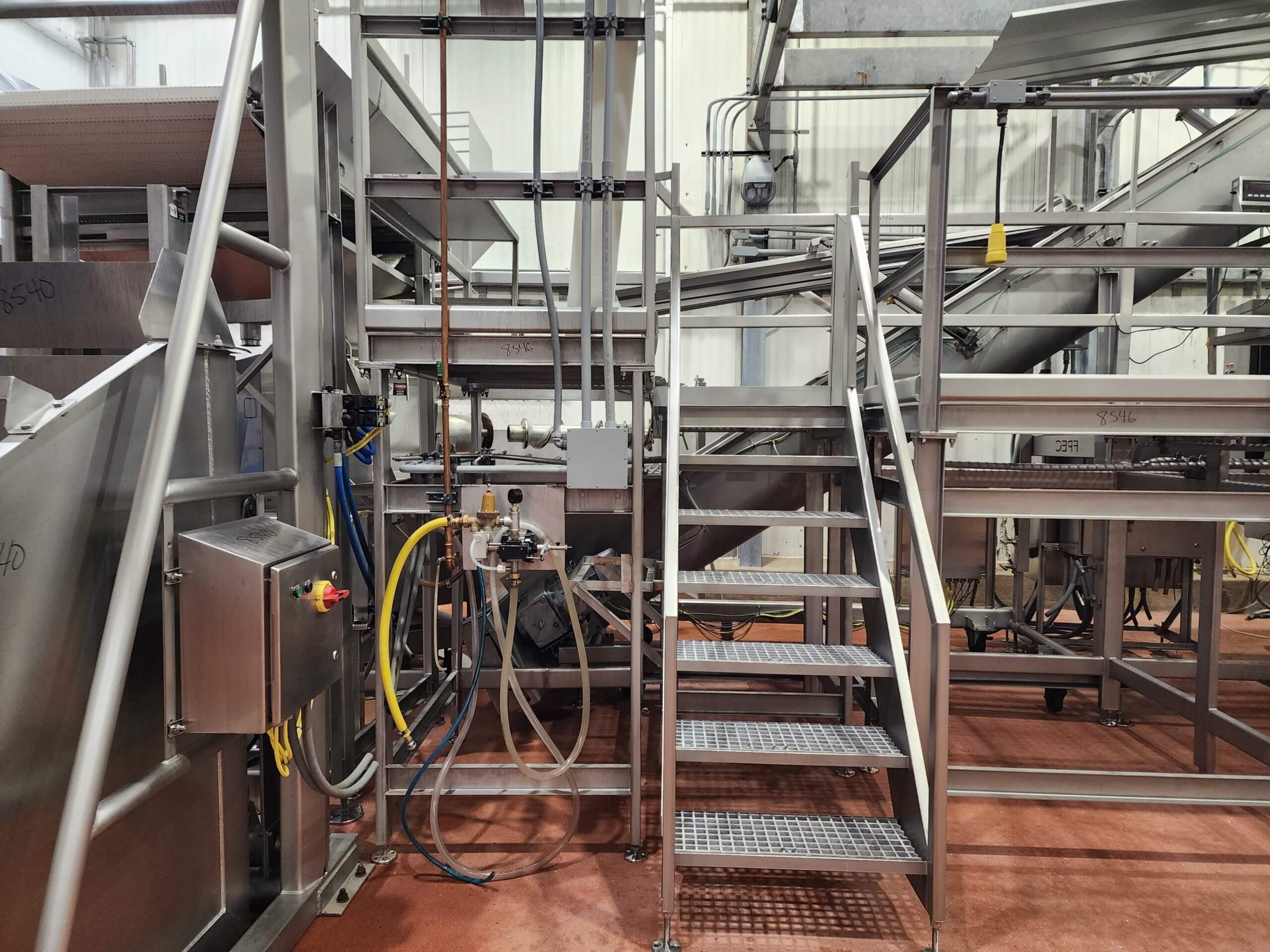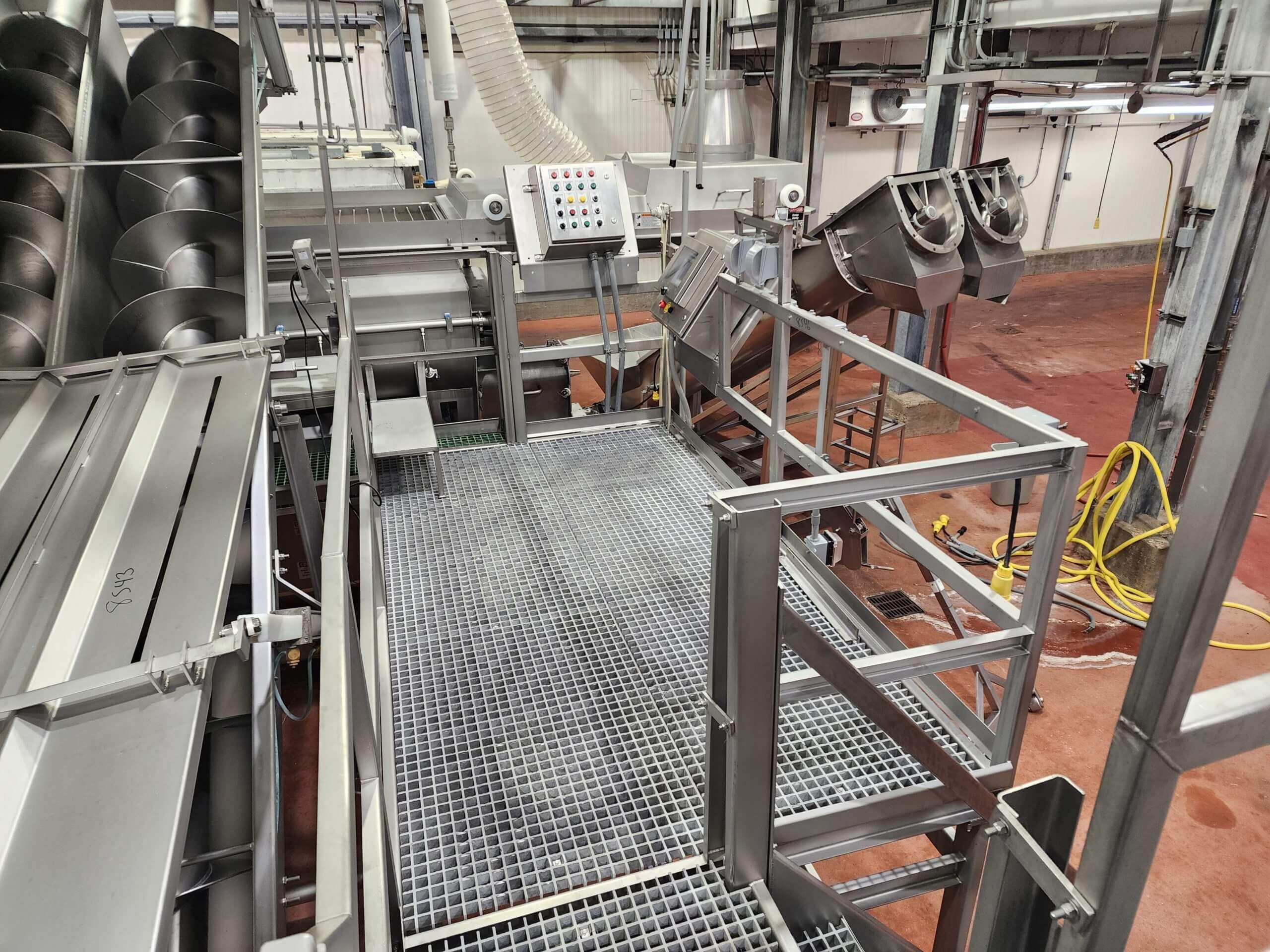 FPEC 145 Work Platform. All stainless steel worker platform. 13′ long x 7’5″ wide x 5’5″ tall mezzanine. Includes 9′ tall hand rails, (1) set of entrance & exit stairs for the work area.