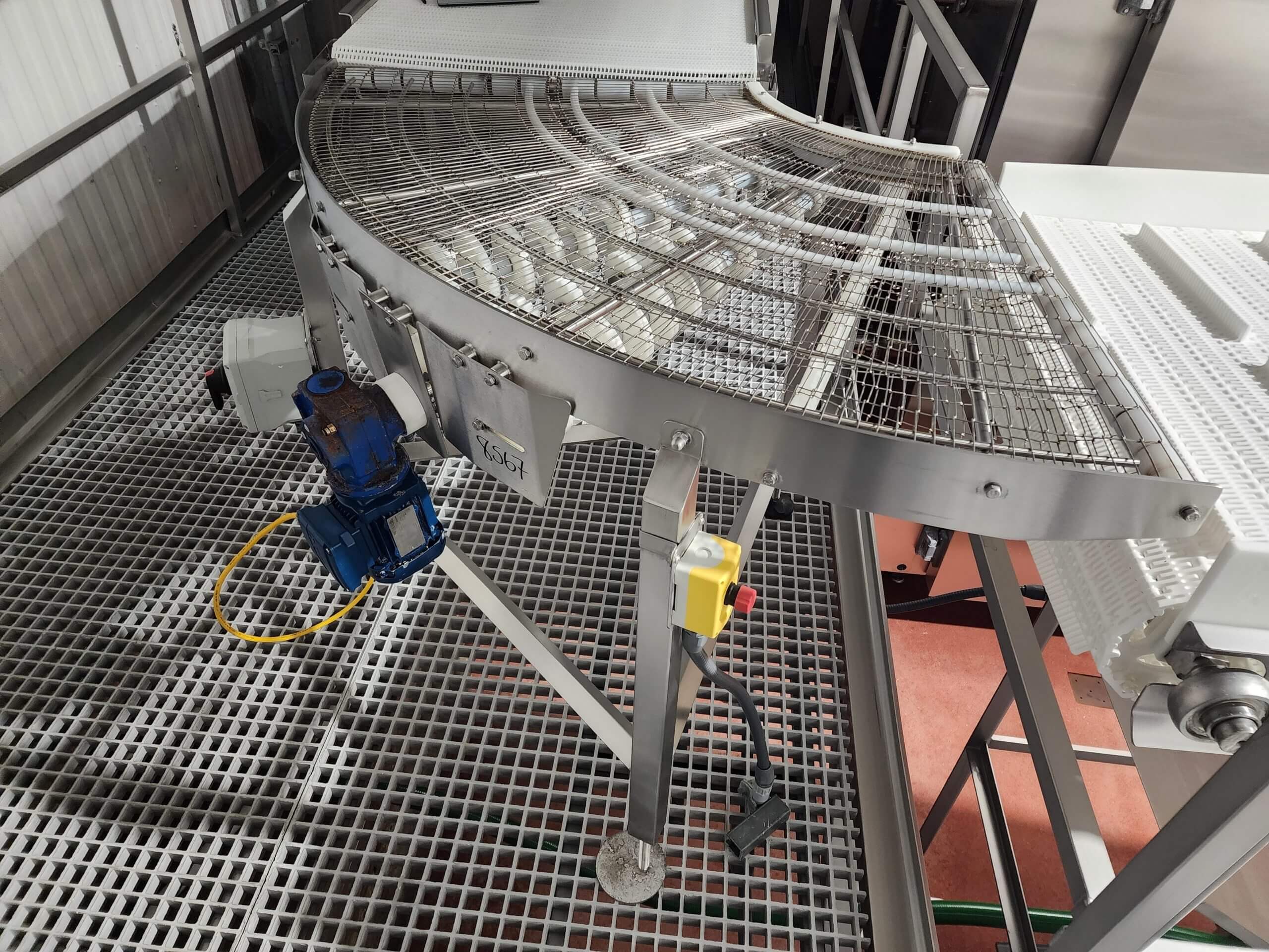 FPEC 327SL Stainless 90-Degree Conveyor. Stainless steel construction, 34″ wide conveyor belt, 6′ radius, 42.5″ height. 230V/460V/3PH/60HZ.