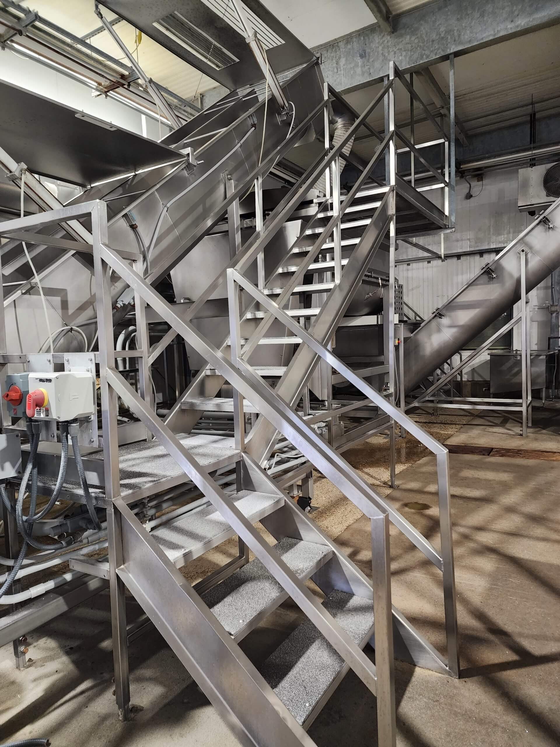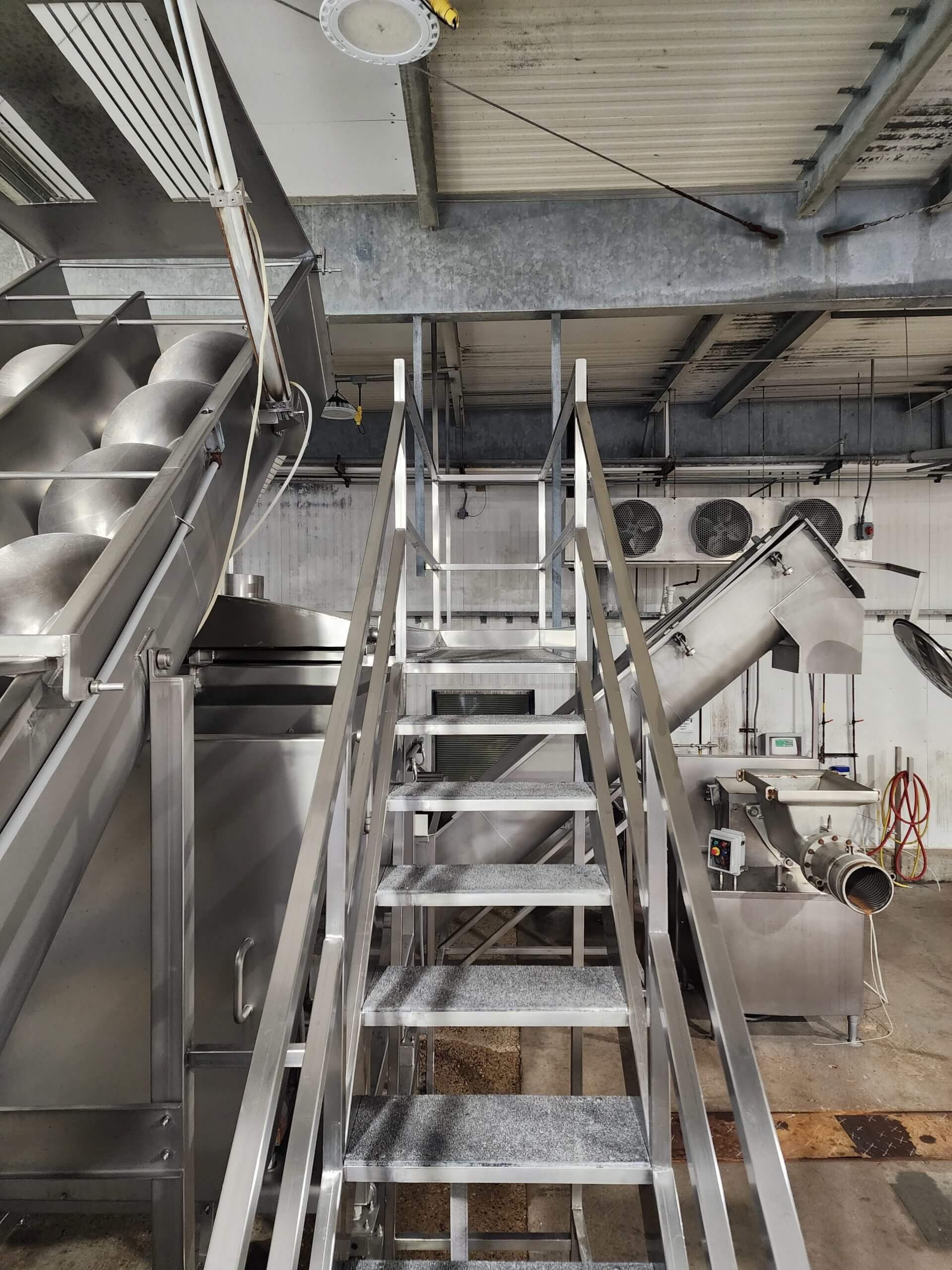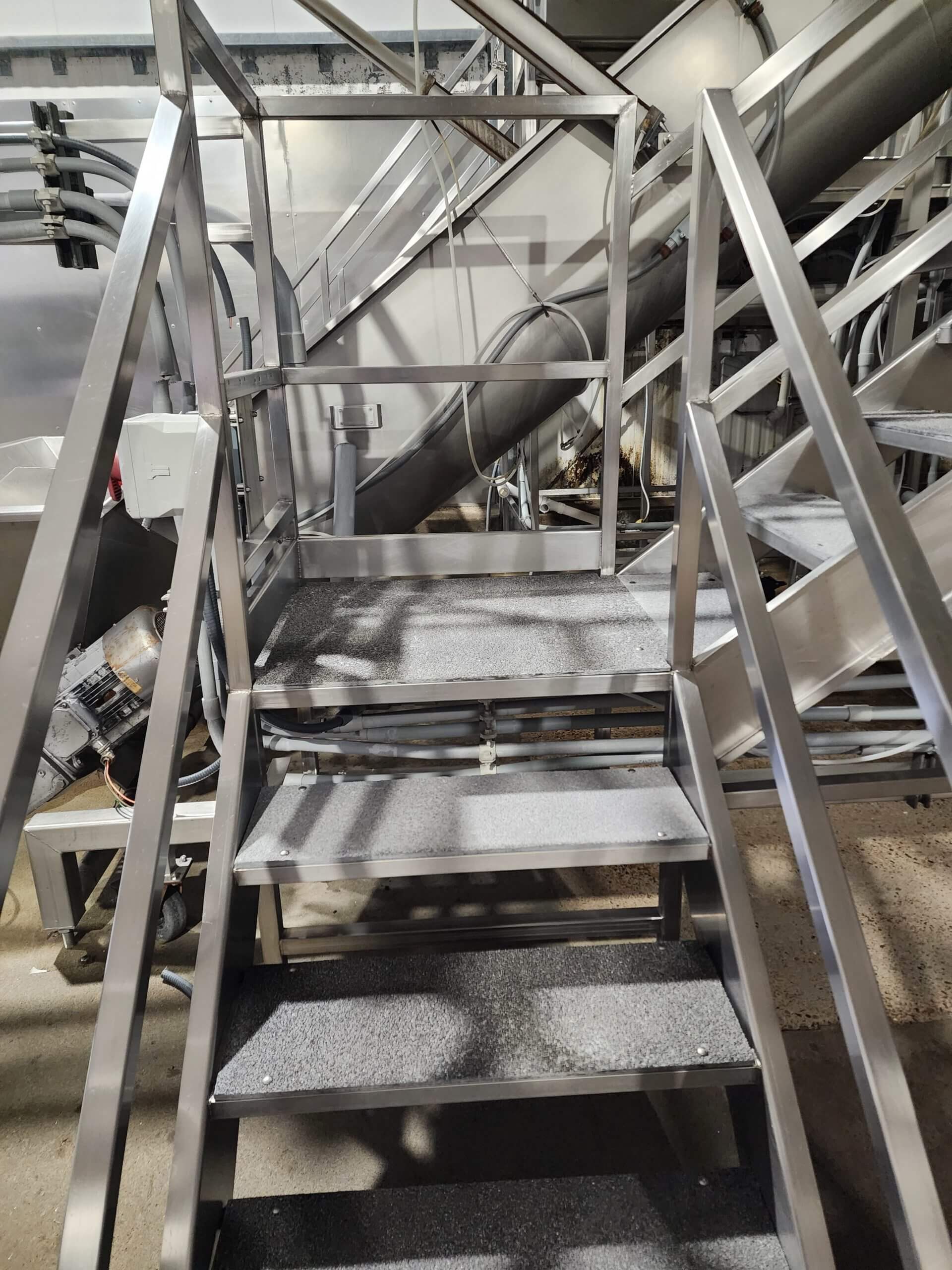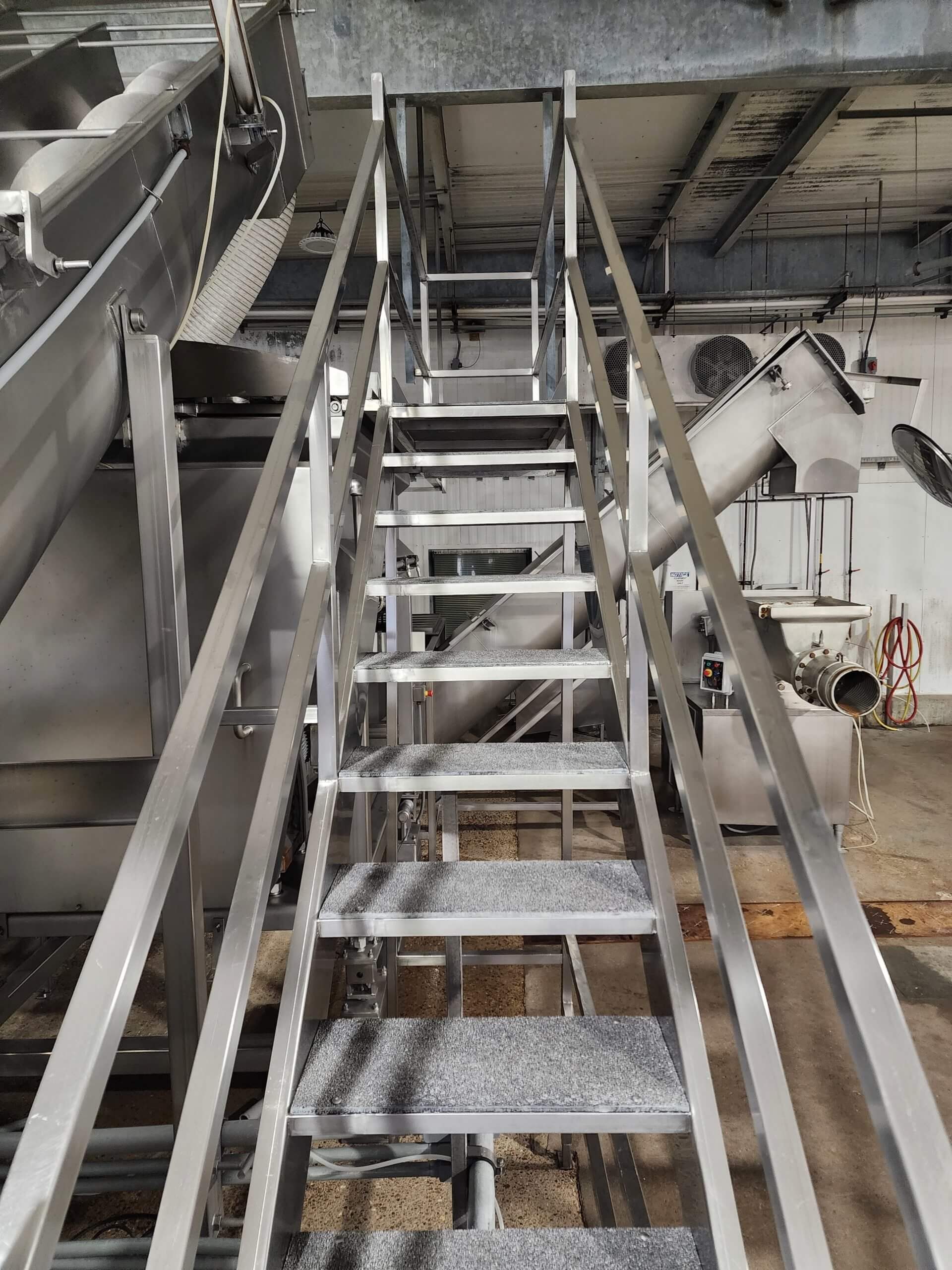 FPEC Work Platform. All stainless steel worker platform. 17′ long x 3′ wide x 9′ tall mezzanine. Includes 9′ tall handrails, with entrance & exit stairs for the work area.