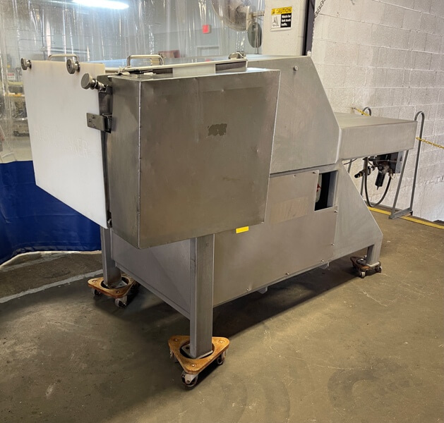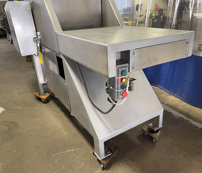 GMC HYDRAUFLAKER. Reduces hard or frozen blocks of meat, poultry & fish for further processing. Ideal cutting temperature is 15 to 25 degrees F. Built in loading table with automatic air operated ram feed system. Adjustable slice blades from 1/32″ to ¼”. Maximum block capacity 10″ x 24″ x 24″. Flakes up to three blocks per minute. 10HP TEFC motor. 460V/3PH/60HZ. Requires 4 CFM at 80 PSI compressed air.