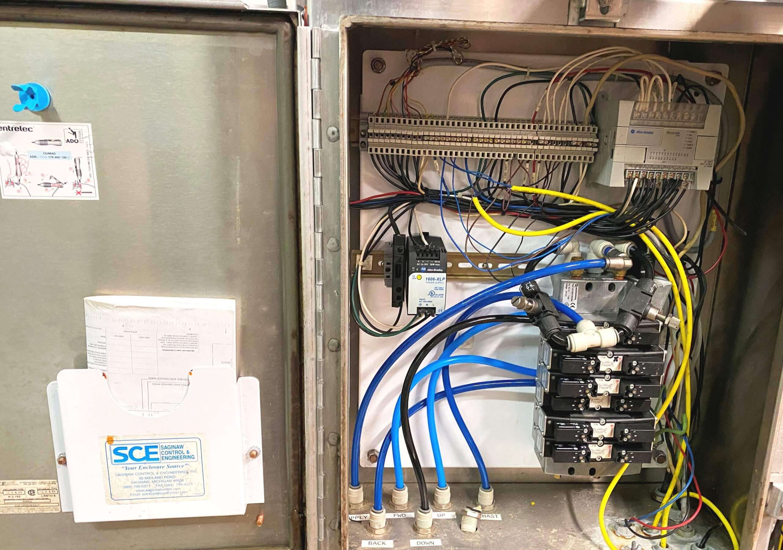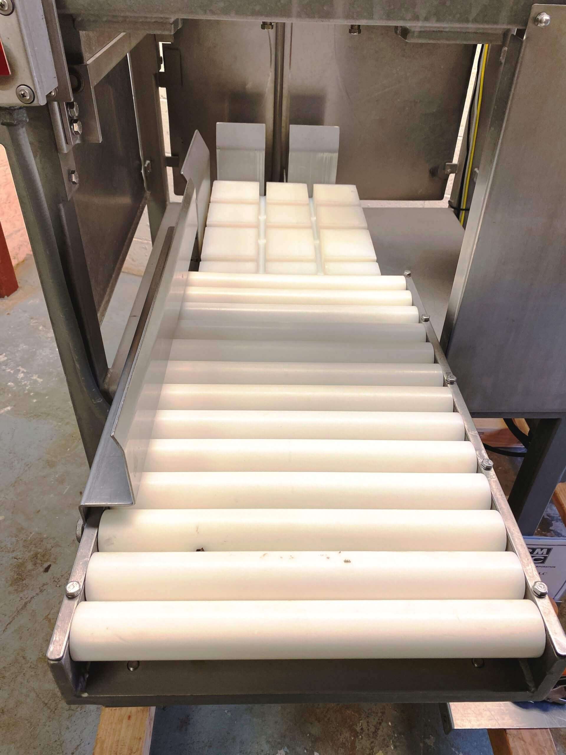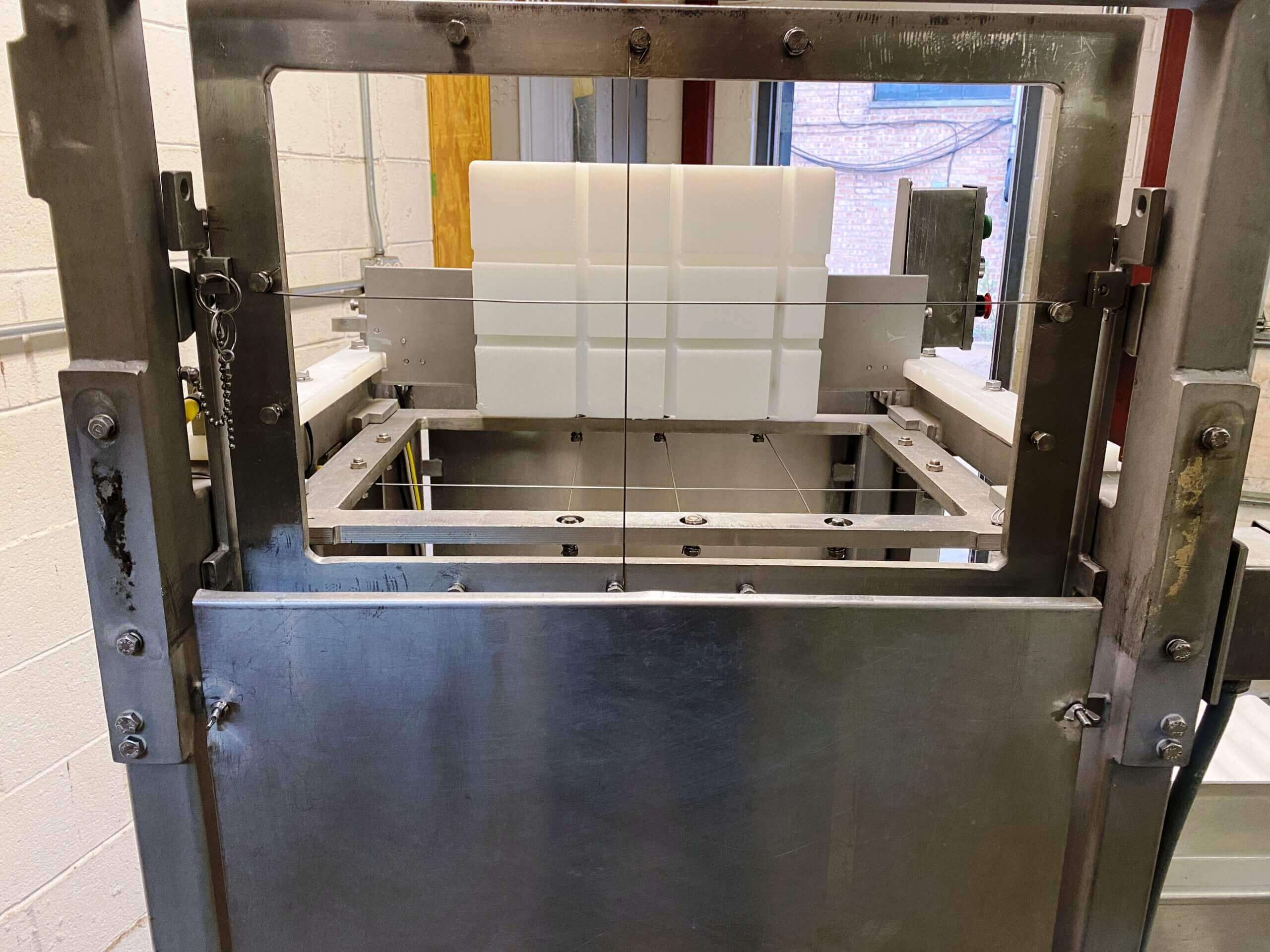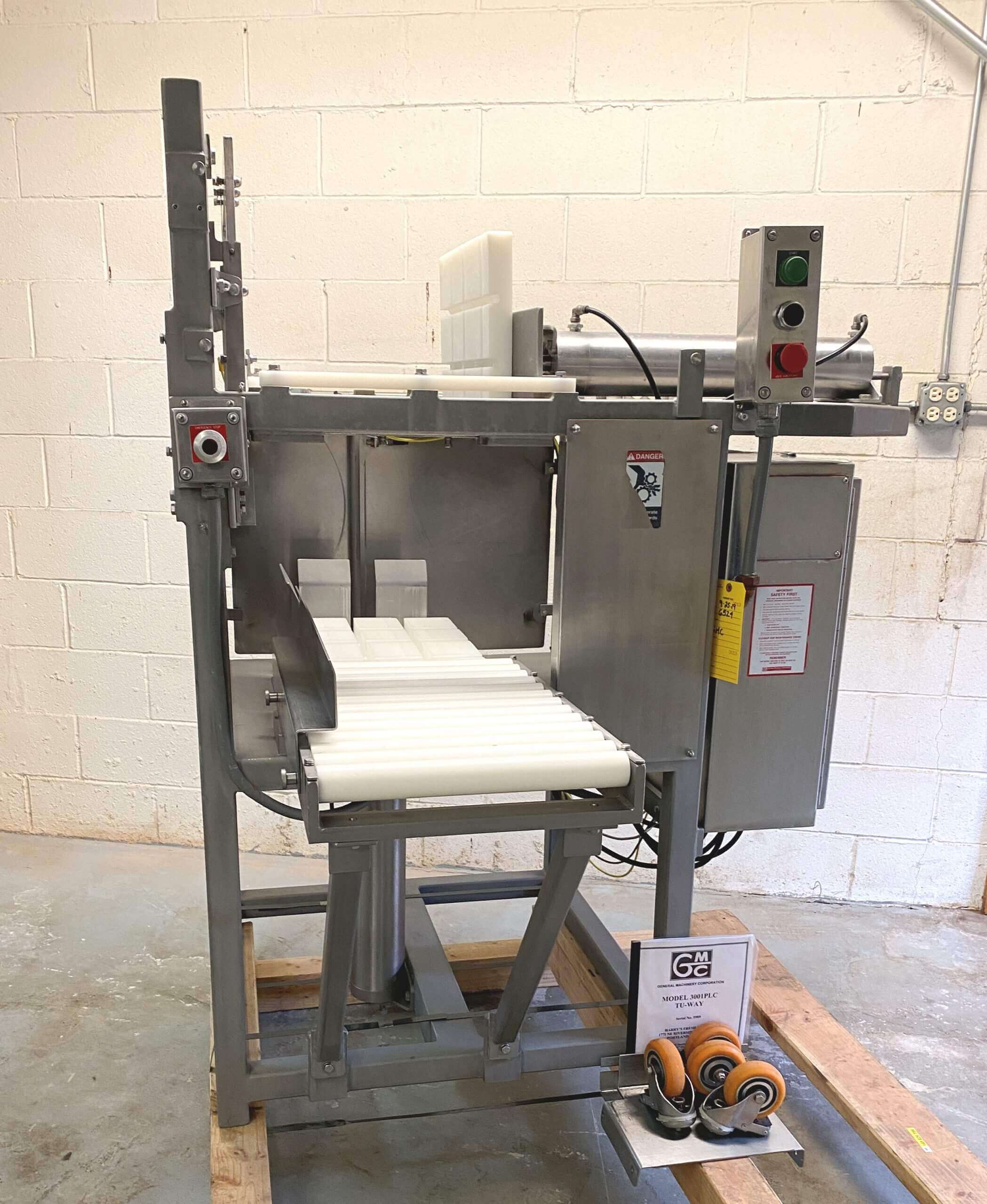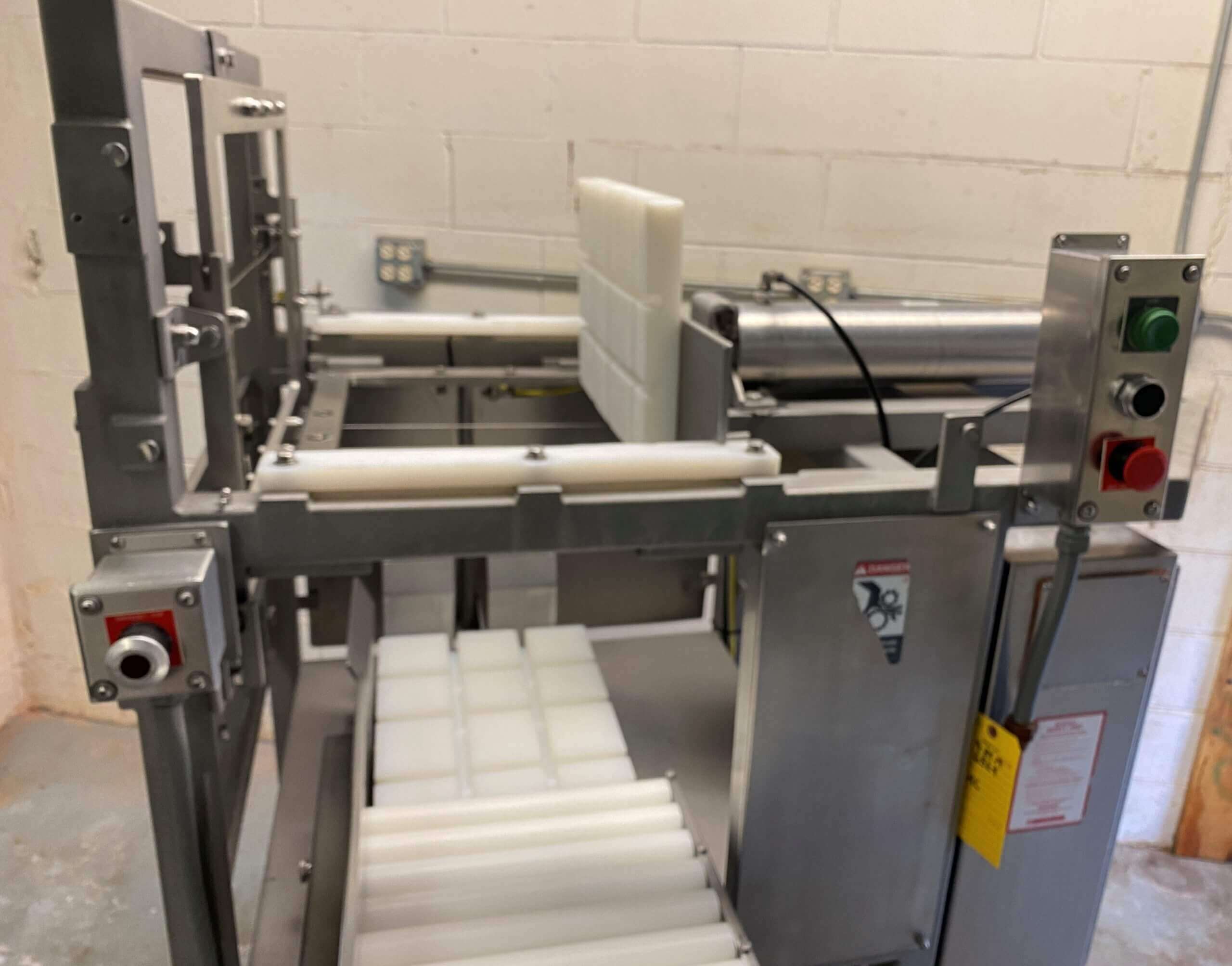 GMC 3000 Tu-Way Cheese Cutter, accurately portions cheese blocks up to 7″ X 11″ X 14″, air operated two directional cutting, automatic feed and discharge, cuts up to 1-40# blocks/minute. 110V/1PH/60HZ
