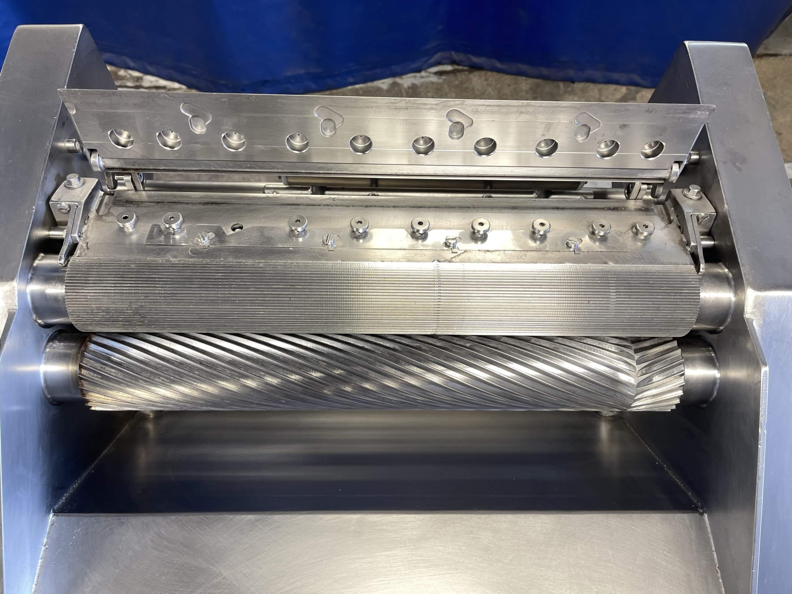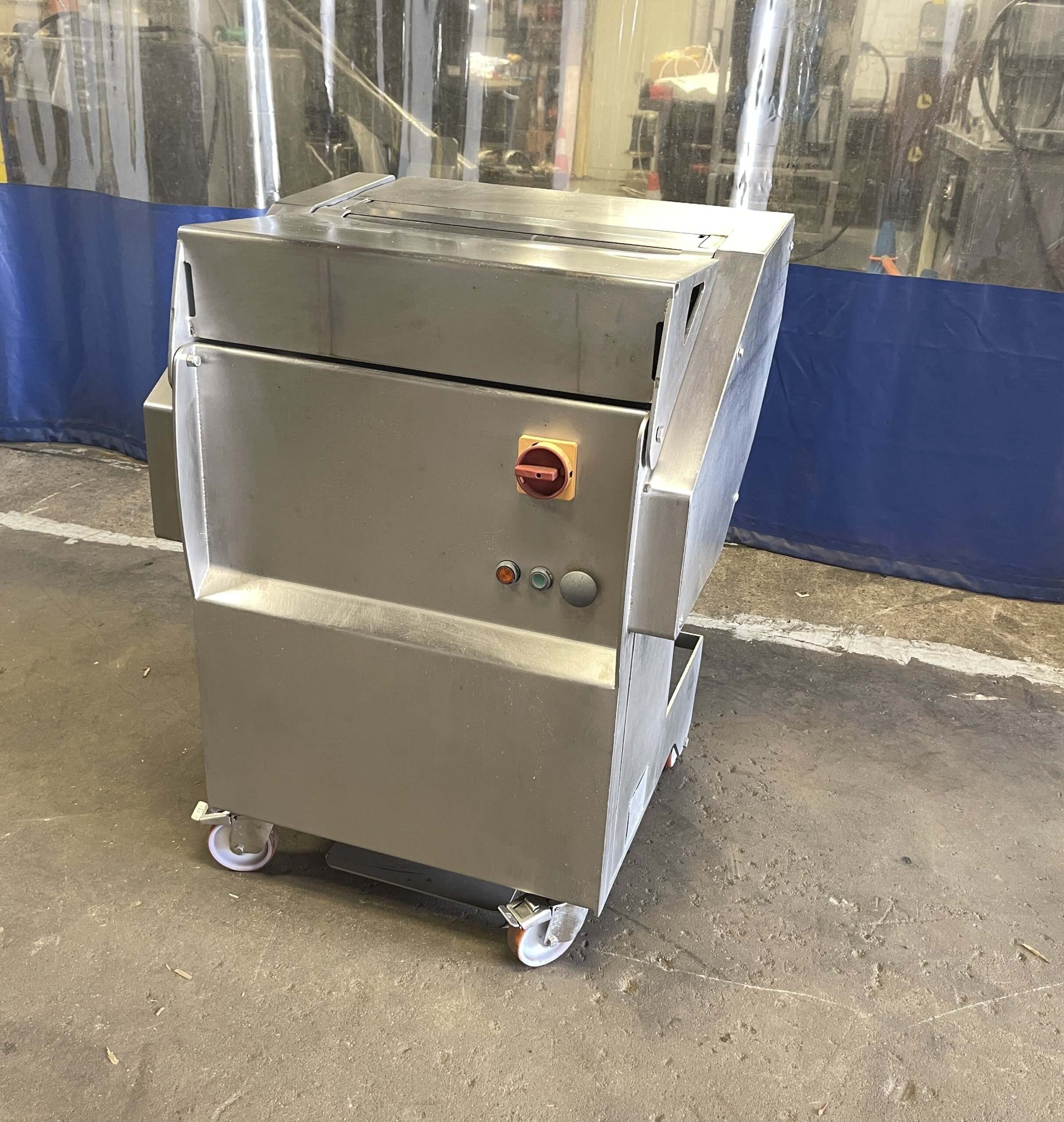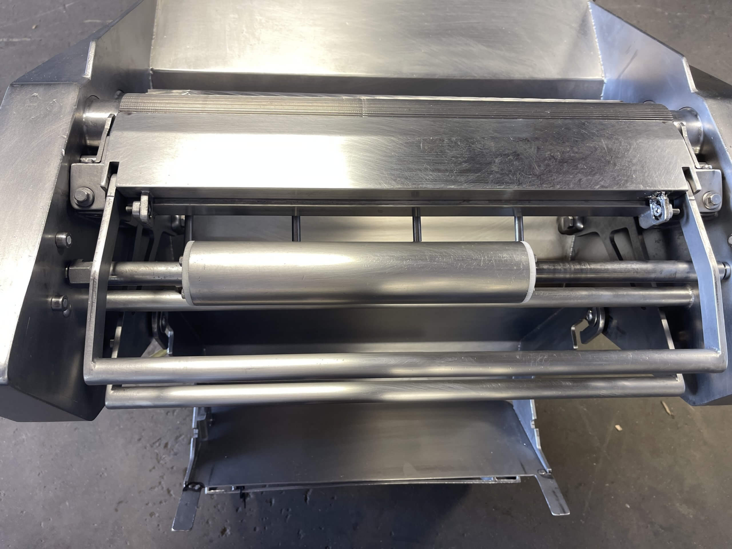 GRASSELLI RST520-M Membrane Skinner. 520mm (20.4″) wide usable width, stainless steel construction. Air shuttle tooth roller cleaning system. Designed to remove soft fats, sliver skin and membrane from beef, pork and poultry. 1 hp motor, 220/440V/3PH/60HZ.
