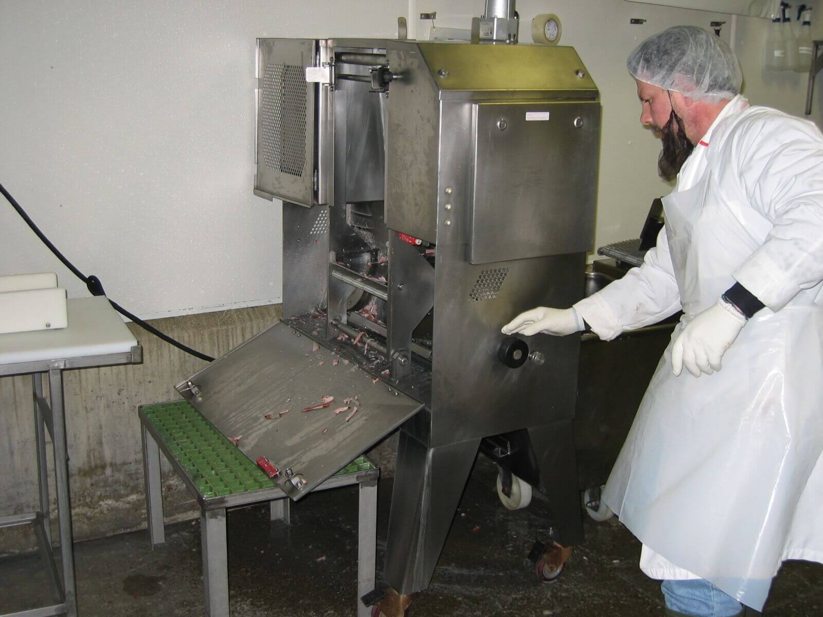 TREIF Zebra CE Slicer. Setup for 1/8″ slice thickness, minimum product temp. 2...