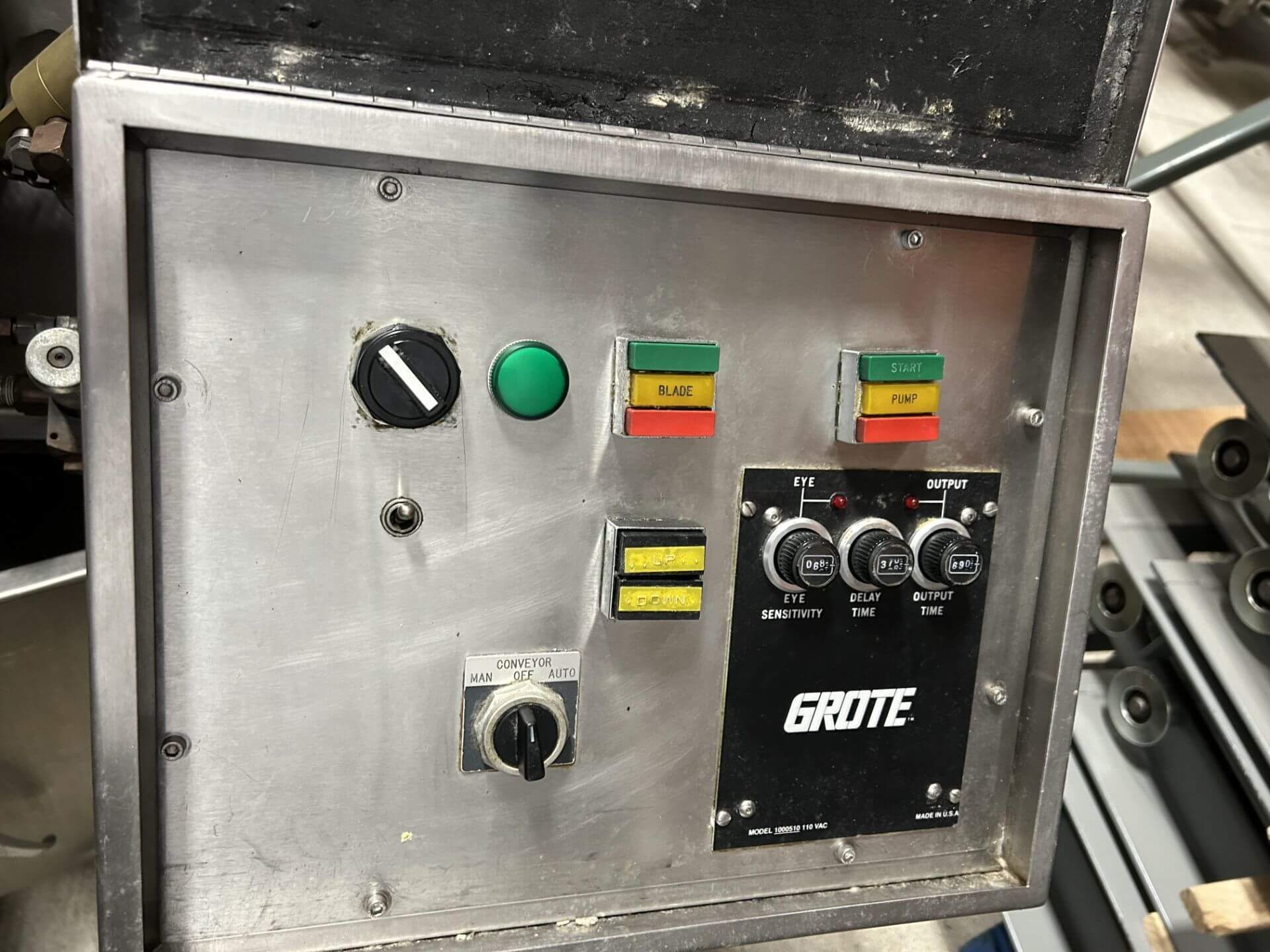 Grote 530 Slicer. Adjustable speed up to 176 stokes/ minute. 5″ X 30″ cutting ar...