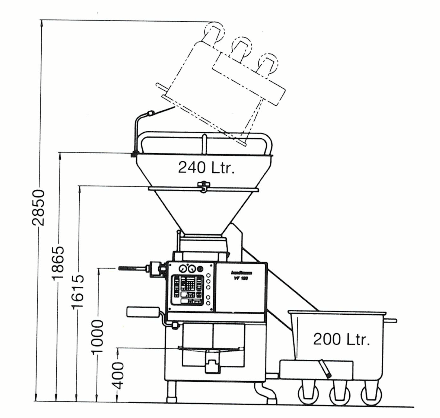 Handtmann VF 100 Vacuum Stuffer with built-in loader, 240-liter hopper, Filling volu...