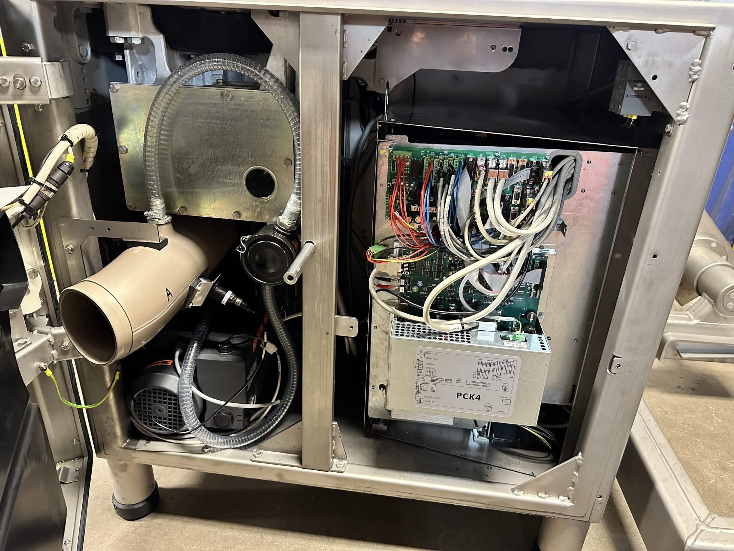 Machine has been fitted with updated Hopper, auger, auger drive, side disc, rotor, vanes, cam, pump shaft, gearbox with all bearings, water separator, 40qm Vacuumpump, pck4 control, etherCat, S05 amplifiers (used in VF800 series as well) rebuilt lifting device, every cable and socket. Ready for every existing and future Handtmann accessories and lines