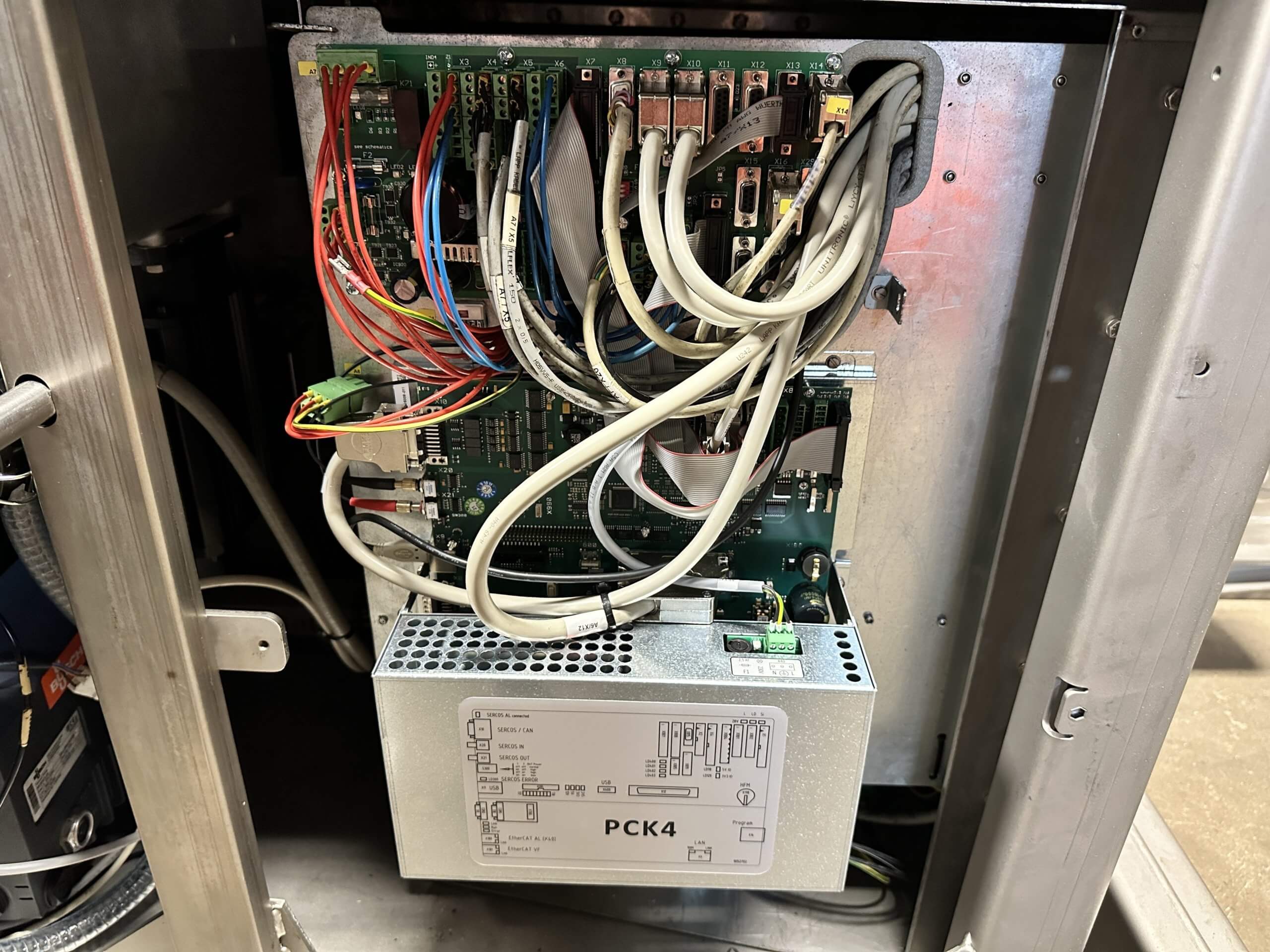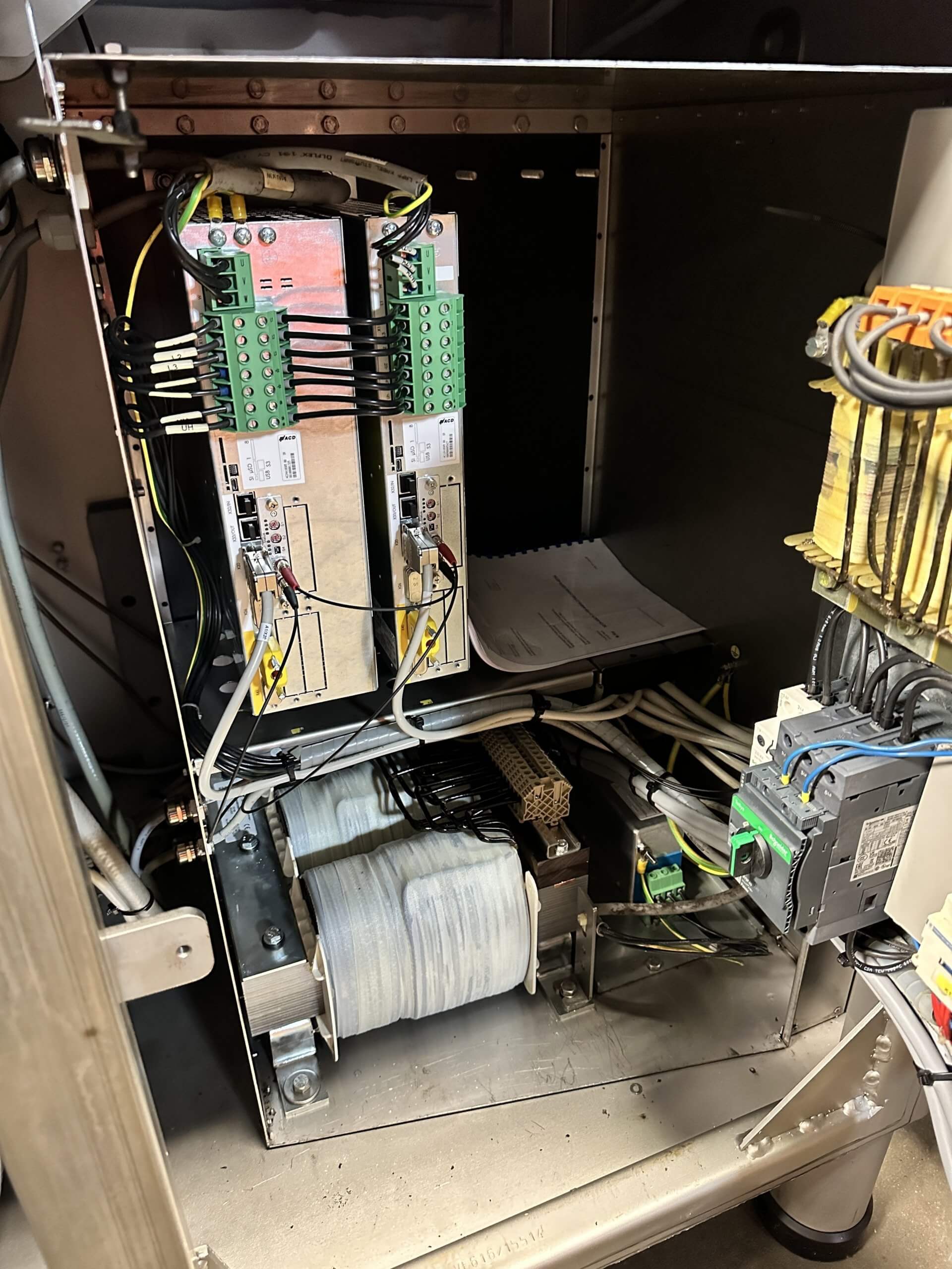 Machine has been fitted with an updated Hopper, auger, auger drive, side disc, rotor, vanes, cam, pump shaft, gearbox with all bearings, water separator, 40qm Vacuumpump, pck4 control, EtherCAT, S05 amplifiers (used in VF800 series as well) rebuilt lifting device, every cable and socket. Ready for every existing and future Handtmann accessories and lines