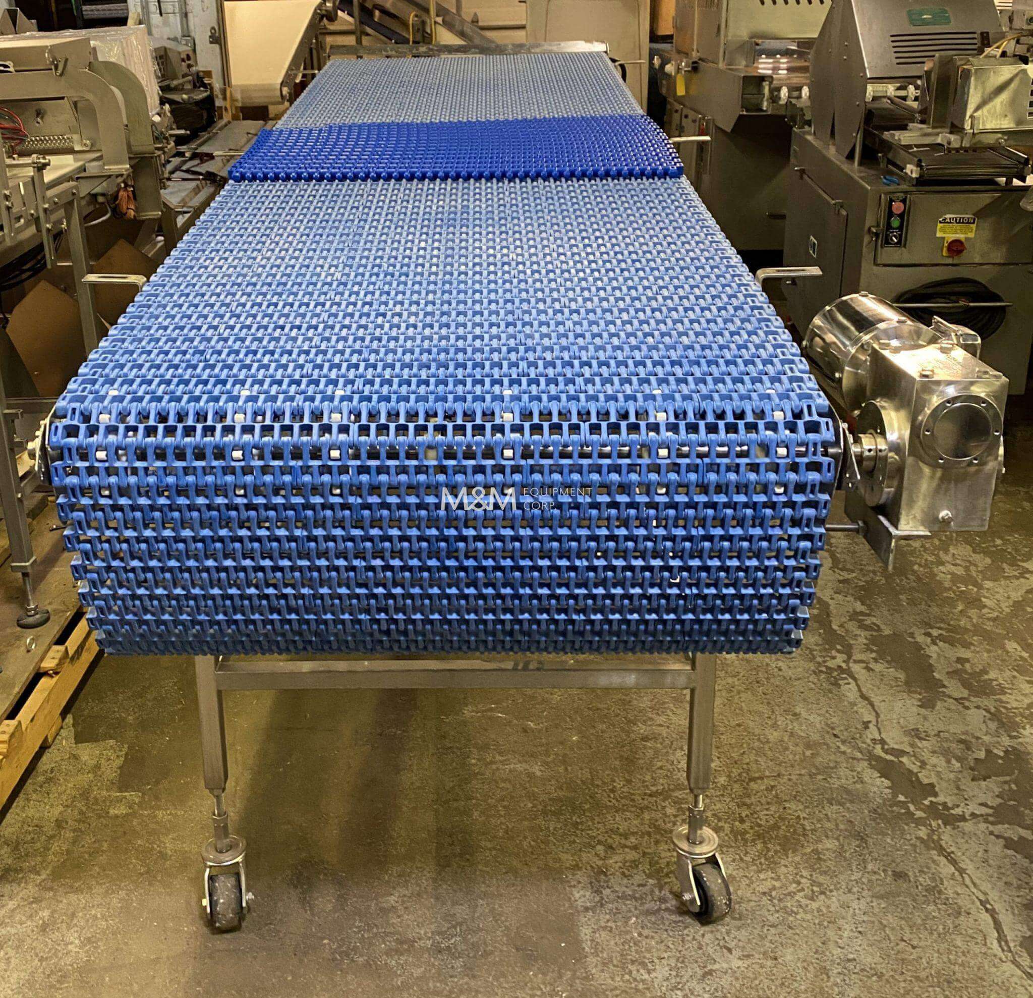 CUSTOM STAINLESS Transfer Conveyor. 18″ x 59″ plastic conveyor belt. Sta...