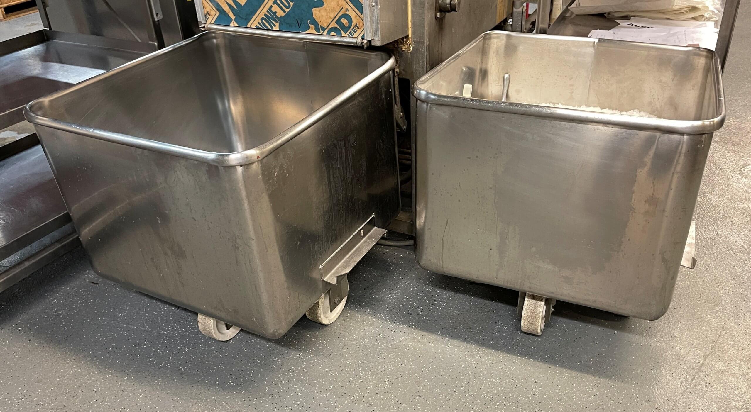 HANTOVER 400 LBS Meat Trucks. (6) 400 Lbs. Dump Buggies, 14-gauge 304 stainless stee...