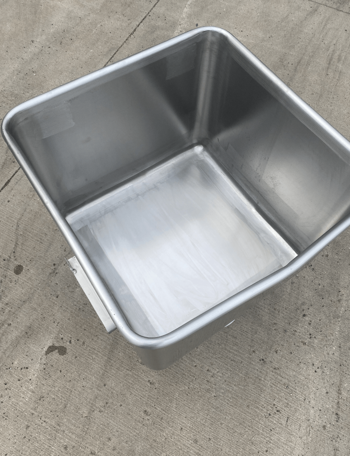 HAVANTEC 400# Dump Buggies. 14-gauge 304 stainless steel top portion and 11-gauge stainless steel bottom with cross braces for additional strength, includes push handle, (4) 6″ X 1-1/2″ poly wheels, stainless steel axles & nut. Dimensions: Dimensions: 26″ L x 26″ W x 20″ D.