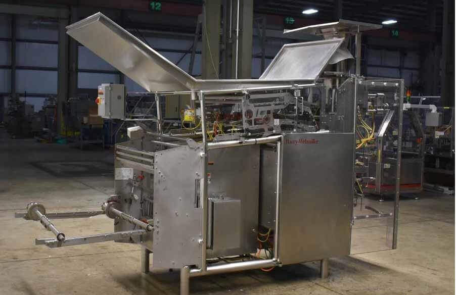 Used Hayssen Ultimax CM-15 HPR Continuous Motion Washdown Vertical Form Fill Seal Bagger. Has top and bottom gusseting. Uses Allen Bradley Logix 5561 PLC controls, Allen Bradley Versa View 1200 HMI, Rexroth Servo drives, and print registration. The machine was previously running meat products. Integrate fillers can be mounted per application at an additional cost (combination scales, auger fillers, volumetric cup fillers, liquid/piston fillers, etc). 30 amps. 1/60/460V. Currently equipped with a 15″ former. Capable of speeds up to 130 bags per minute (depending on size and application). Suitable for structured, barrier type resistance sealed film, with bag size range approximately 2″ – 15″ (width); 2″ – 30″ (length)