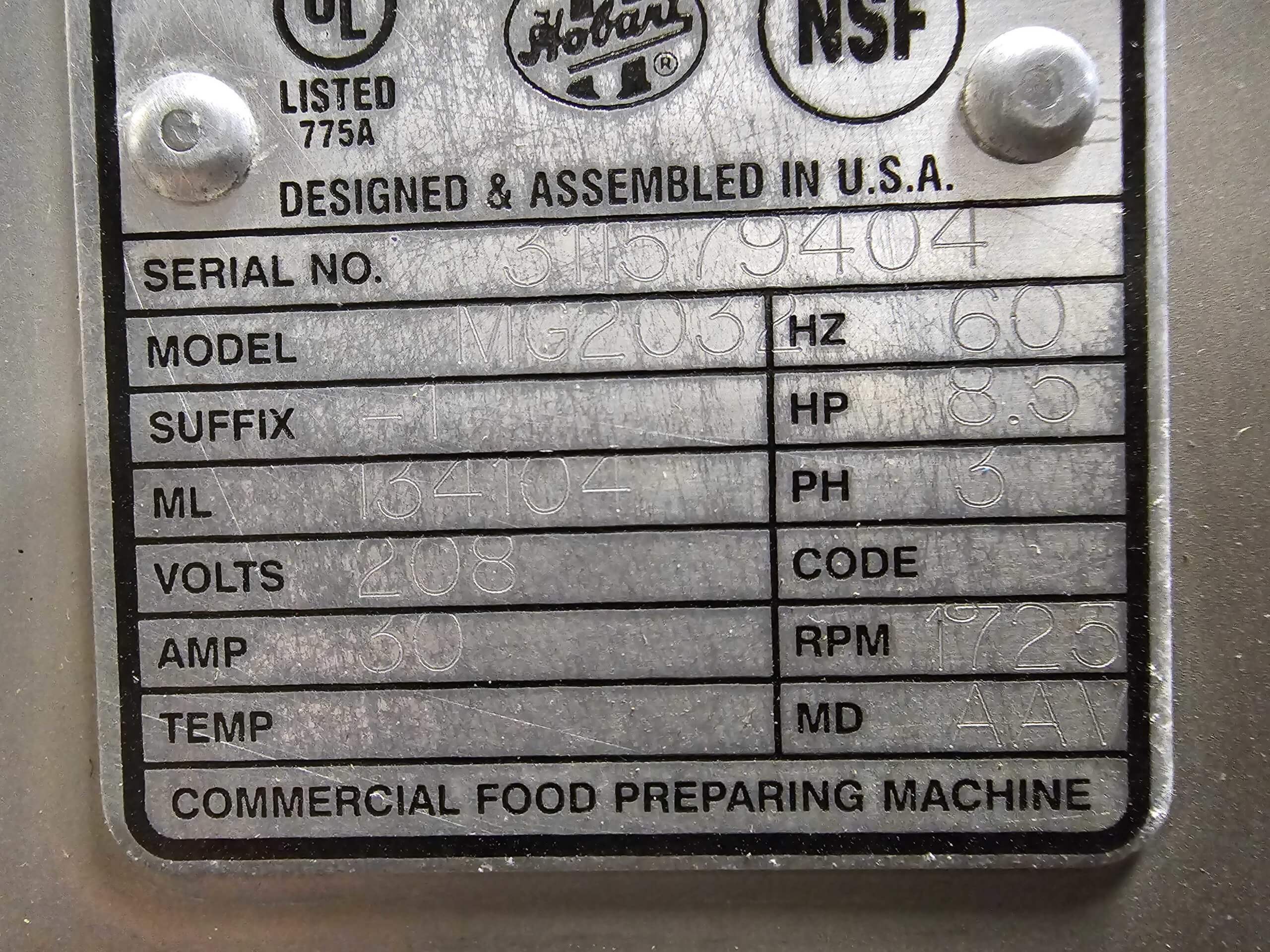 Hobart MG1532, SN 27-1111636, 208V/3ph/60hz...