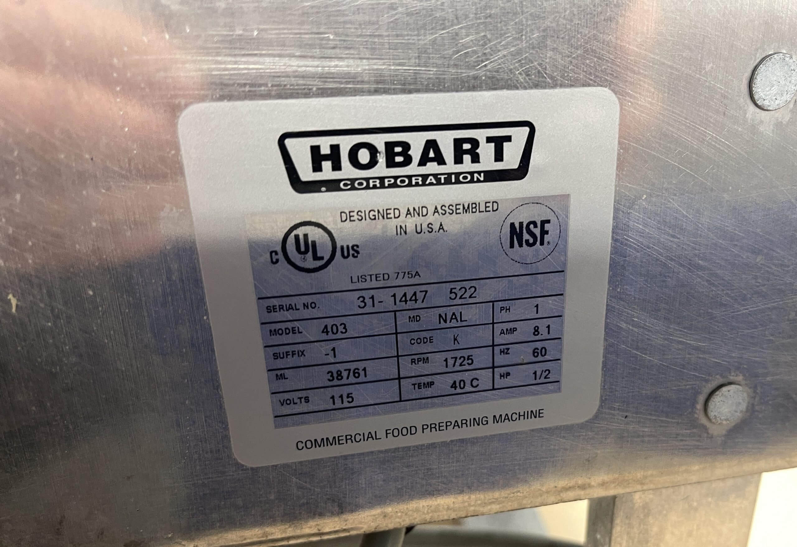 M&M Equipment Corp > Equipment List > Used > HOBART 403 Tenderizer