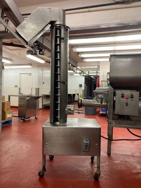 Hobart 4356 Mixer Grinder. 600 LBS. Hopper capacity comes with Hobart SC9056 Vertical Screw Conveyor. Screw conveyor has 90″ discharge height. 220V/3ph/60hz.