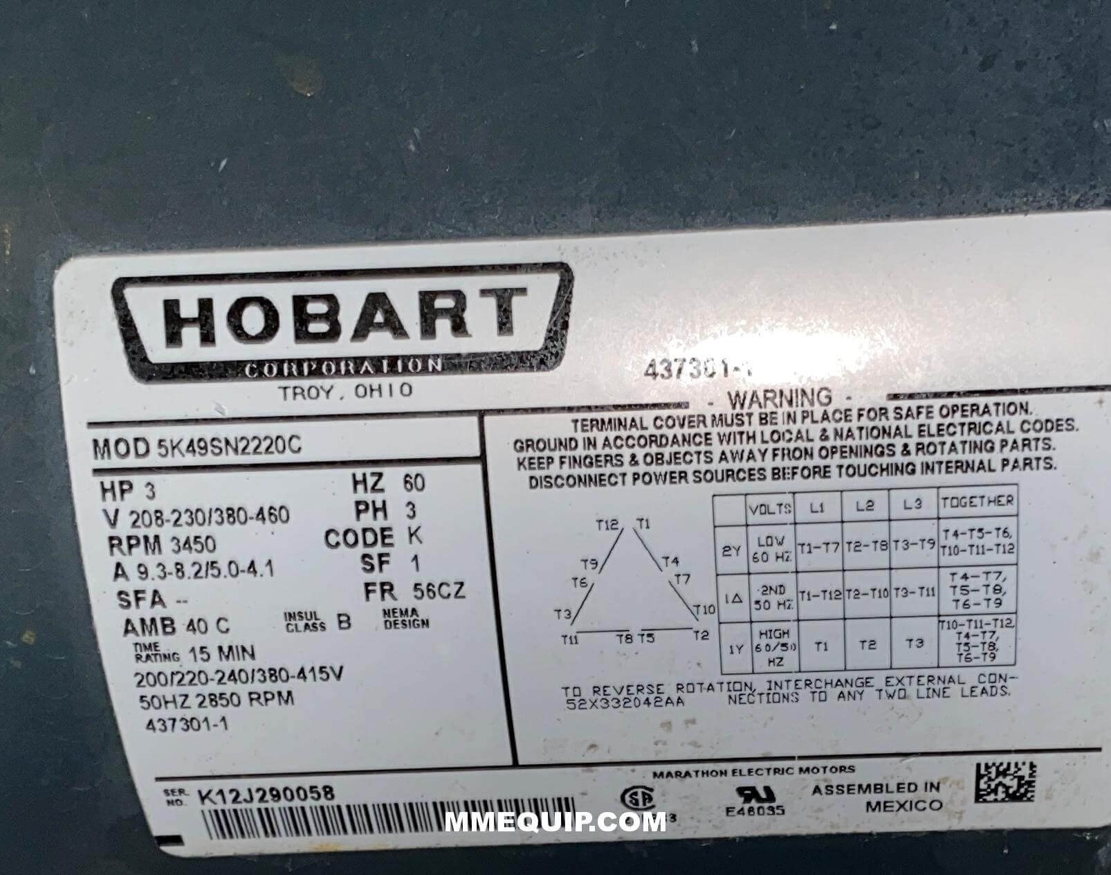 | Manufacturer | Hobart |