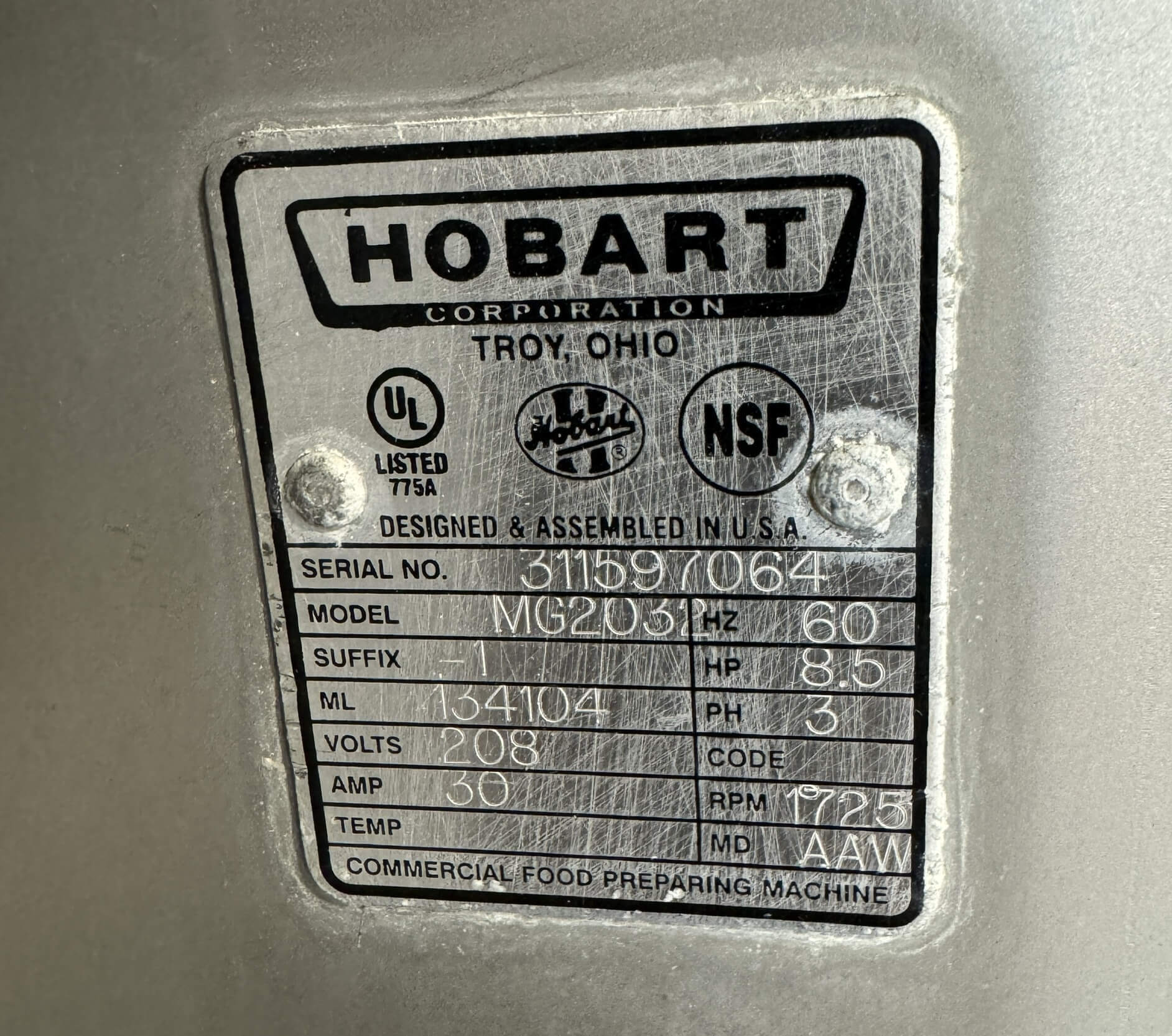 M&M Equipment Corp > Equipment List > Used > Hobart MG2032 Mixer Grinder