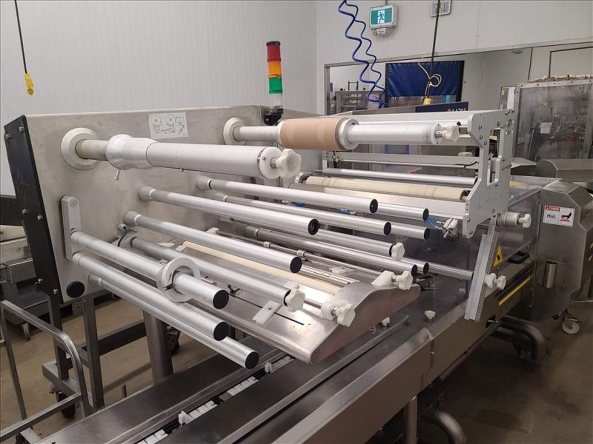 Ilapak Carrera 1000 Automatic Horizontal Flow Wrapper, model Carrera 1000, year: 2018, includes various spare parts. This packaging machine will be available for sale in our upcoming auction on May 22nd, 2024.