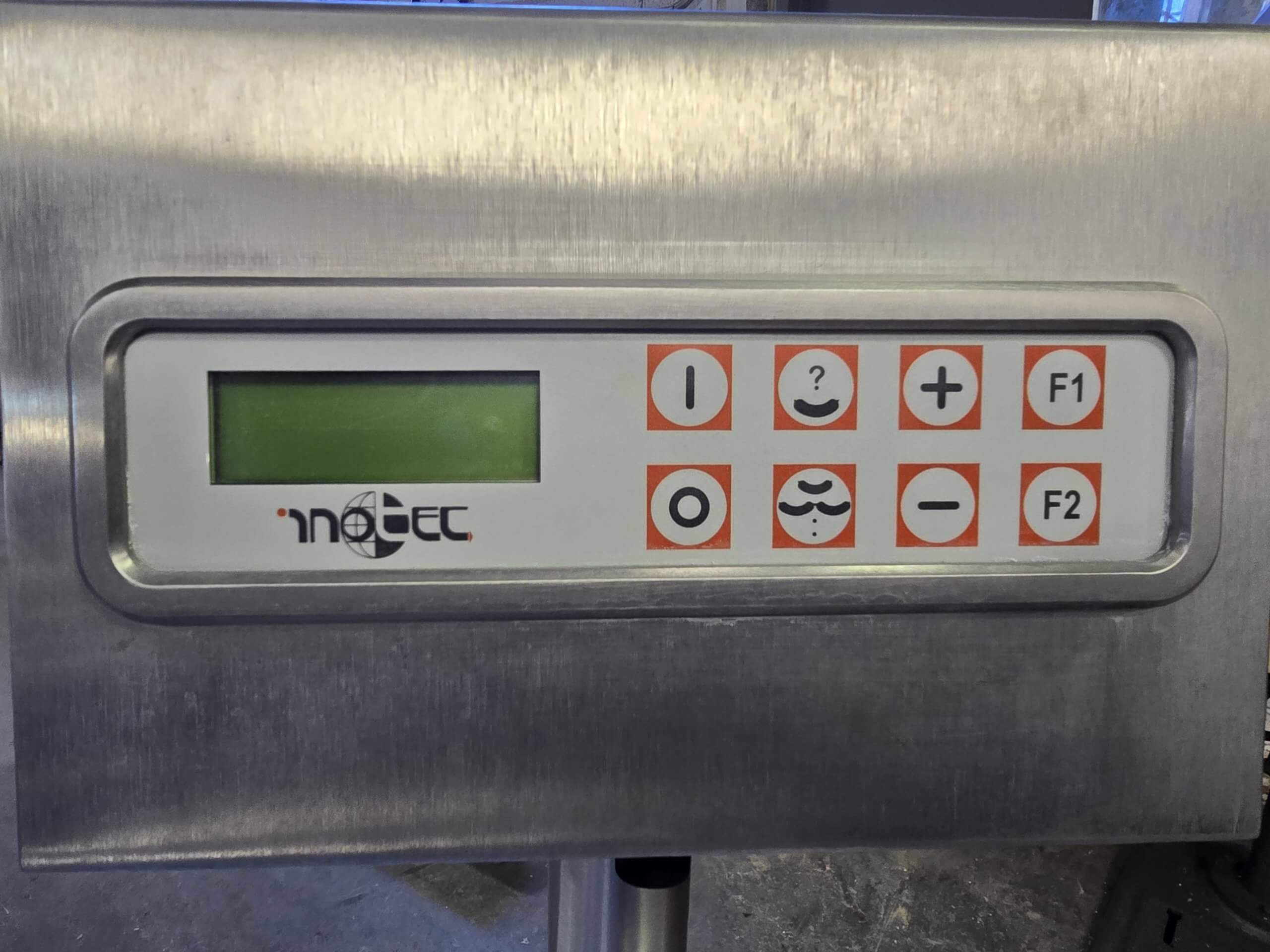 Inotech WT 99-S Link Cutter. All stainless steel construction, single lane link cutter, up to 1,800 cuts per minute, casing range between 10mm-50mm, belt speed between .25-2.1 meters/second, 230V/3PH/60HZ.