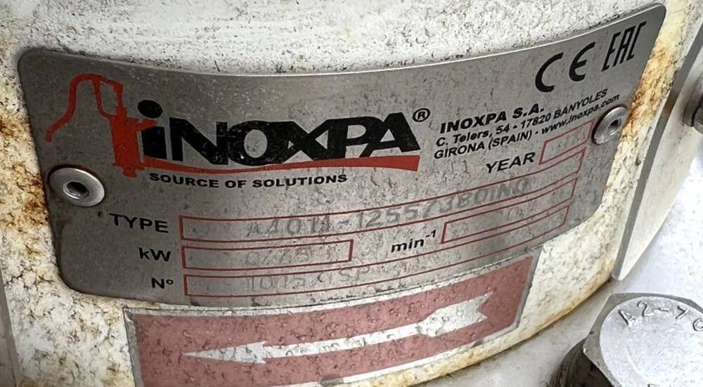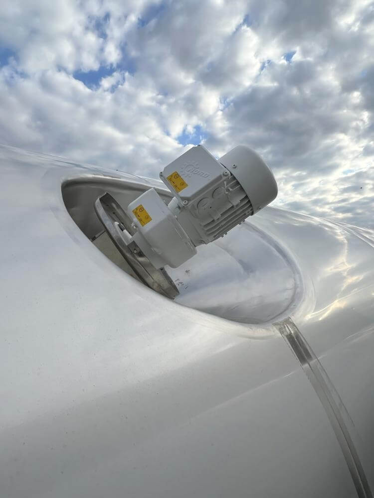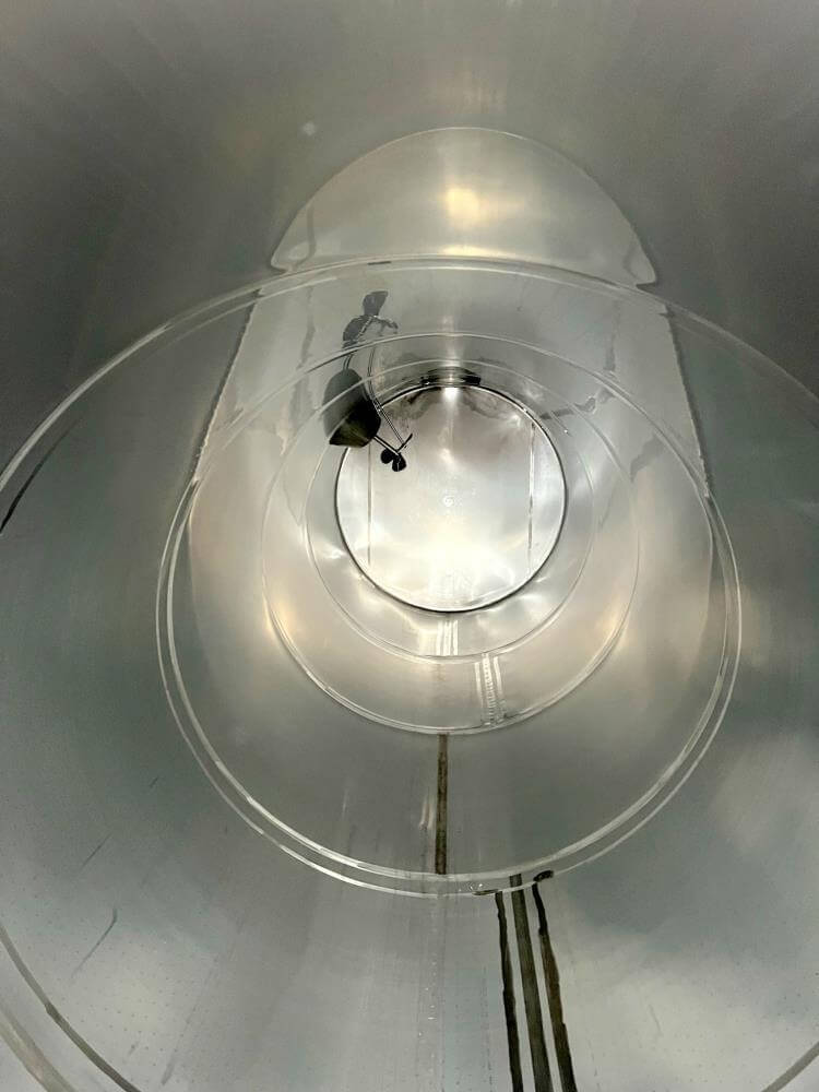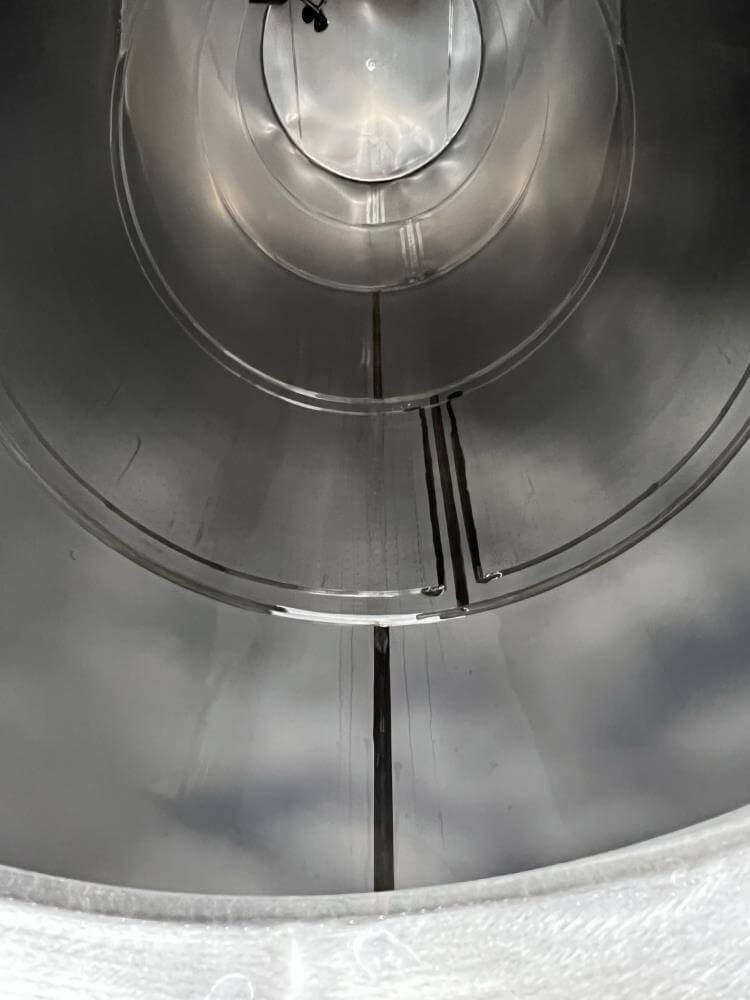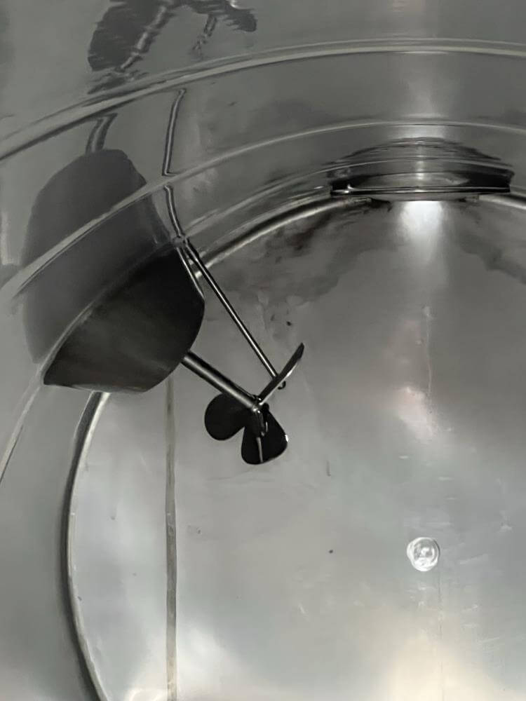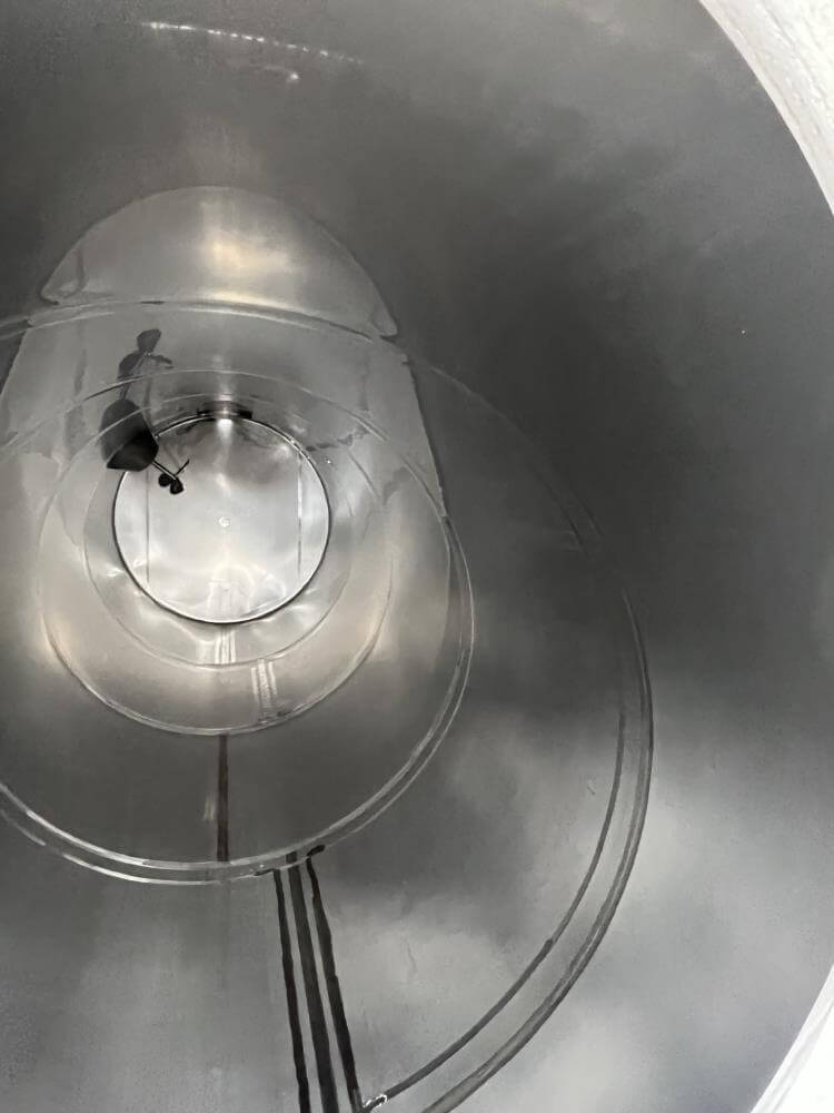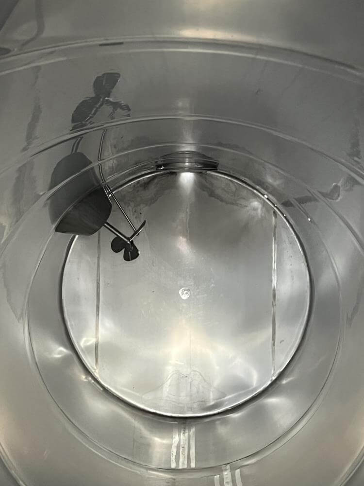 Insol 316 Stainless Steel Tank. 25 Cubic Meter, Approximately 6525 Gallon capacity, 316 Stainless Steel. Approximate 84″ diameter x 272″ straight side. 15 Degrees cone top, 3% sloped bottom. 3 – Cooling zones. Side bottom, 3 blade prop agitator, driven by a .75kW (1hp), 3/60/230/460 volt, 1730 rpm motor. Openings top: 16″ manway with cover, 3″, approximately 9″ diameter vent, 2-1/2″ side bottom discharge. 16″ long x 12″ tall side bottom manway. Empty weight 7140 lbs. Empty weight 7140 lbs. Includes (1) Spray Ball.