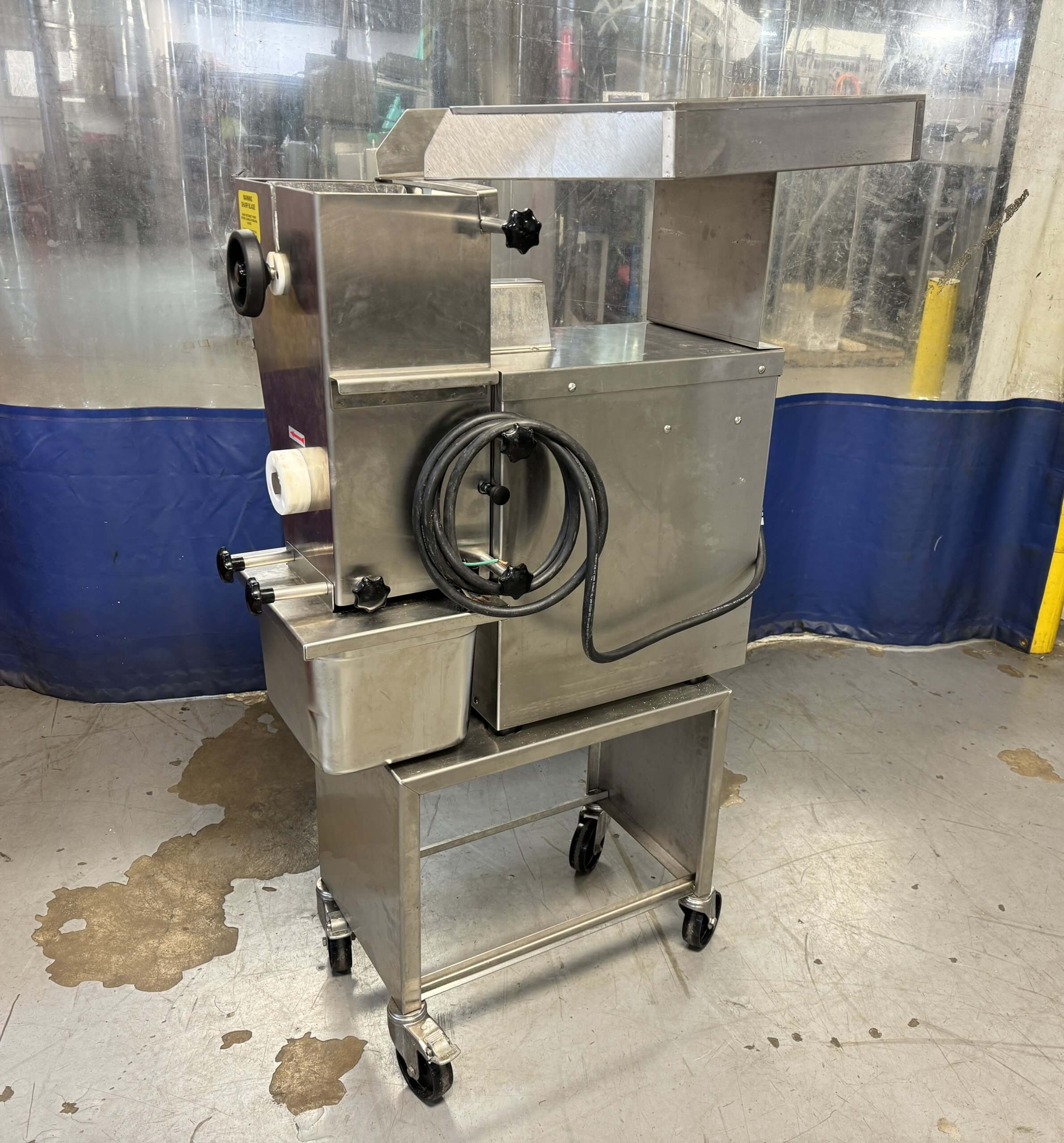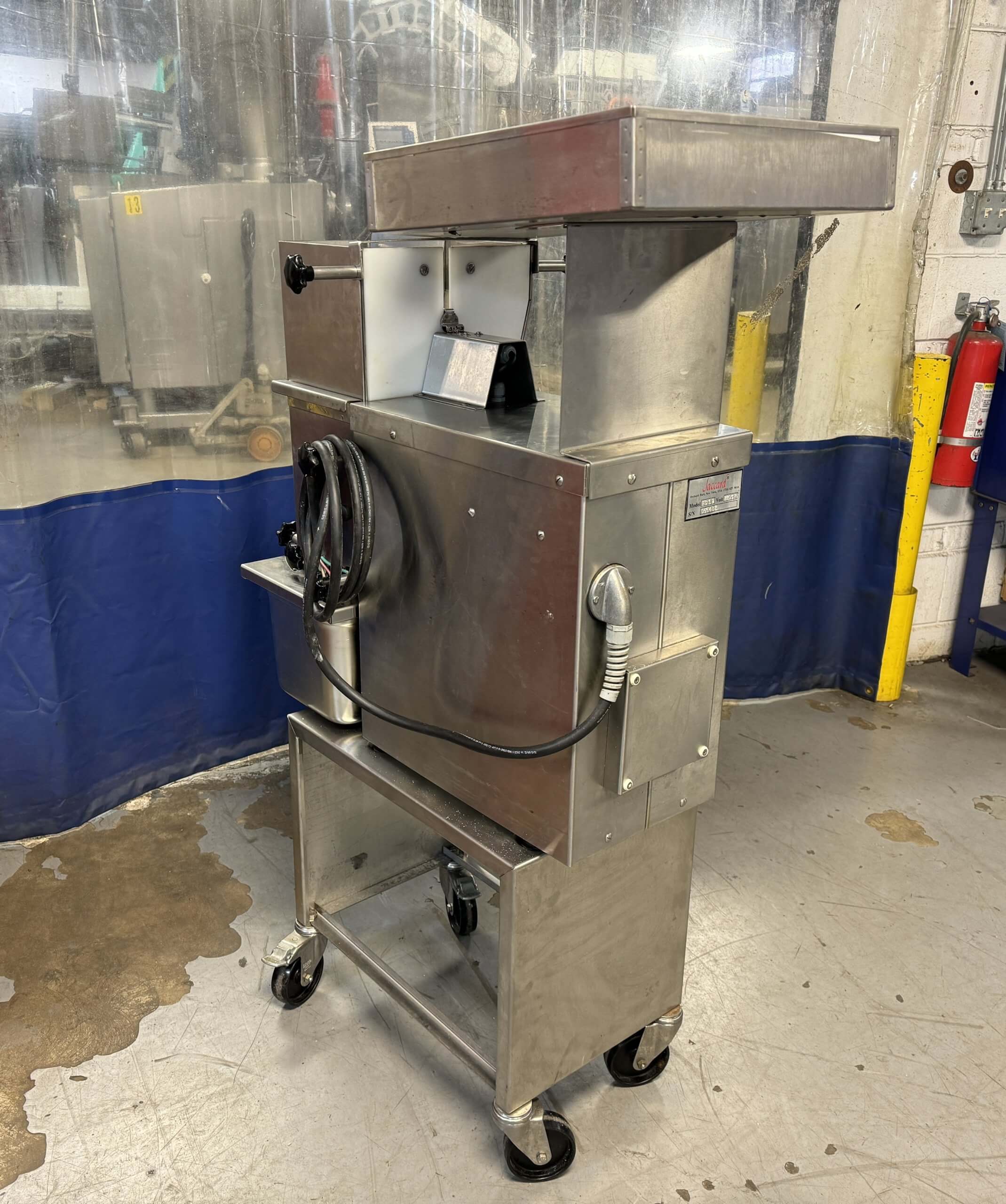 Jaccard FS-19 Slicer. Suited for slicing/cutting into strips and dicing fresh boneless meat, can process up to 2,000 Lbs. an hour, 2 hp motor, 220V/3PH/60HZ, 10 AMPS.