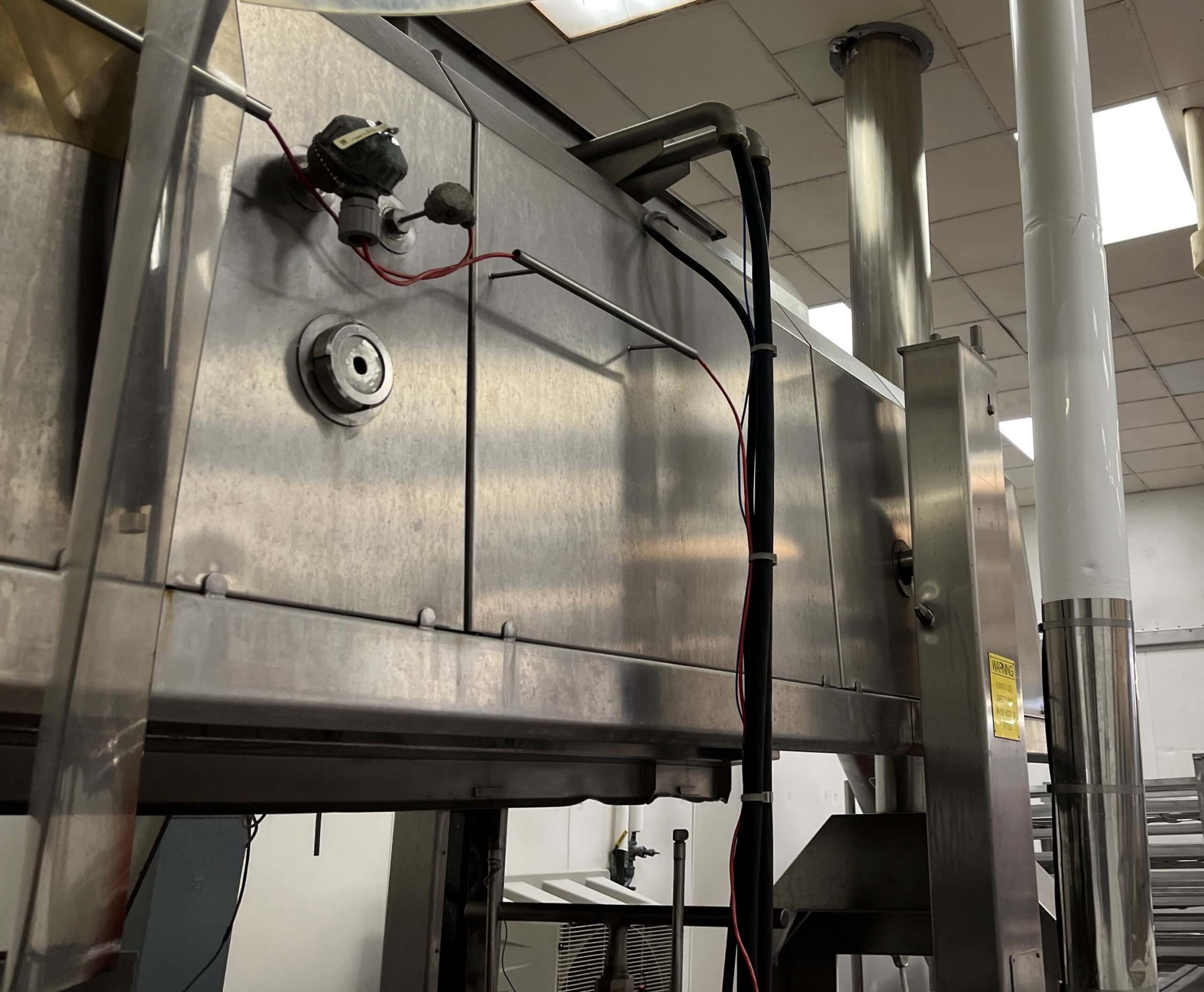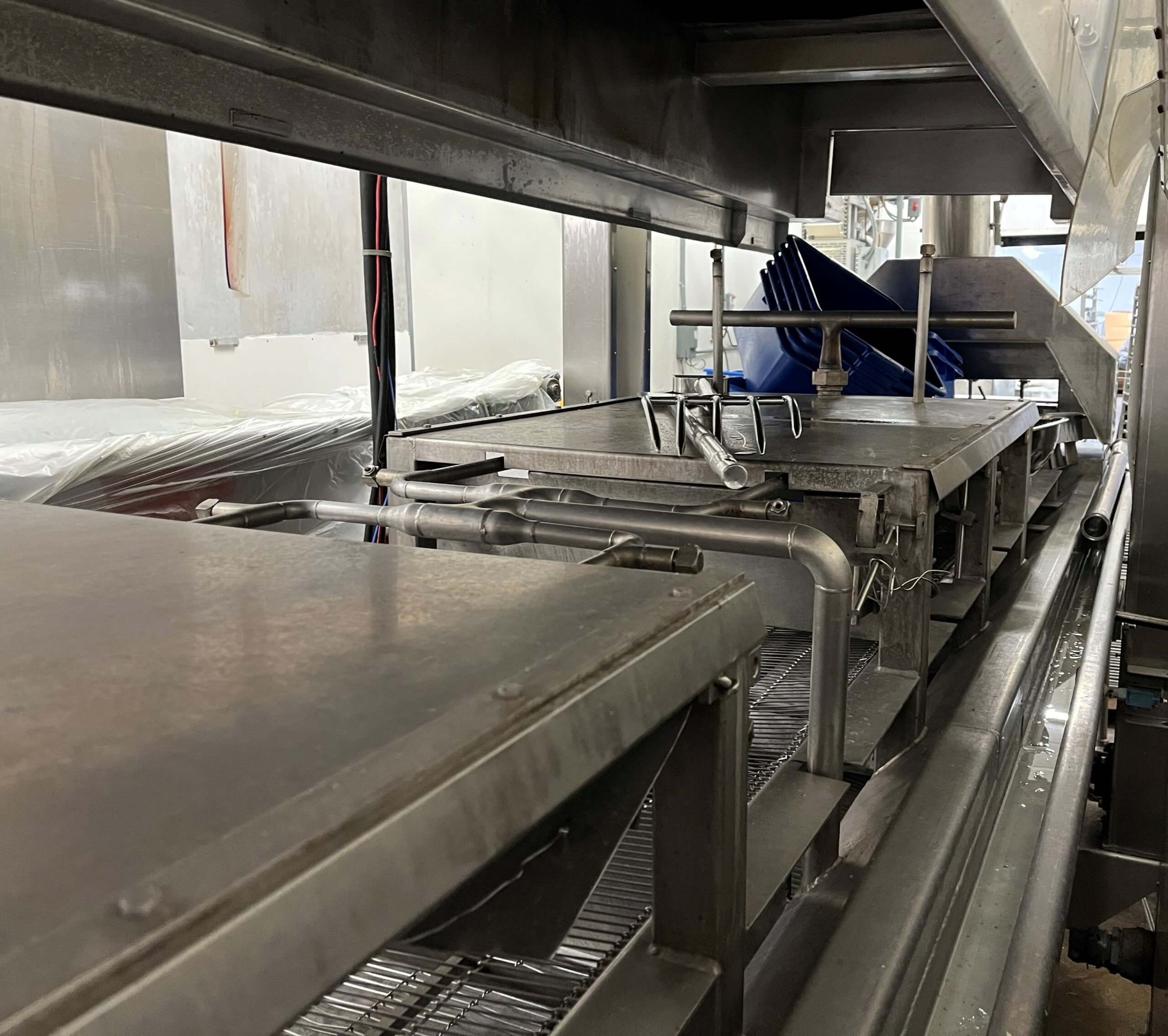 Koppens 6000/600 Continuous Impingement Cook Tunnel. 600mm (23.6″) wide stainless steel mesh conveyor belt, 19’6″ long cook zone, electric and steam fired, with controls. 440V/3PH/60HZ, 100 Amps.
