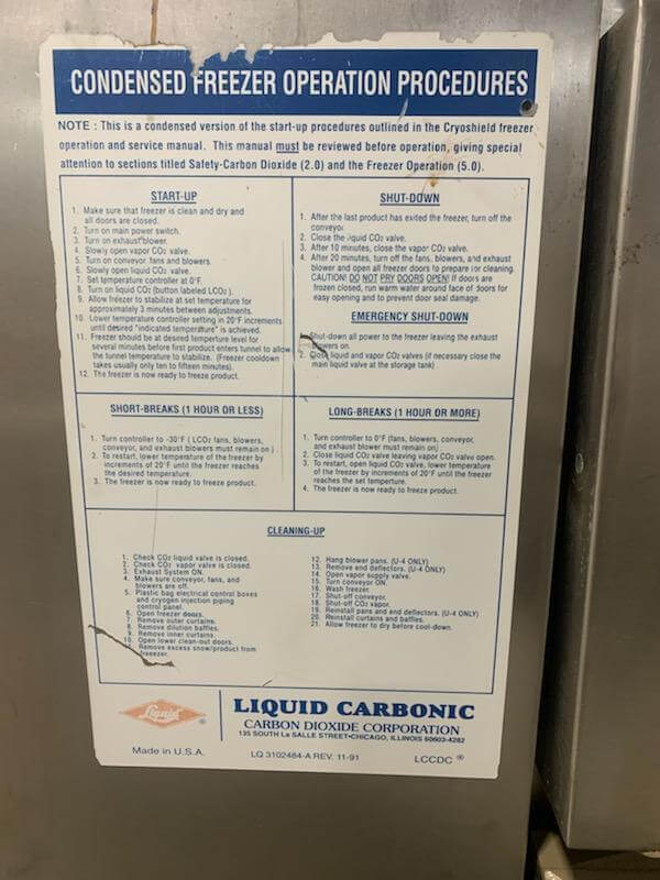 Liquid Carbonics JE U2 Freeze Tunnel