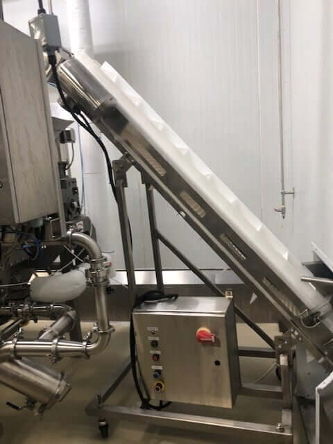 LYCO Blancher Rotary Drum Blancher. 70″ diameter perforated product cylinder with half submerged in water. Product enters and exits through gravity chutes with up to 200 Lbs. of product per flight. All stainless steel construction. 440V/3PH/60HZ.