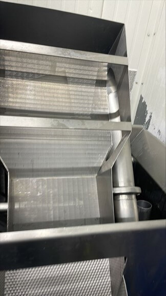 LYCO Easy Flow Cooler. Cools from 200° F (93.3° C) to 70°F (21.1° C) in 10 seconds. Capacity: up to 5,000 Lbs./hour. 46″ in feed height, 24″ wide, 16″ deep. 13″ wide x 36″ discharge. Tri-Clover recirculation water pump, 460V/3PH/60HZ.
