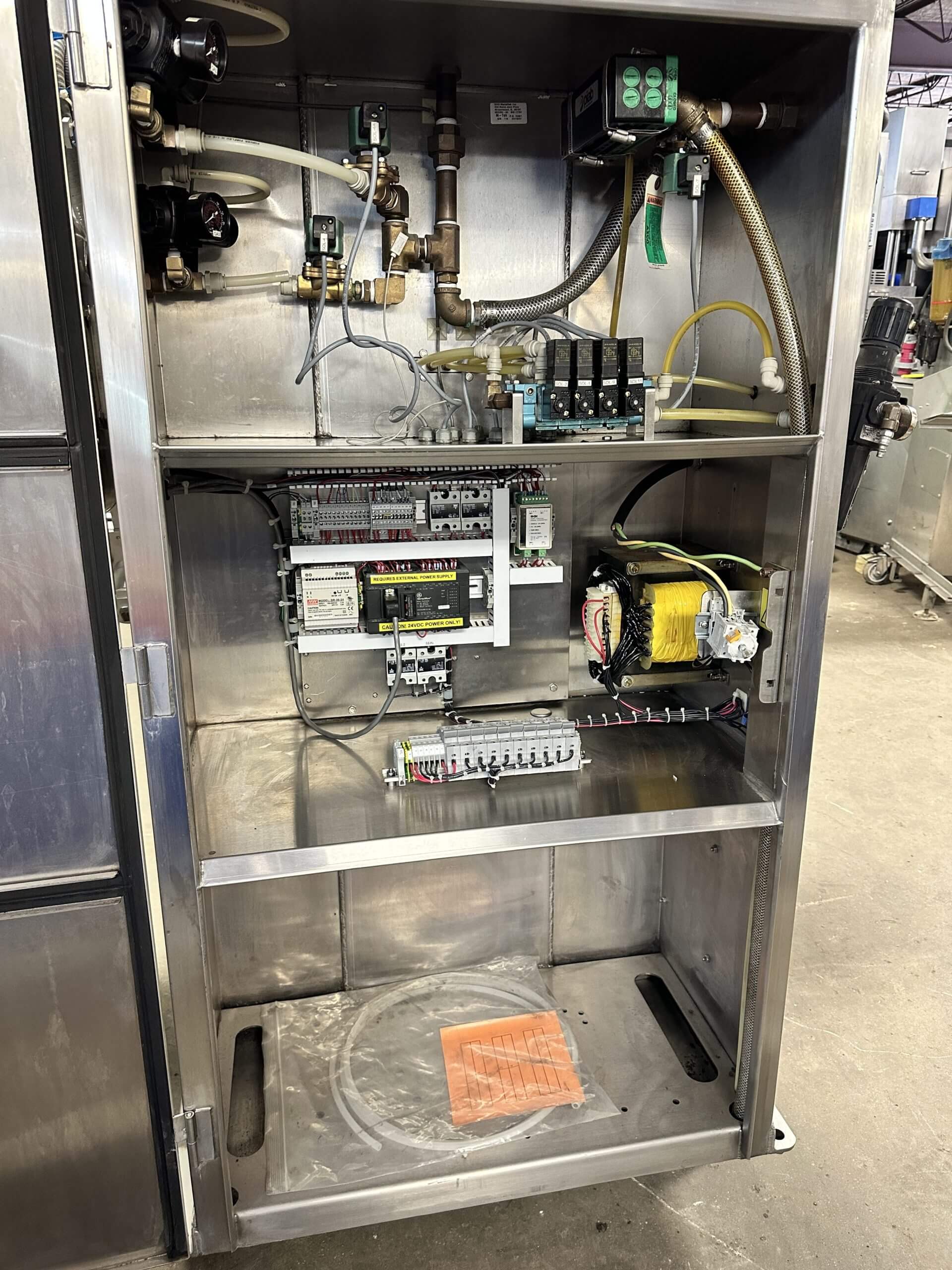 M-Tek Mark III Packaging Machine. 53″ heat seal bar, 18″ center to center nozzles, Twin 9-1/4″ vacuum probes, Vacuum pump, 230V/3PH/60HZ Minimum compressed air 110 psi/7.5 bar, Gas flush canister, Maximum 125 psi/8.5 bar.