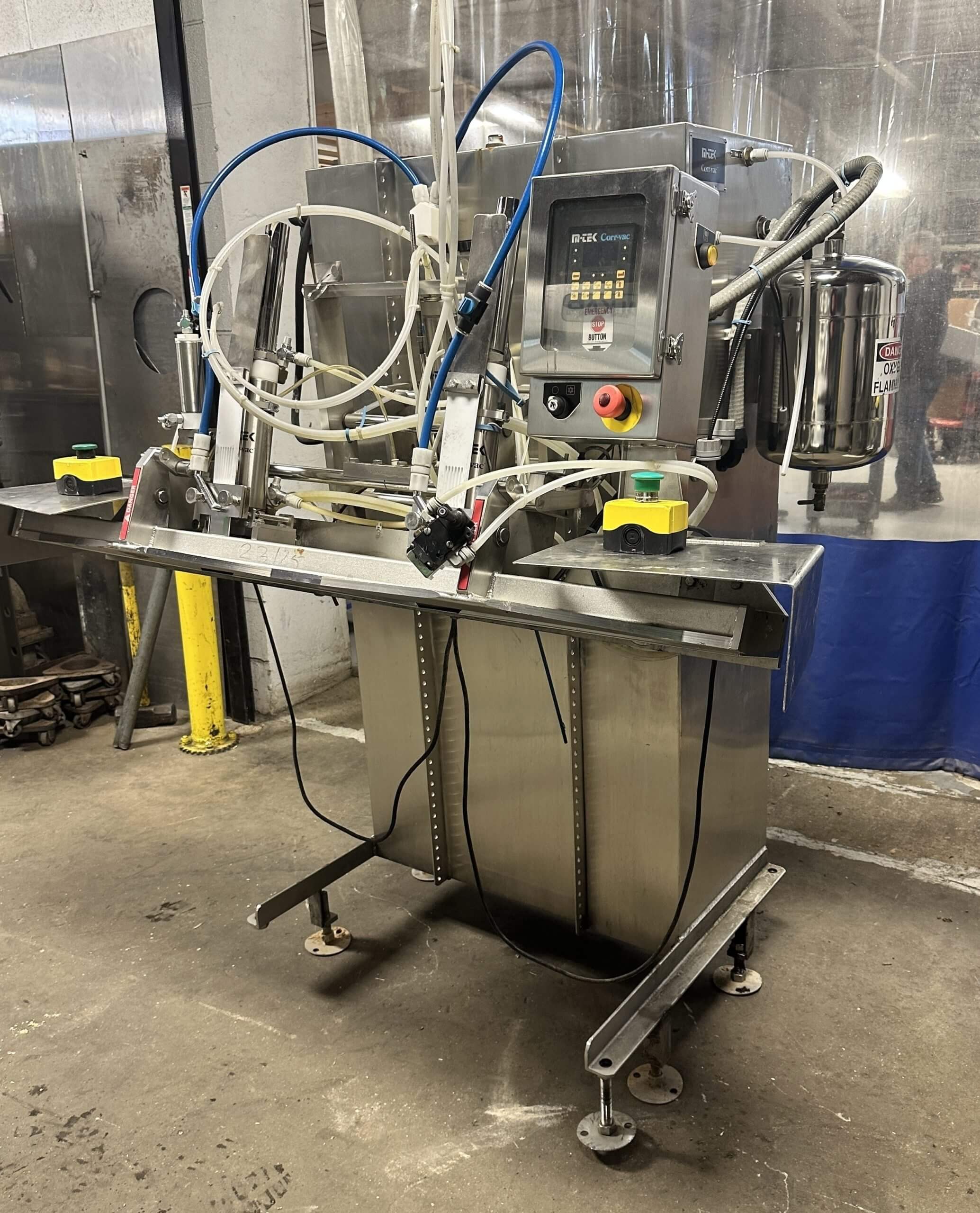 M-Tek Mark III Packaging Machine. 53″ heat seal bar, 18″ center to center nozzles, Twin 9-1/4″ vacuum probes, Vacuum pump, 230V/3PH/60HZ Minimum compressed air 110 psi/7.5 bar, Gas flush canister, Maximum 125 psi/8.5 bar.
