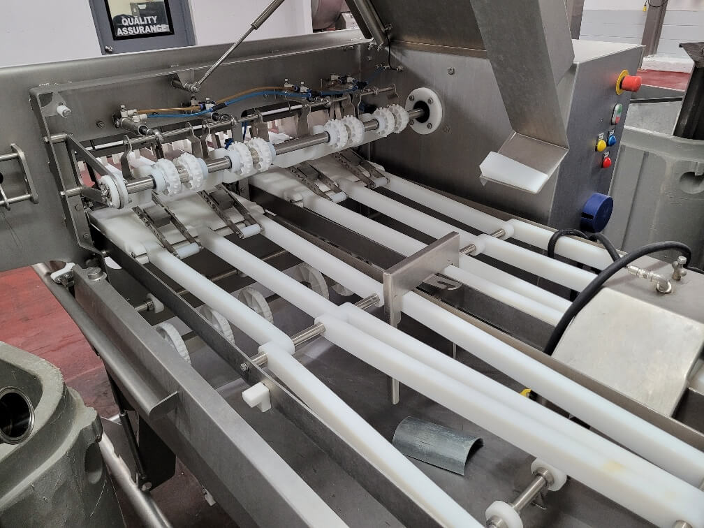 TREIF Zebra CE Slicer. Setup for 1/8″ slice thickness, minimum product temp. 2...
