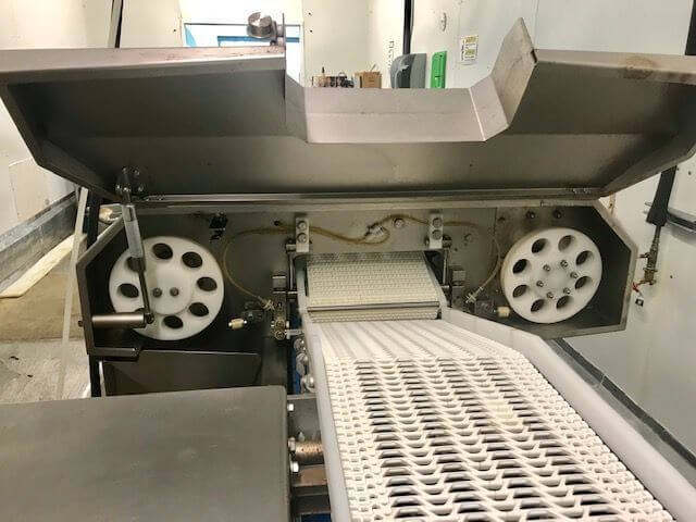 JBT DSI 844 S6 Portioner with a Flow UtraJet 60i -D 100 hp pump, 4 lanes with 4 movi...