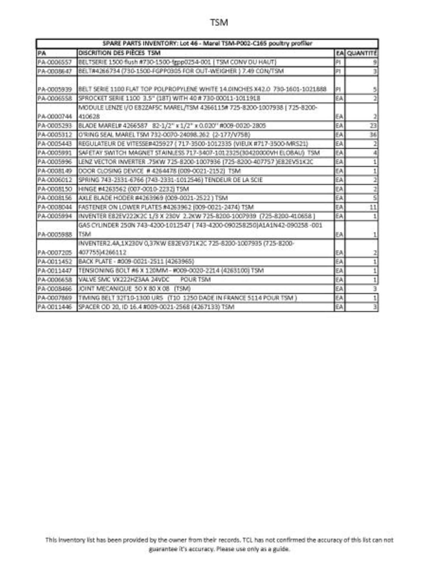 M&M Equipment Corp   >   Equipment List   >   Used   >   Marel TSM-P002-C165 Poultry Profiler