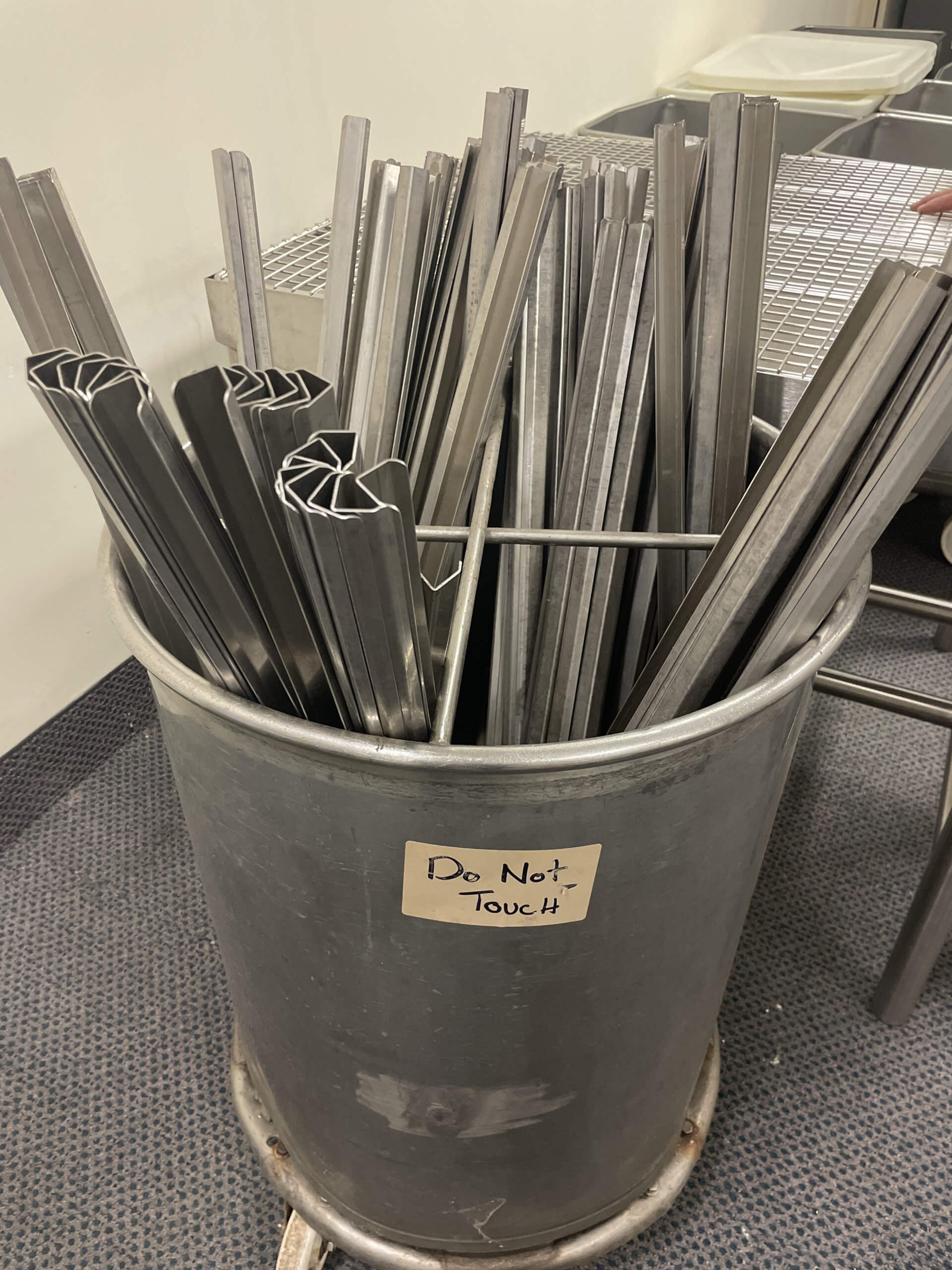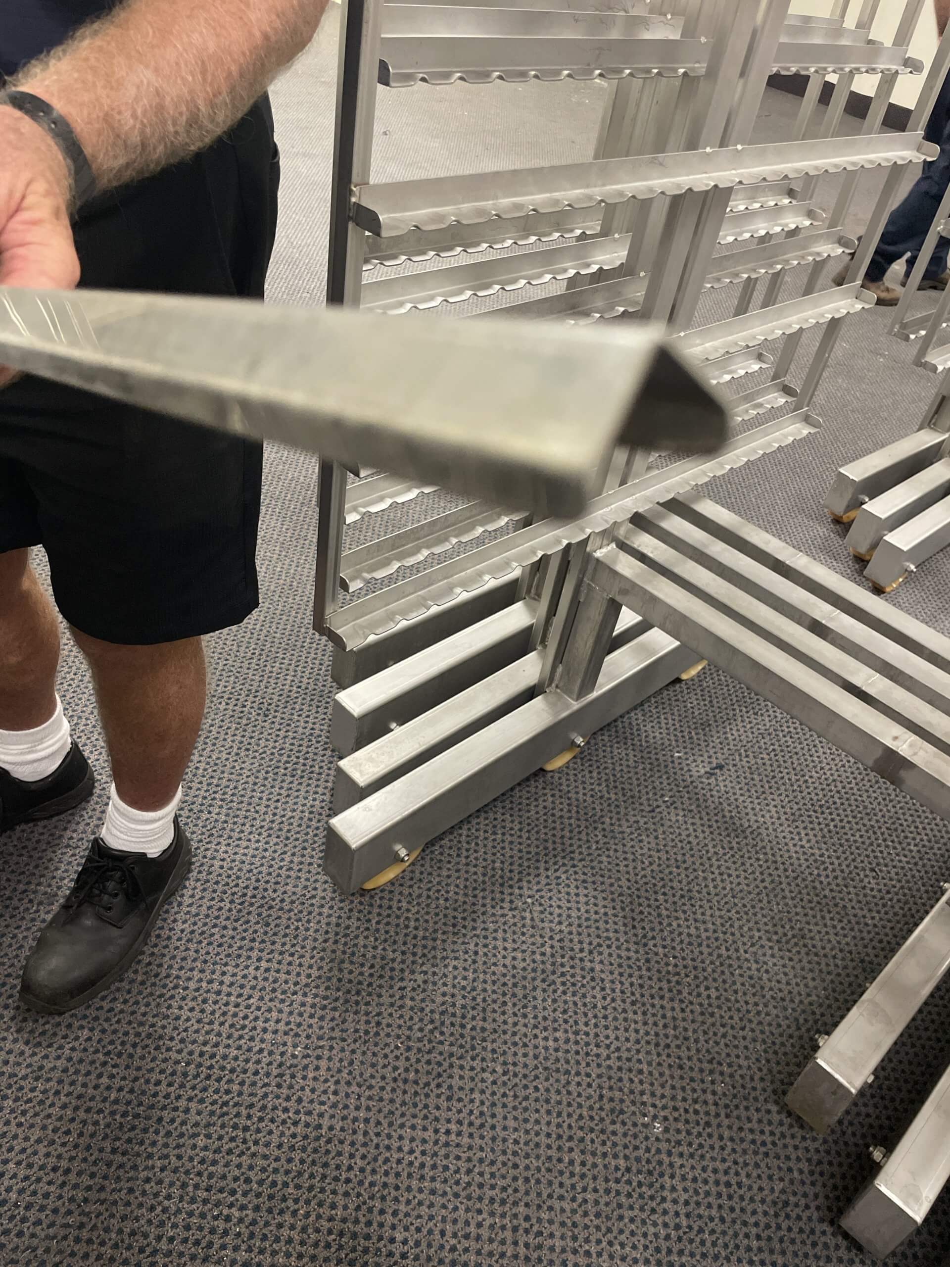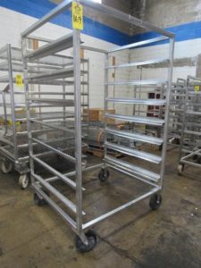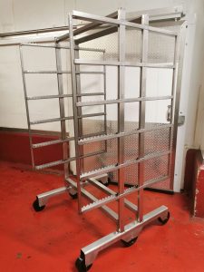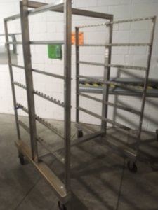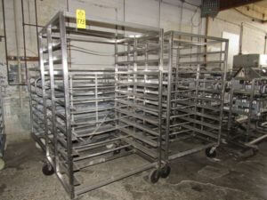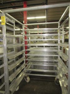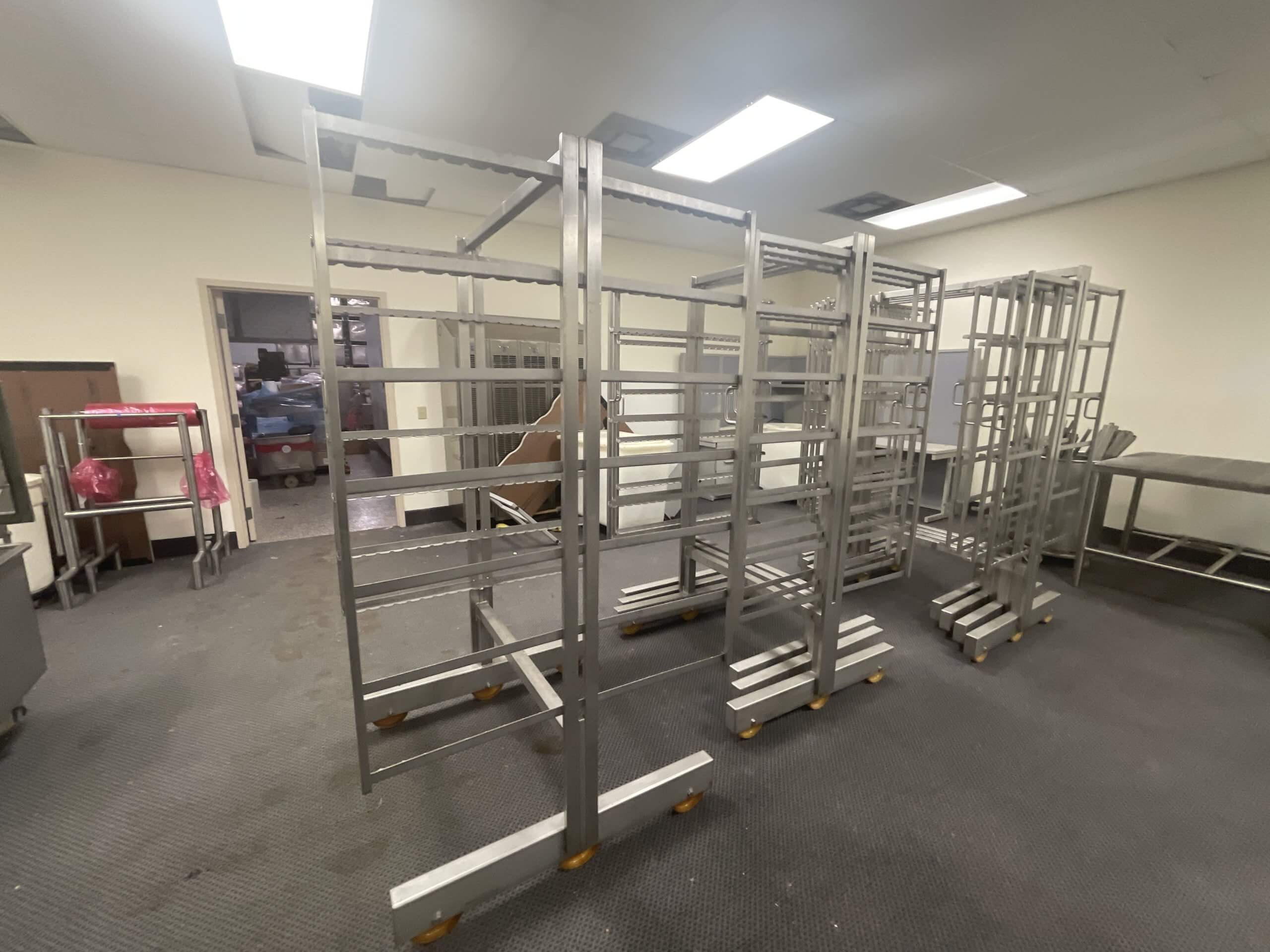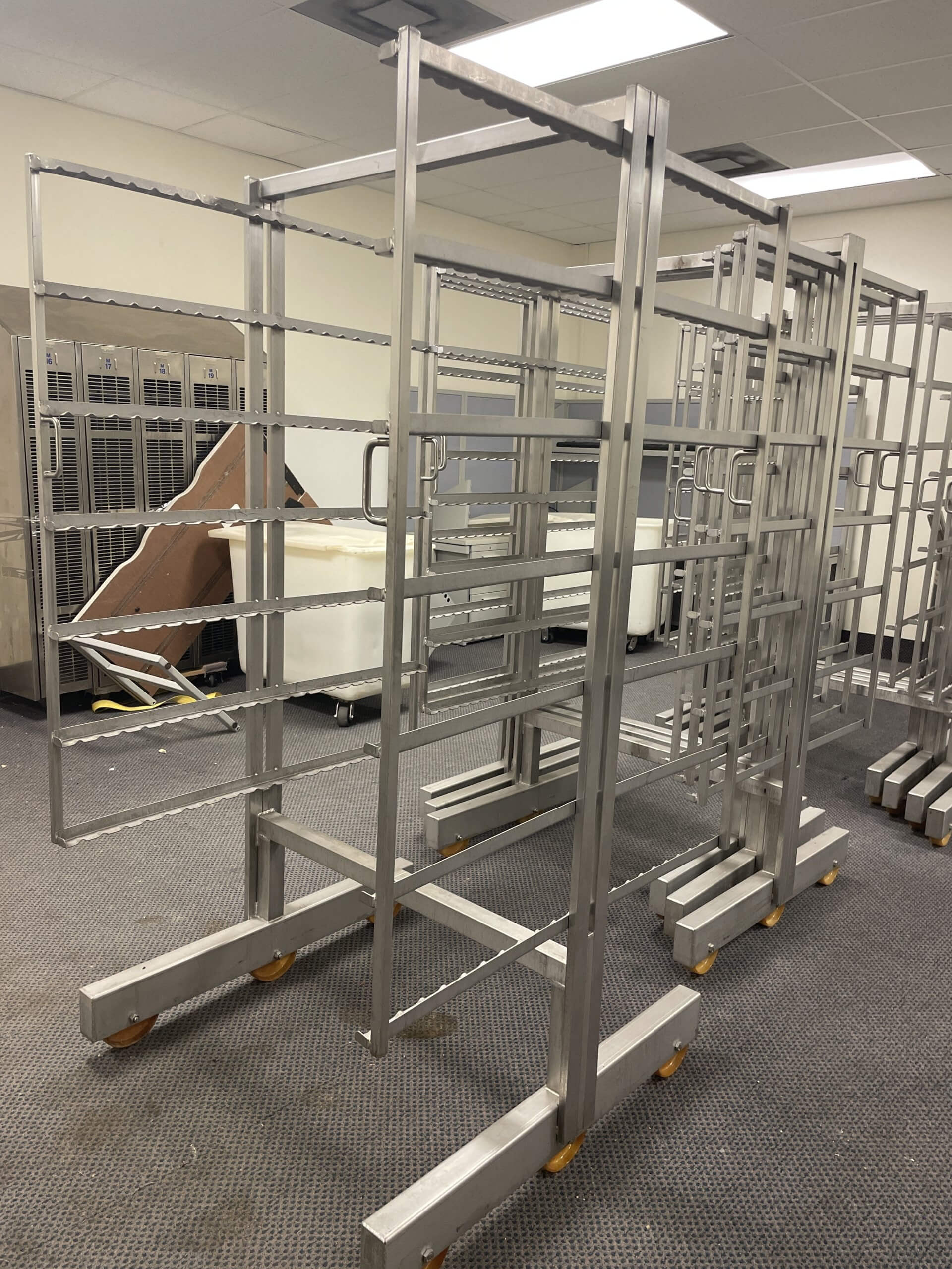 (8) Maurer Smokehouse Truck. Nesting Style with sticks- Euro Style. 39.5” interior width. 42” interior width. 78 height. Comes with approx 400 sticks.