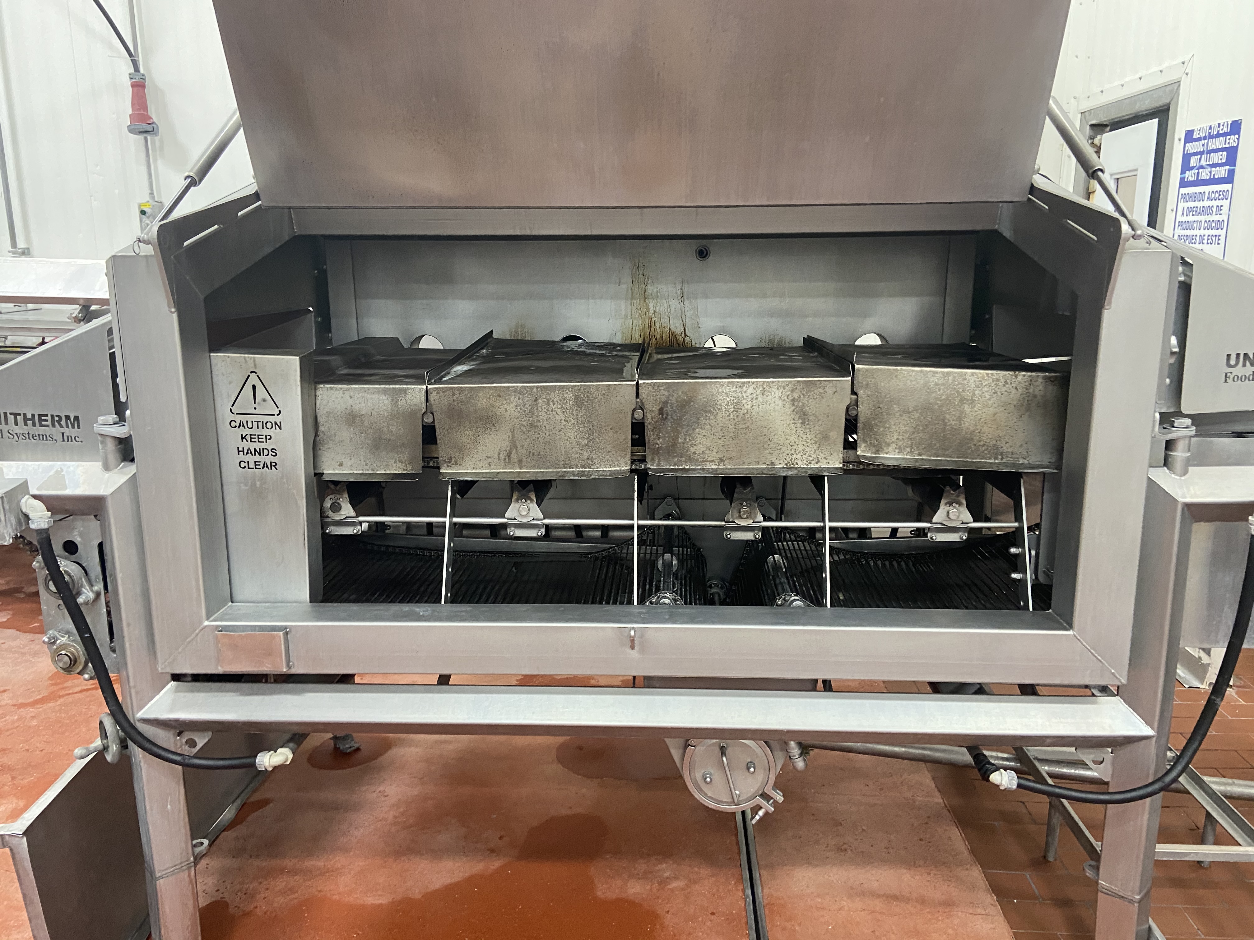 Vemag HP15E and HP10E Vacuum Stuffers with built-in Loaders. Vemag BC235 Portioning System, Vemag 235 Waterwheel Meat Ball System. Unitherm Spiral Ovens: Mini Spiral with a 15.75″ wide conveyor belt width X 380′ long and Unitherm Spiral Oven, 24″ wide conveyor belt. Unitherm, model FG-24-8B Flame Grill, 24″ wide conveyor belt X 8′ long. Safeline Metal Detectors, Pac-Mac Form fill Seal packaging system with Ishida Scale.