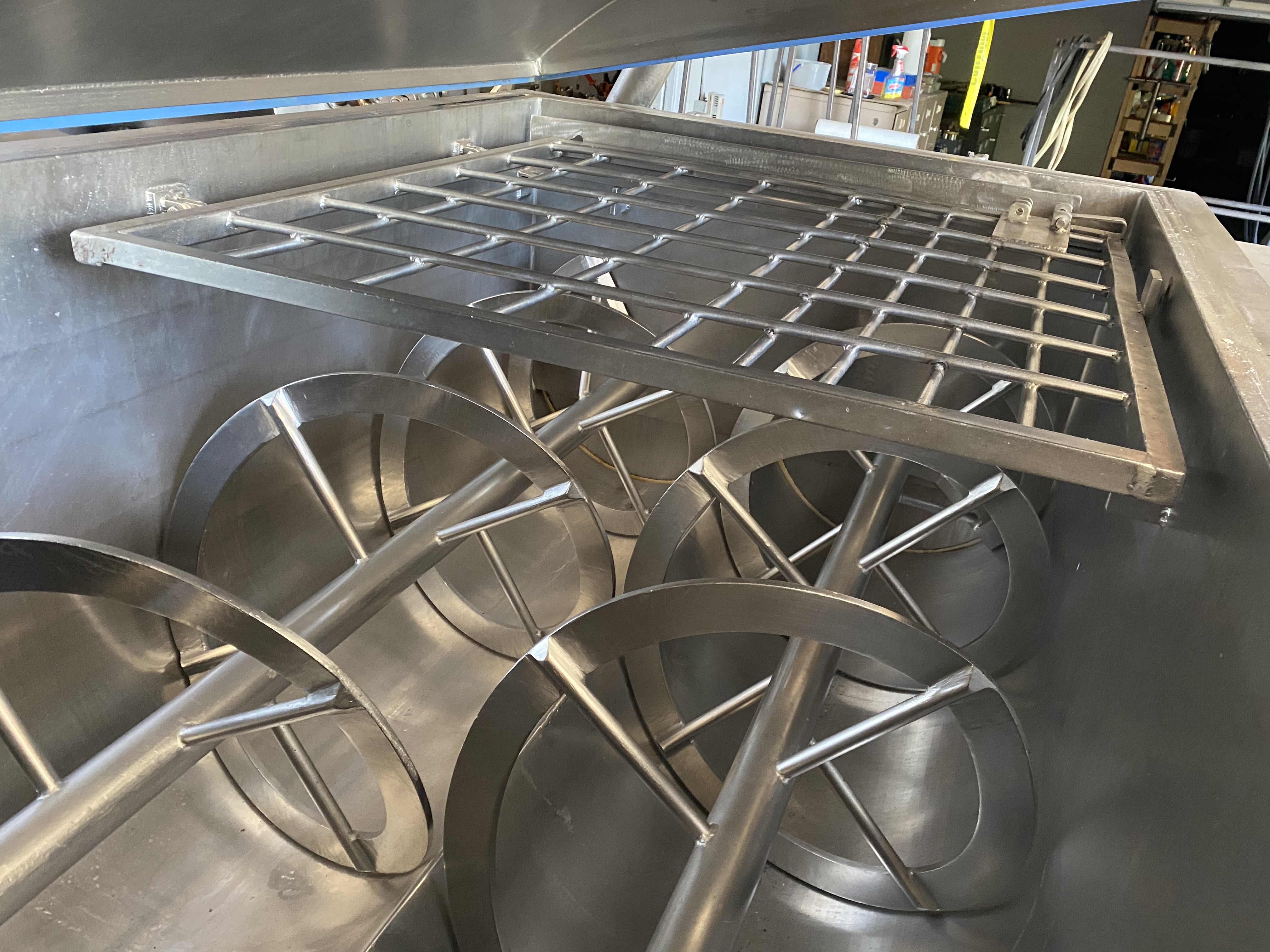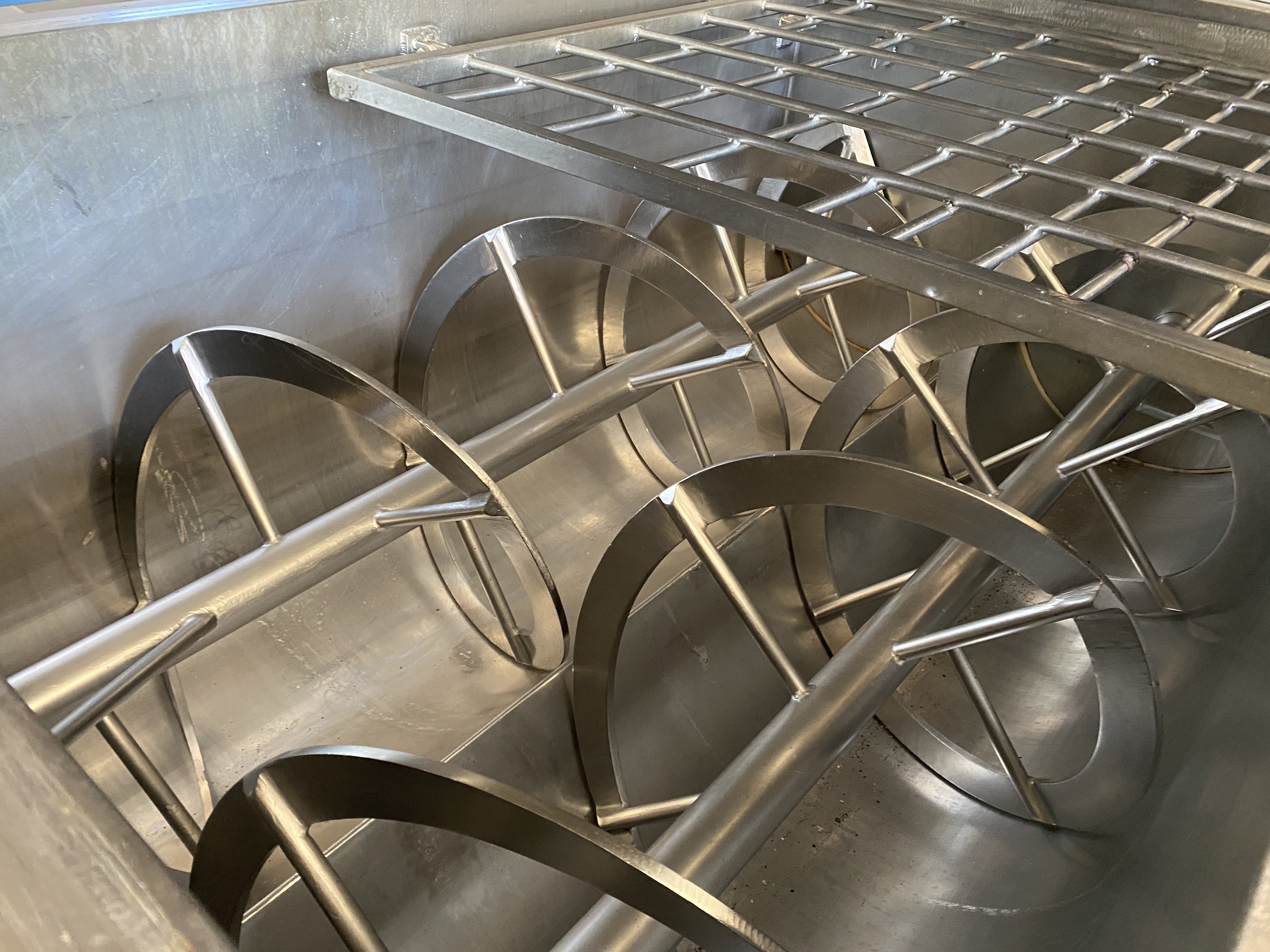 Stainless Steel 10,000lb Ribbon Blender. 128” x 69” x 44” deep. Pneumatic duel...