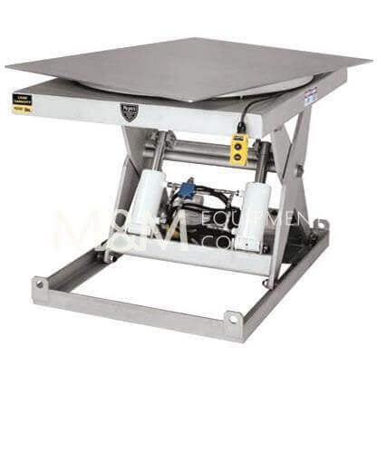 New Mepaco vertical pallet Lift, working Capacity: 2,500 lbs., Platform Size: 48″ x 42″, 37″ Raised Platform Height, Beveled Low-Profile Platform Relief Valve to Prevent Overloading Control Valve for Controlled Descent in Case of Electrical Failure, Self-Contained Power Unit, 115 Volt Single Phase, Hydraulic Drive W/Power Unit, Safety Up-Down Foot Pedal Control.