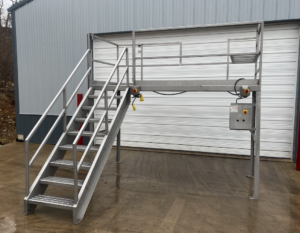 CUSTOM STAINLESS Worker Platform. 9 steps to 36″ x 20′ long worker platf...