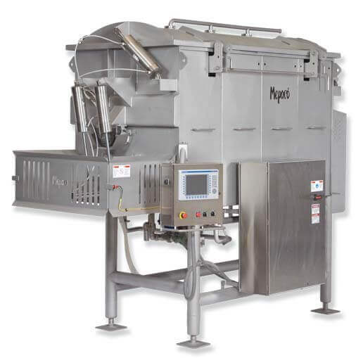 Mepaco Therma Blend 75 Gallon Cooker With Vacuum and CO2 capability. Features Bottom Mounted Indirect and Direct Steam, 120 PSI ASME Coded Jacket. Allen Bradley Touch Screen controls, Internal scrapers and dual end discharge doors, Tub Dimensions: 34″ wide x 38″ long. Pneumatic operated cover. Includes 3HP Liquid Ring Vacuum Pump and 3HP VFD Nord Gear motor. 480V/3Ph/60Hz. Remains in like new condition while , used for test purposes.