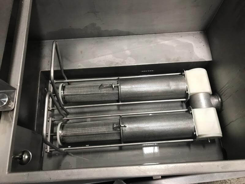 METALQUIMIA MOVISTICK 120/3000 Pickle Injector. Single Head Boneless With FR30 Filter and an NMT-3000 Brine Mixer Standard. Metalquimia Movistick 120/3000 Injector, 17″ wide walking beam conveyor adjustable from 20 to 120mm, 20 to 50 strokes/min., 7.87″ product clearance, production: 2,800 to 6,900 Kg/h, completely hydraulic driven including brine pump, 17 hp motor, 220V/3PH/60HZ, complete with FR 30 Rotary Brine Filter and NMT-3000 Brine Mixer