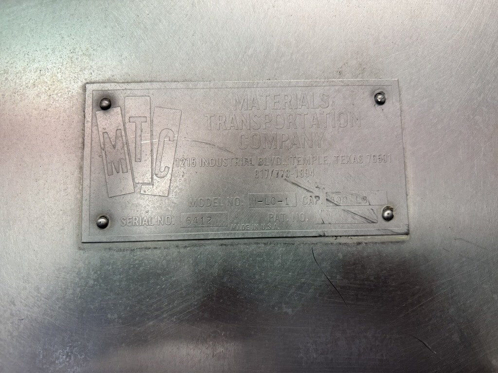 MTC HLC-2 Tote Dumper. 800 Pound lift capacity, Left hand dump. Stainless steel cons...