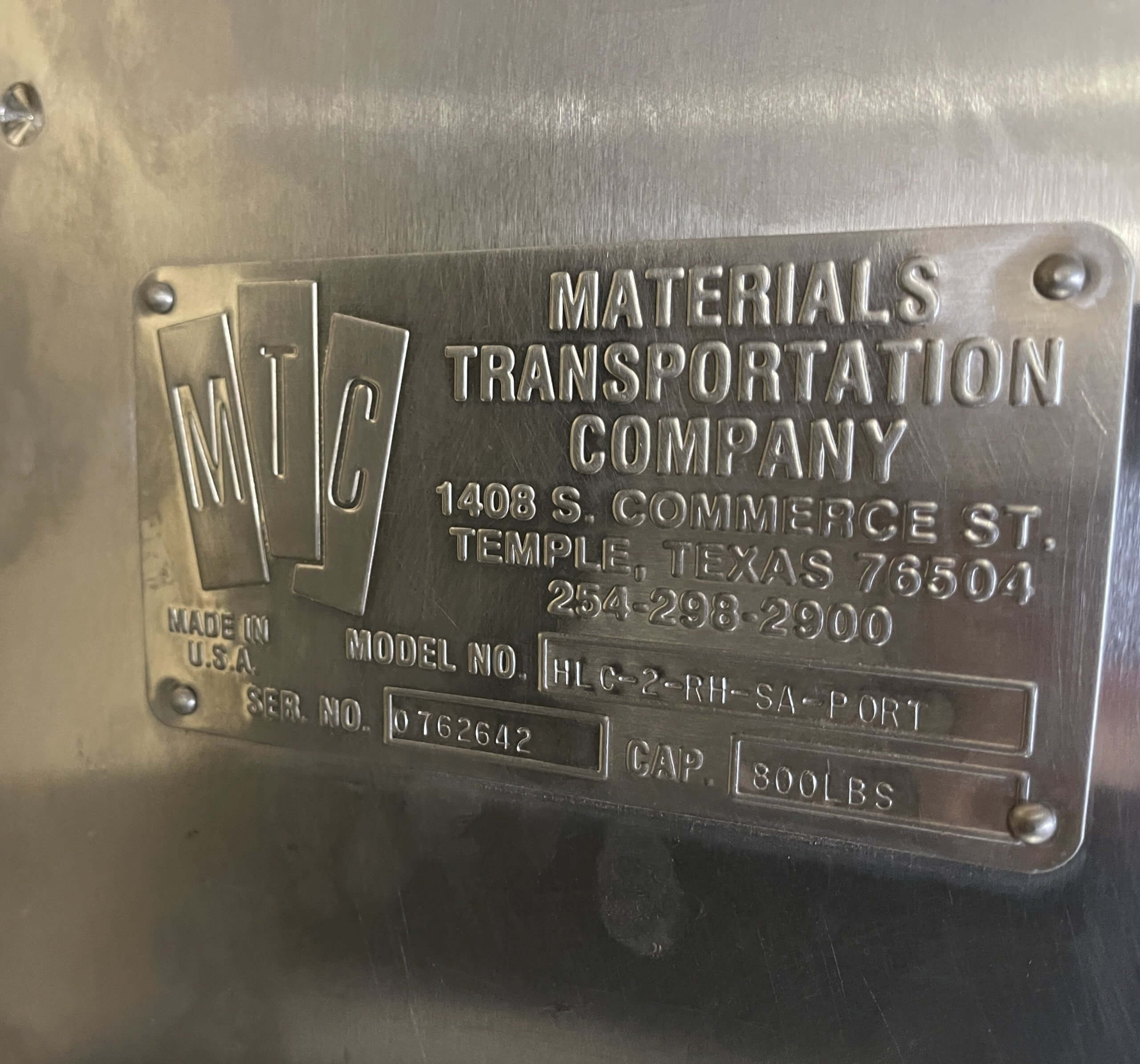 MTC HLC-2-RH-SA-Port Tote Dumper. 800 Pound lift capacity, Right-hand dump. Stainles...
