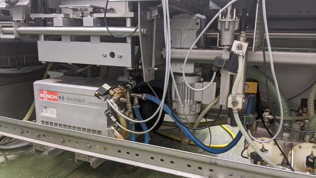 Multivac R085 Compact Thermoformer. 422mm web width x 300mm advance. No additional compressors or water hookups are required for this machine to operate. Includes a 3 x 2 and 1 x 2 forming inserts. 2x cross cut knives & circular trim knives. Busch R5A 0100 Vacuum Pump. Multivac BK 20 water chiller. Trim rewind system. 220V/3PH/60Hz, 63 Amps.