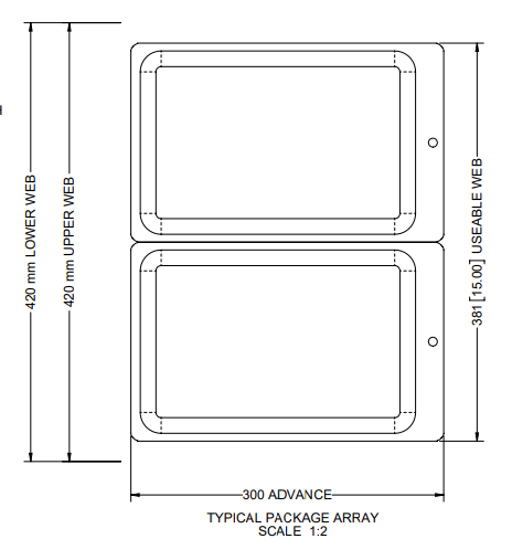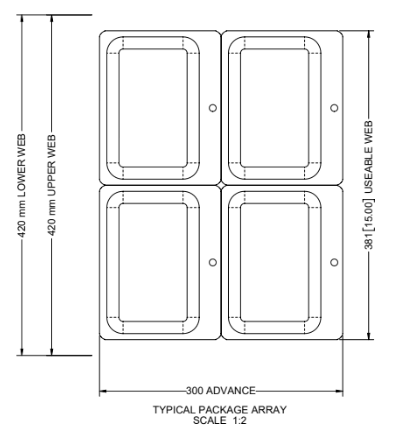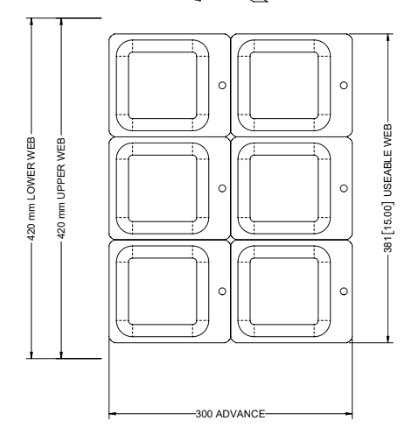 MULTIVAC R535 Vacuum Packaging Roll Stock. 422mm web width X 1020mm advance. Tooling...