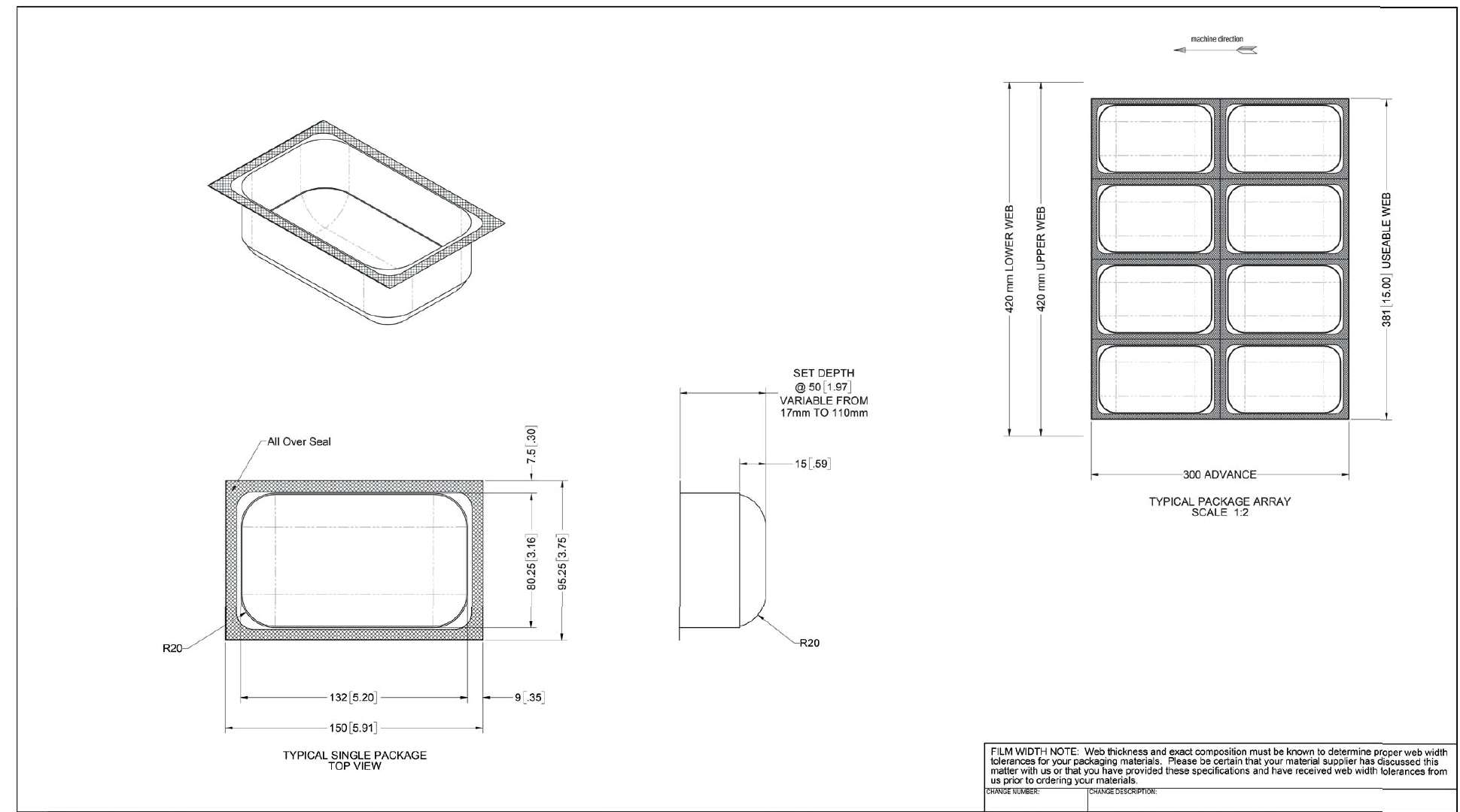 MULTIVAC R535 Vacuum Packaging Roll Stock. 422mm web width X 1020mm advance. Tooling...