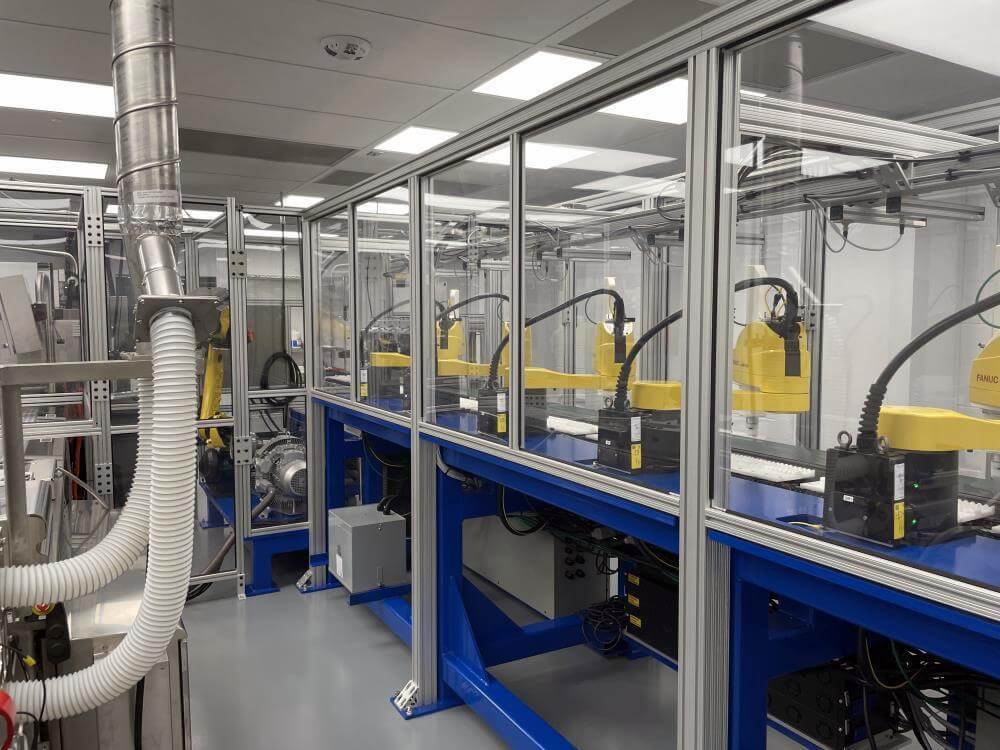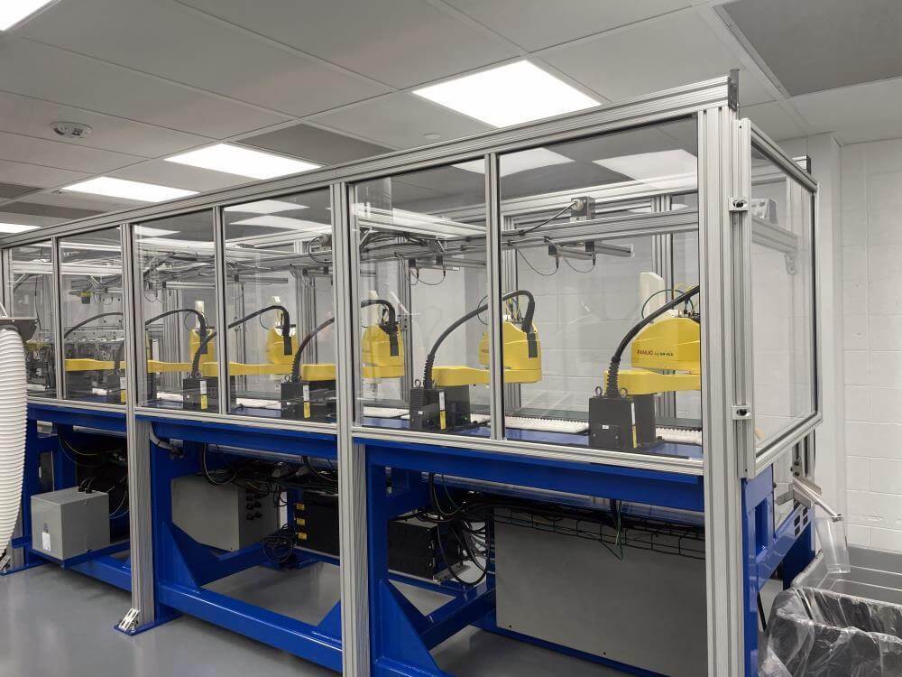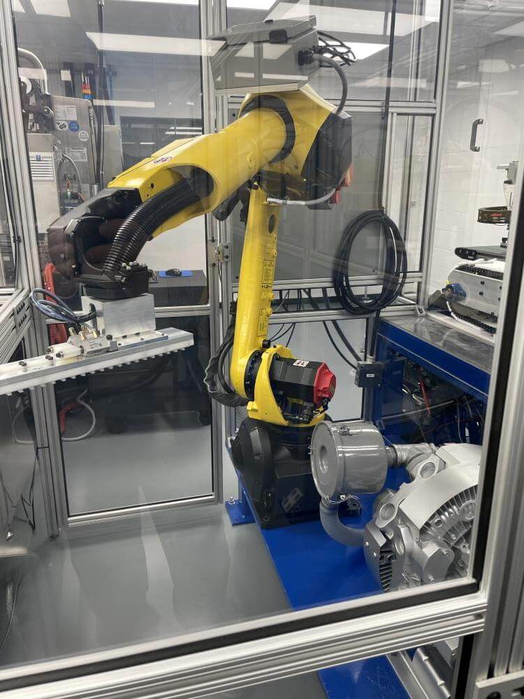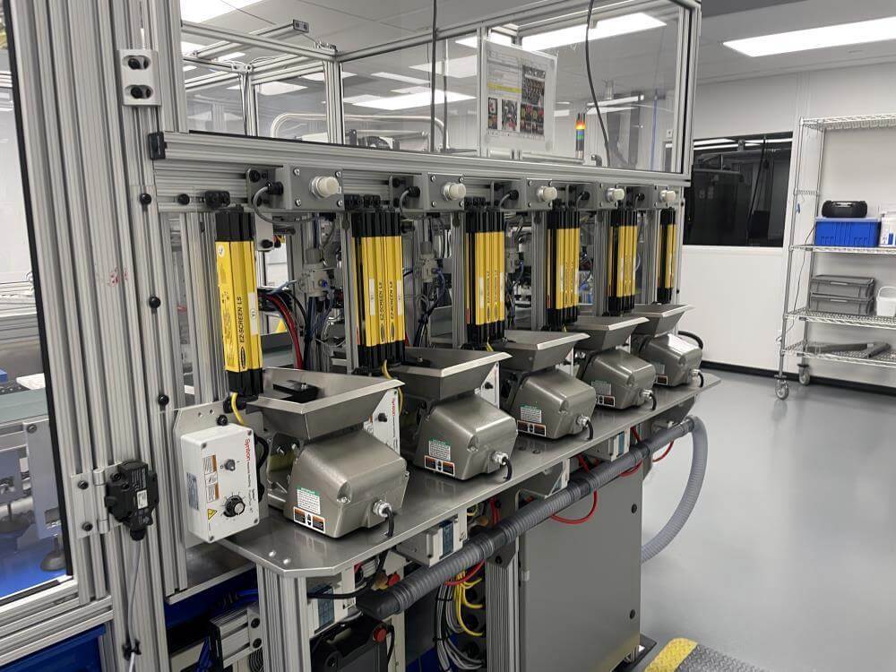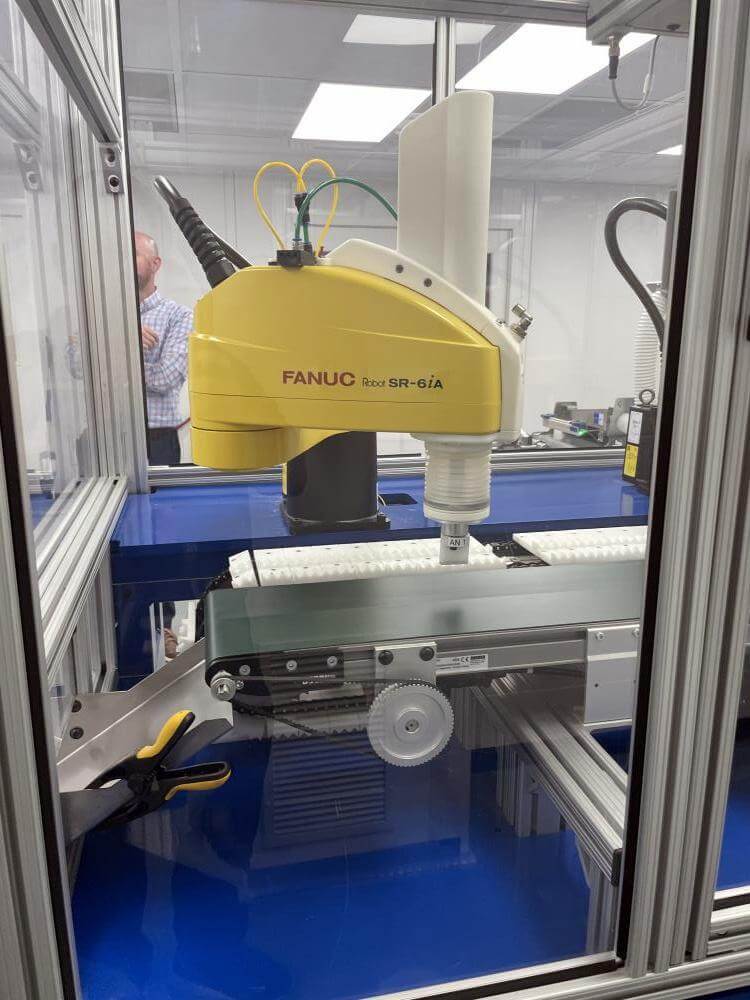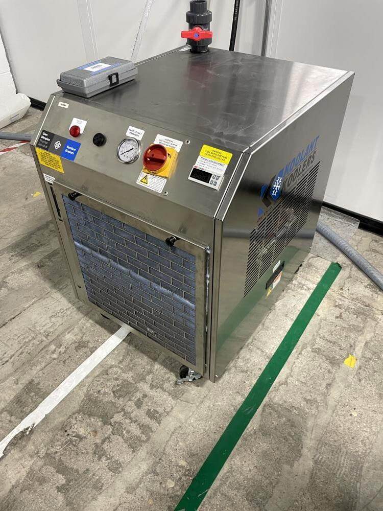 Thermoformer Multivac R245 Horizontal Thermoform Packaging Machine With Fanuc robotic feeders, a Multivac Model R245 horizontal thermoformer is in like-new condition. Swabs for diagnostic test kits were the original intended use. has an IDI automation loading system that can load Multivac pockets with swabs. Fanuc Scara Robots are among them. Tyvek or flexible Top Web Films (Tb Web): 405mm width with a +/- 1mm tolerance Three mils thick. Bottom Web (flexible), PA/PE type, 422mm wide, +2mm tolerance, 5.9mil thick. has a sanitary stainless steel design. Has a powered film unwind with splice tables (top and bottom web), a servo-driven chain advance with a holding brake, and a lifting mechanism. A chiller, printer, and vision system are all included in the print registration, central lubrication system. Intelijet HD Servo WAS Piezo printing system by Bell-Mark, 420mm. removing trim.currently tooled for a two cavity, 13 track die. 380mm for the cutoff and 19mm for the edge trim. JHI-1500-CM Recirculating Water Chiller by Dimplex. The machine is still installed and is currently running. Removal costs are at the buyers expense.